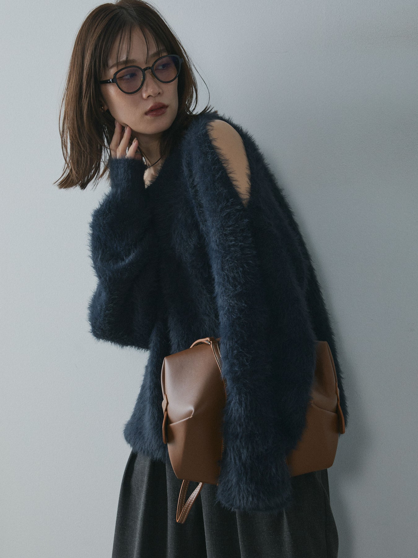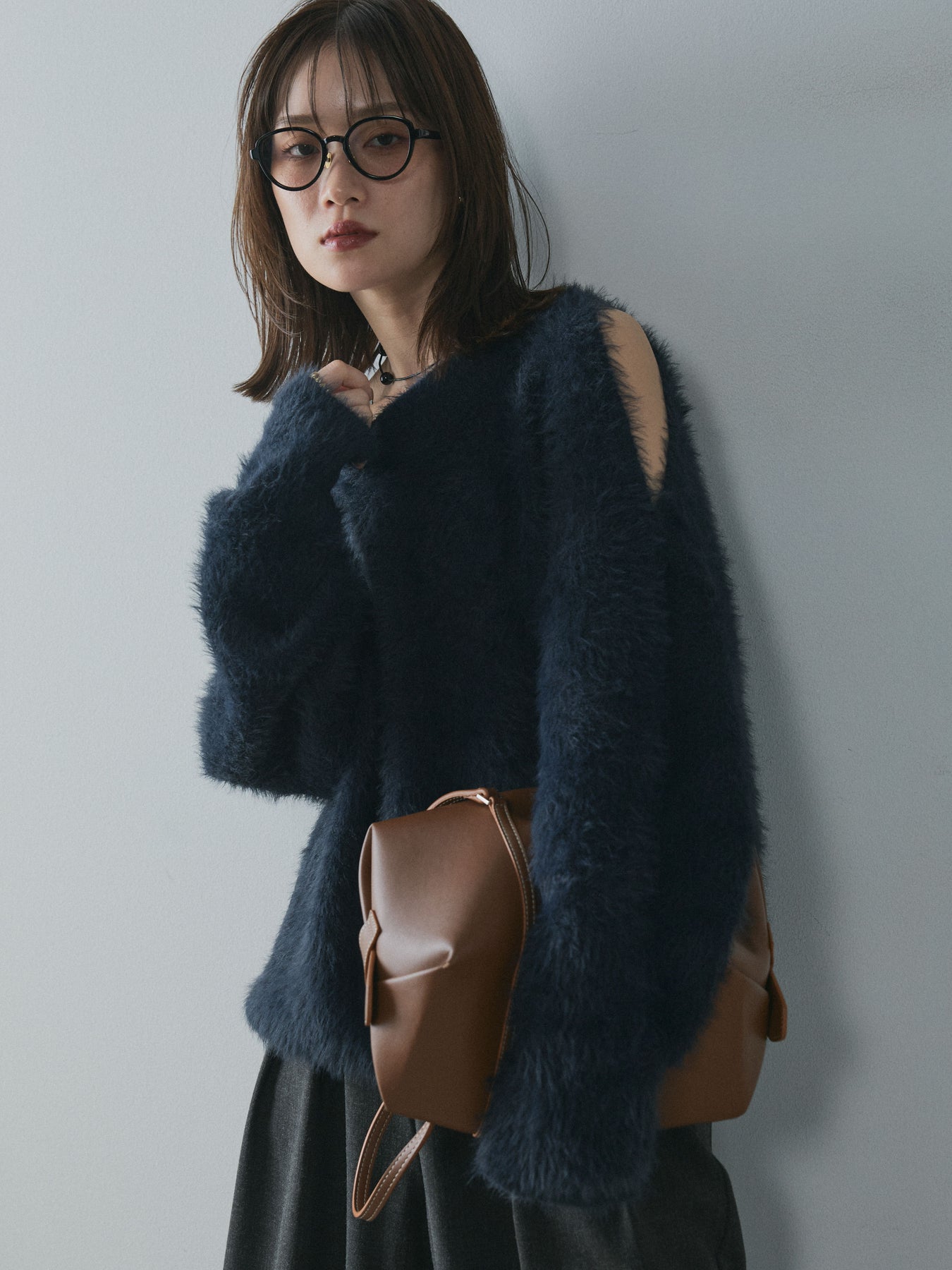 [予約]ショルダースリットシャギーニットプルオーバー/navy