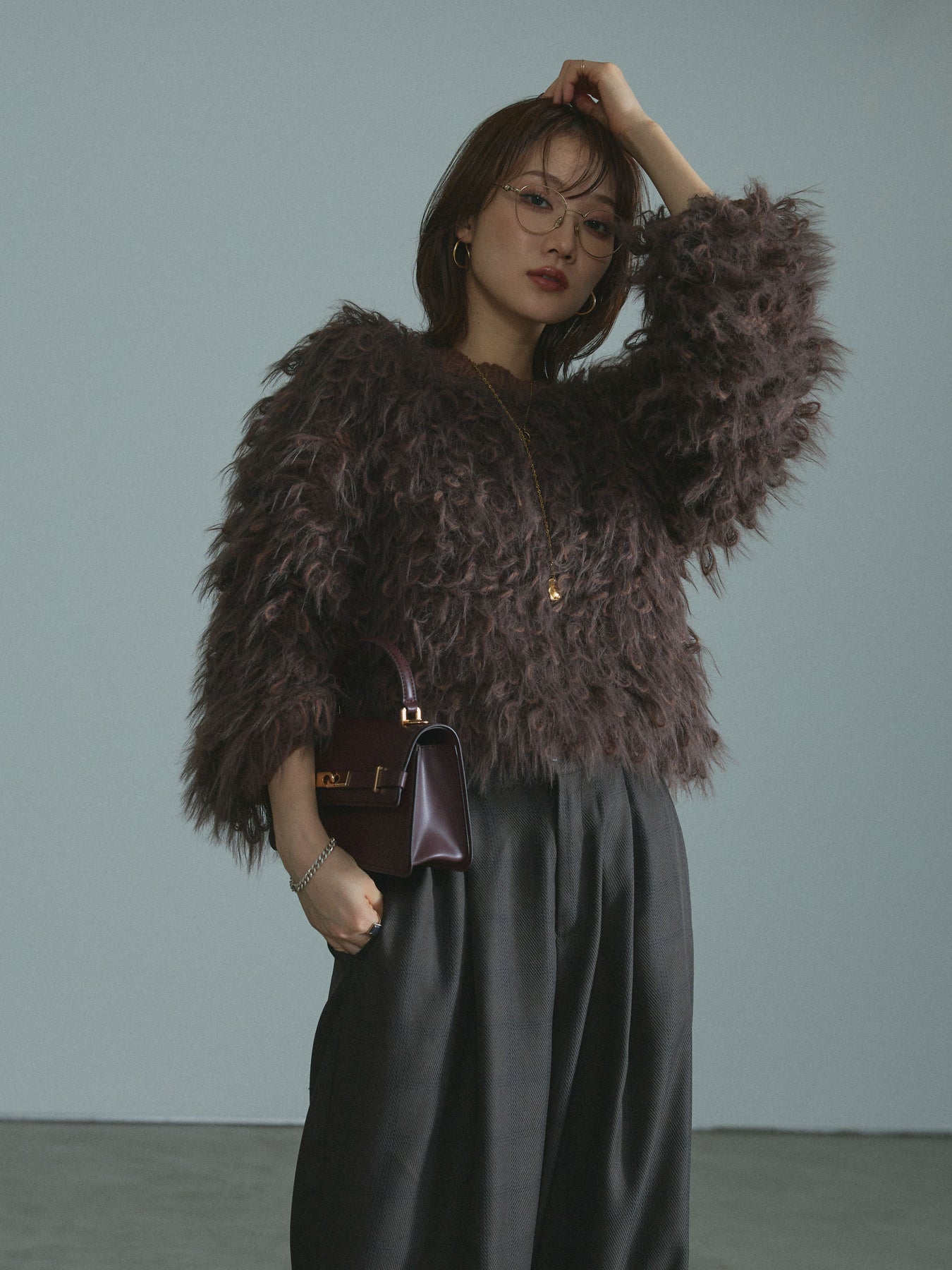 [予約]ミックスシャギーループニットプルオーバー/brown