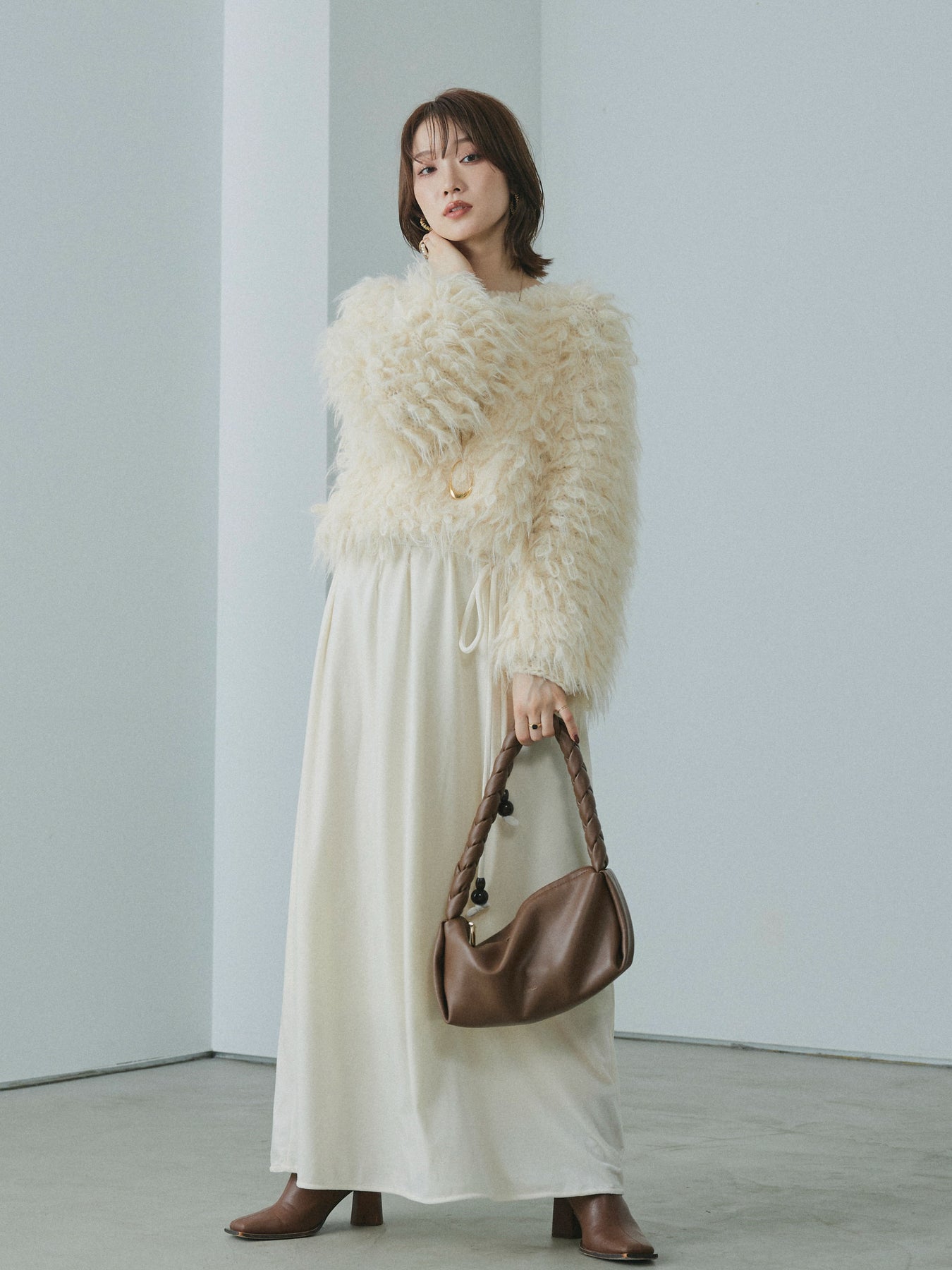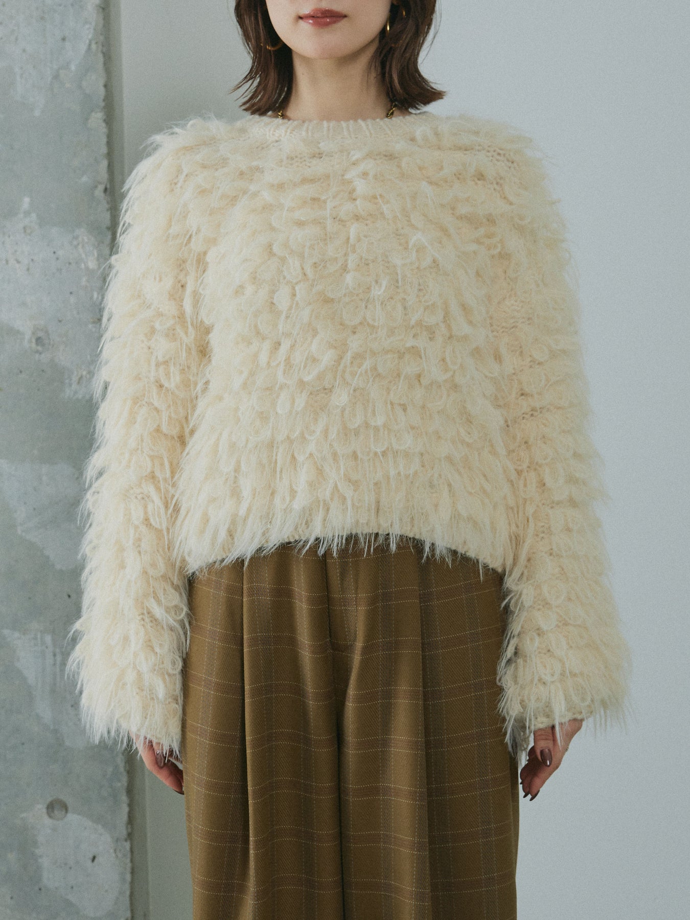 [予約]ミックスシャギーループニットプルオーバー/ivory