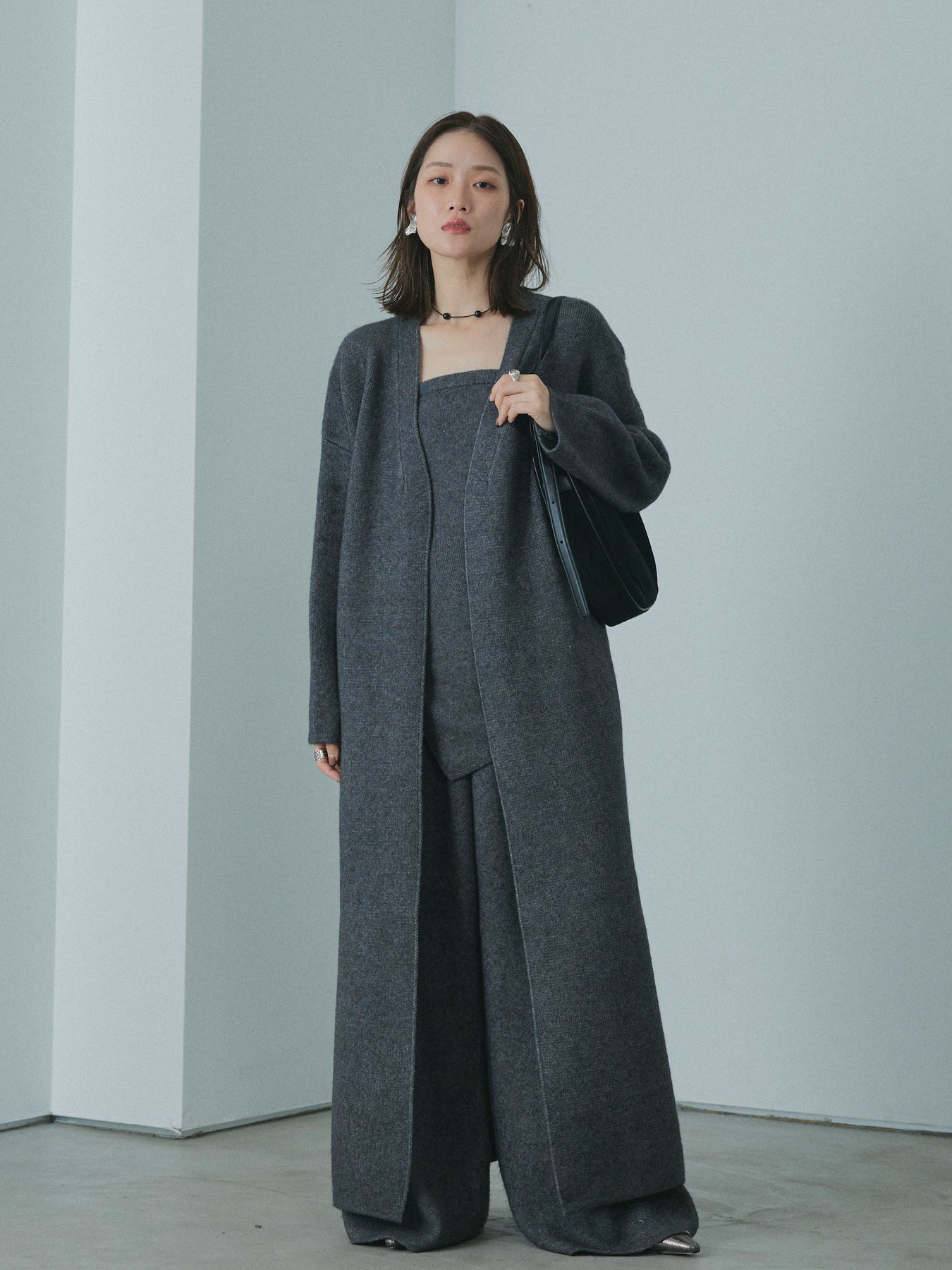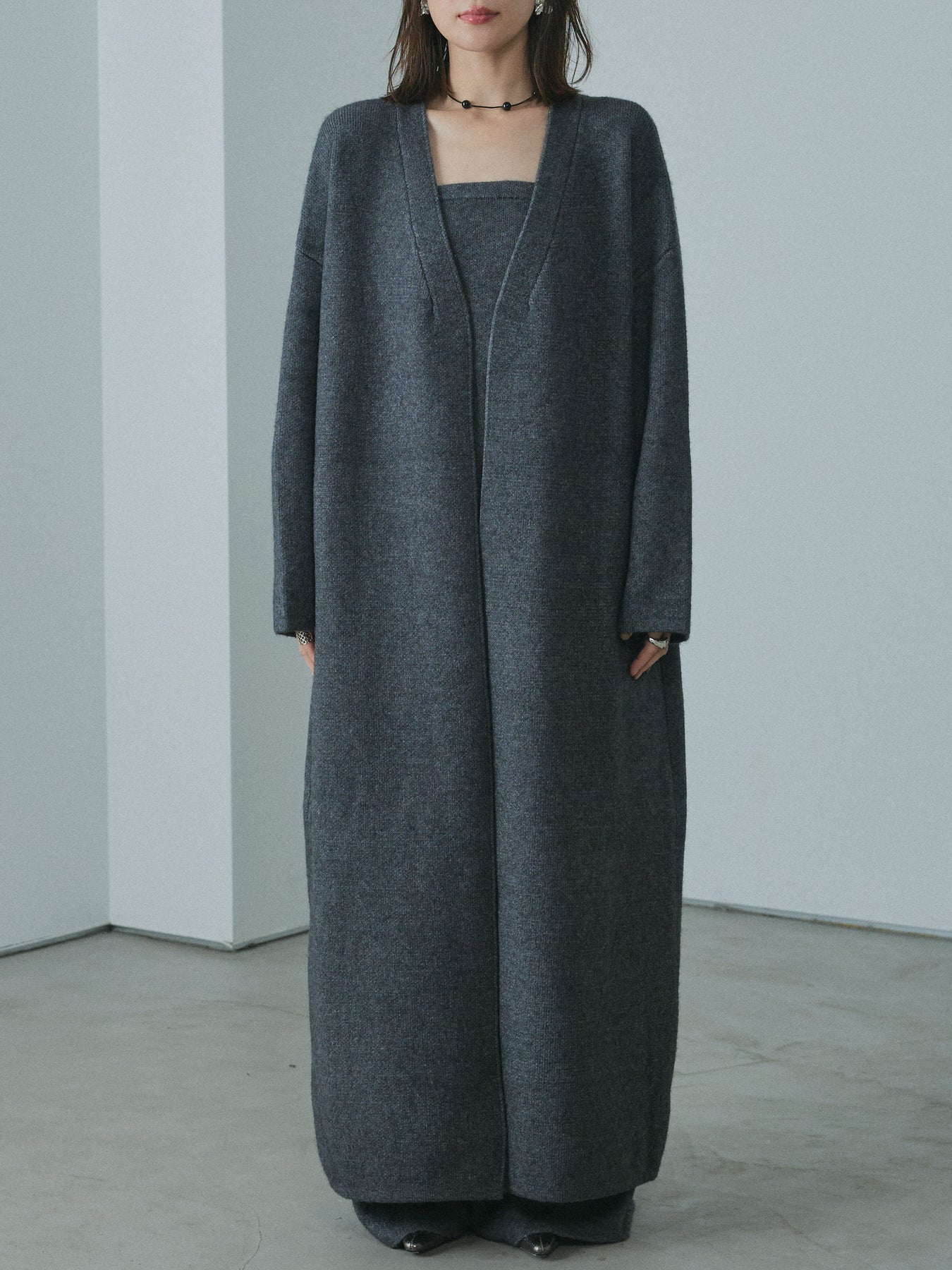 ふんわりと包み込むような着心地が魅力のニットロングガウン。 落ち感のあるシルエットが体のラインを美しく見せ、羽織るだけでこなれた雰囲気を演出します。 やや厚みのある編地で暖かく、軽やかな着心地も嬉しいポイント。 サイドスリットを入れることで動きやすさをプラスし、長時間の着用でも快適に過ごせます。 シンプルながらも存在感のあるデザインで、デイリーにもオフィスにもマッチする万能アイテムです。