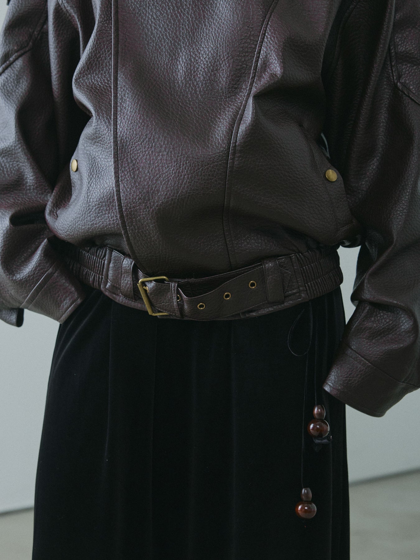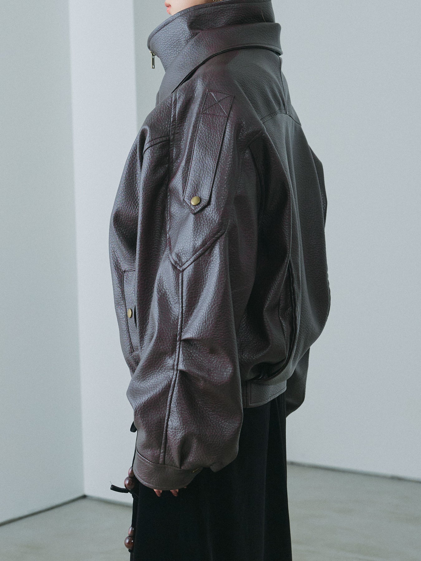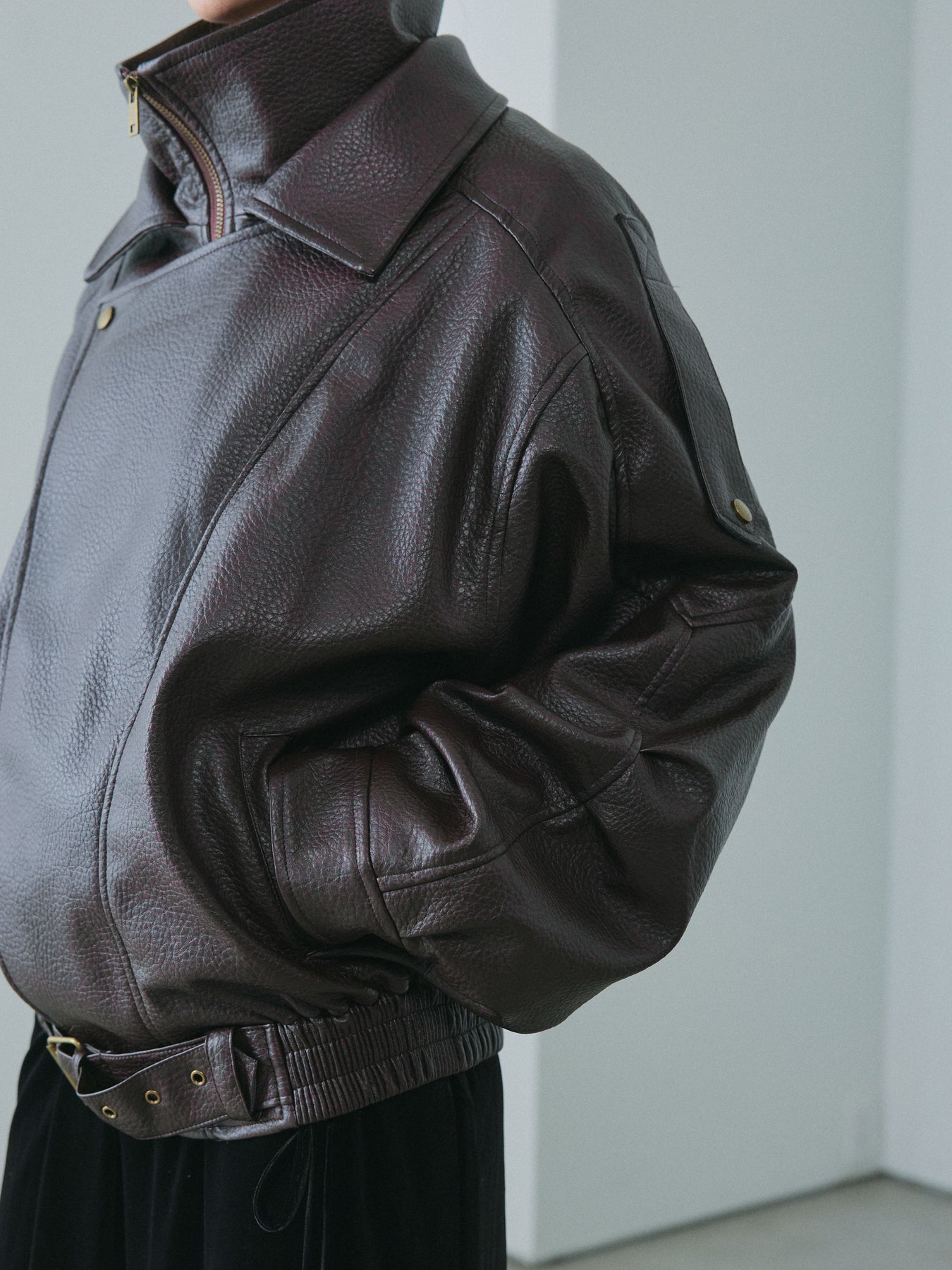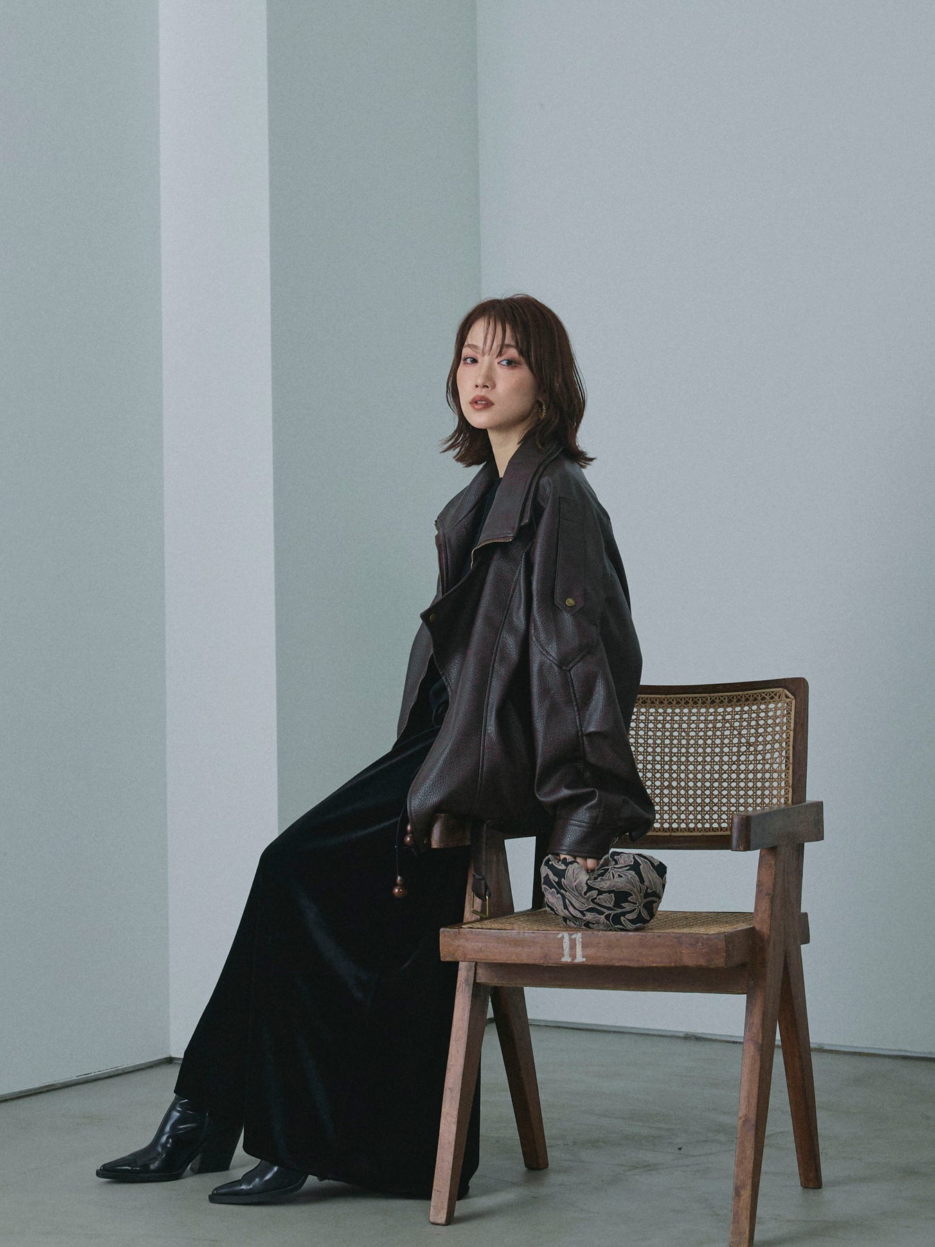 程よい艶感と重厚感のあるフェイクレザーを使用したスタンドカラーブルゾン。 ややオーバーサイズなシルエットで、羽織るだけでモードな雰囲気を演出します。 柔らかく馴染むフェイクレザー素材が、メンズライクな印象の中にも女性らしさを引き立てる一着。 首元までしっかり閉められるスタンドカラー仕様で、防寒性とデザイン性を両立。 裾や袖口のベルトディテールがアクセントとなり、シンプルなスタイリングに深みを加えます。 デイリーから特別な日のコーディネートまで幅広く活躍するアイテムです。 ※ボトムス、キャミソール(インナー)以外の商品は一律でインナーは付属していません。