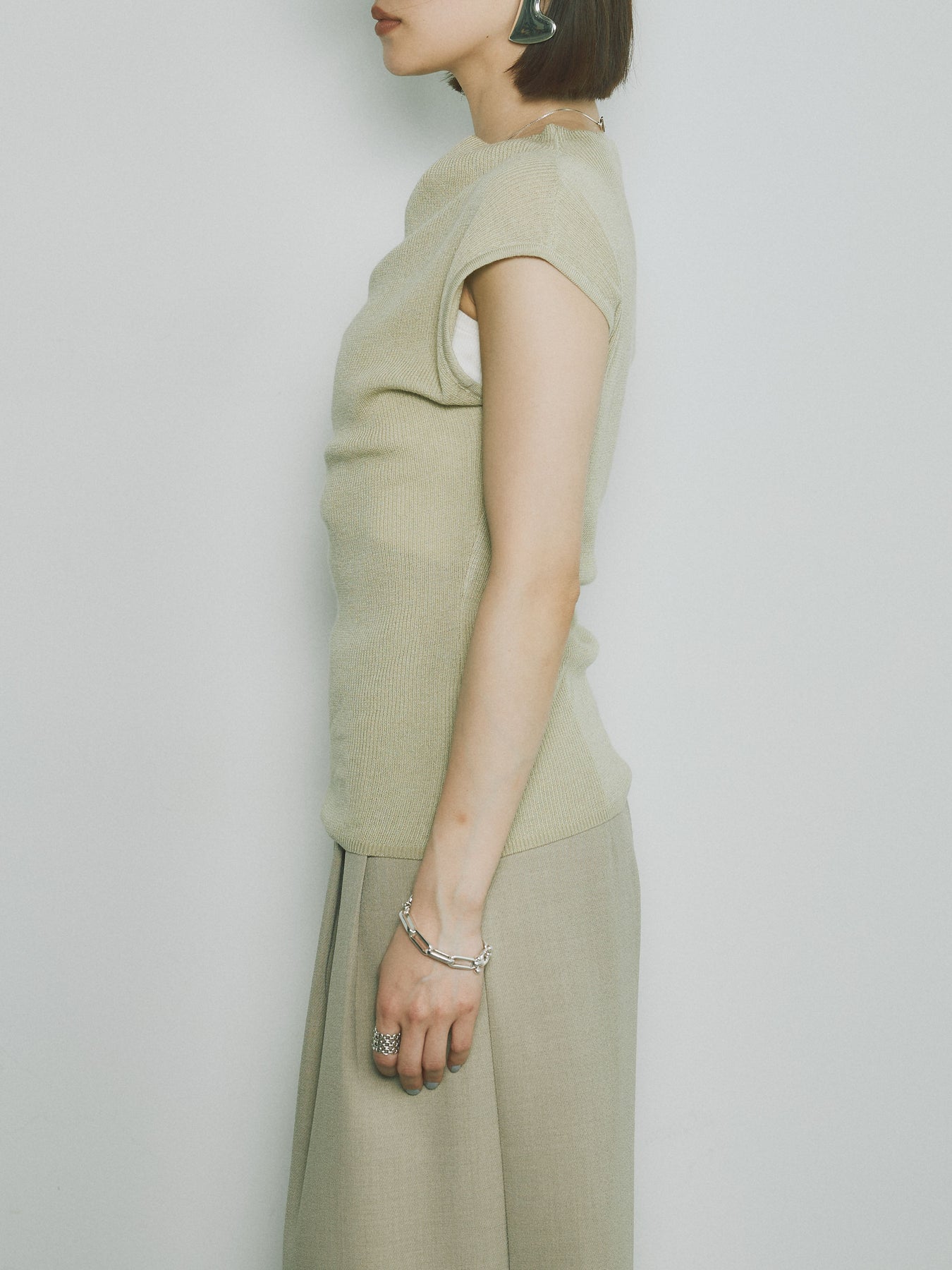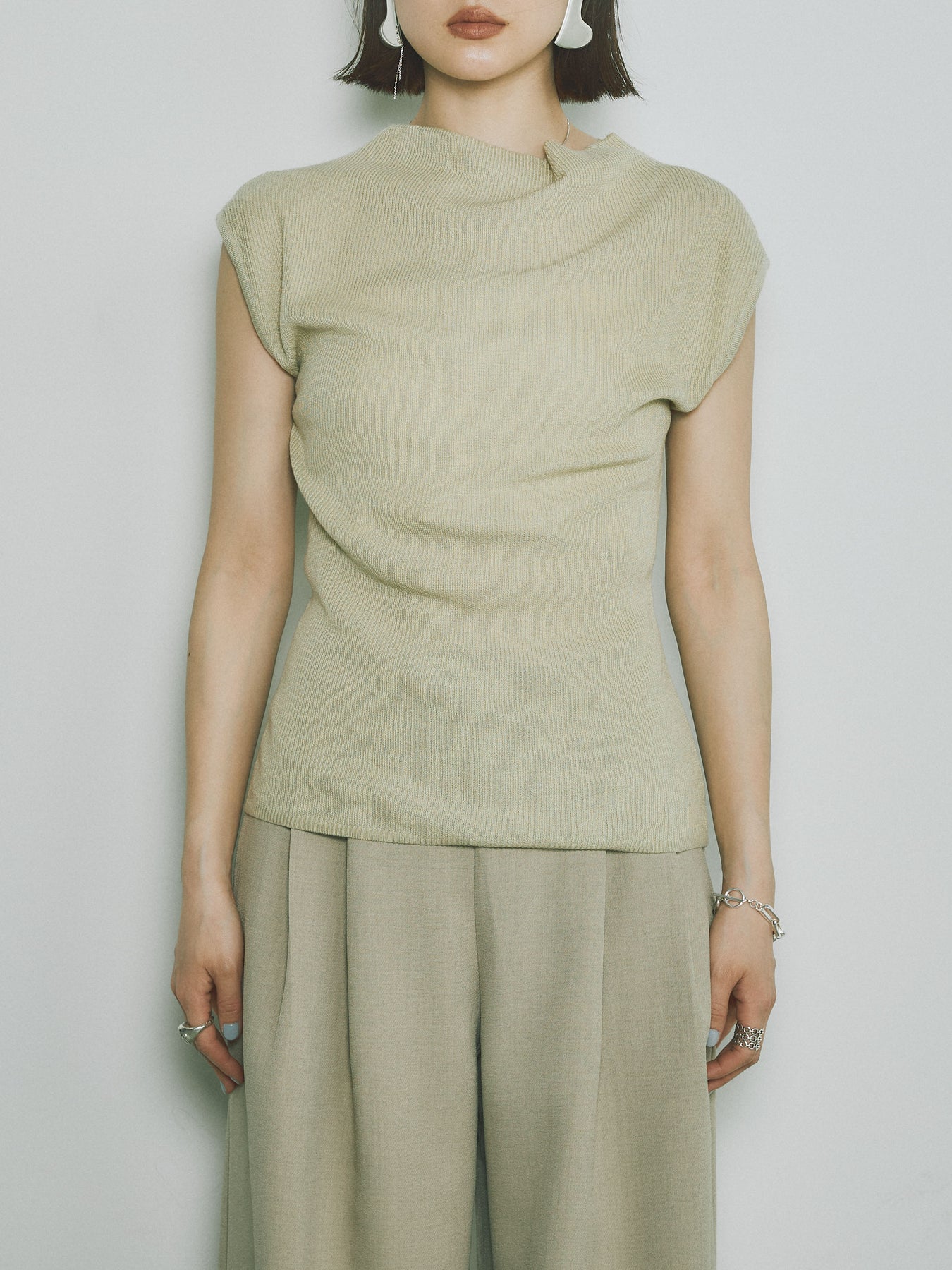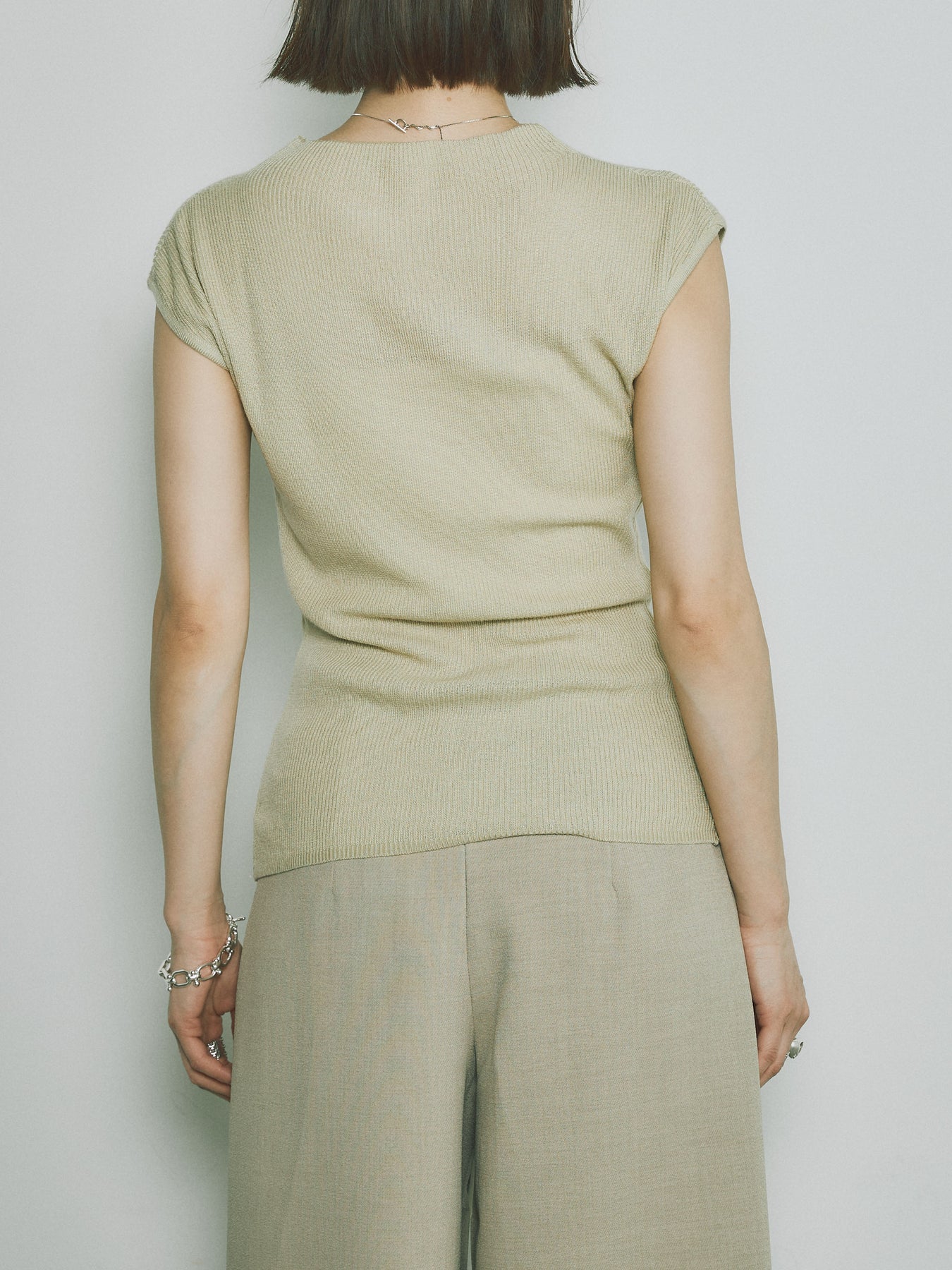[予約]プチネックノースリーブリブニットトップス/ピスタチオ
