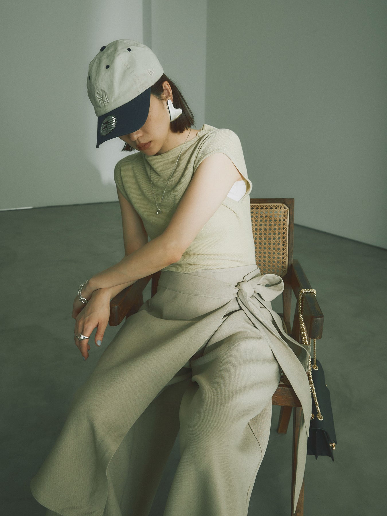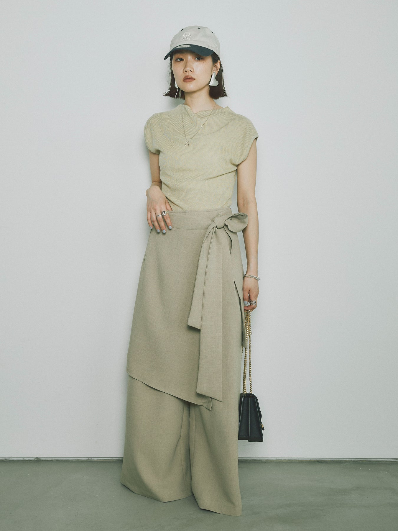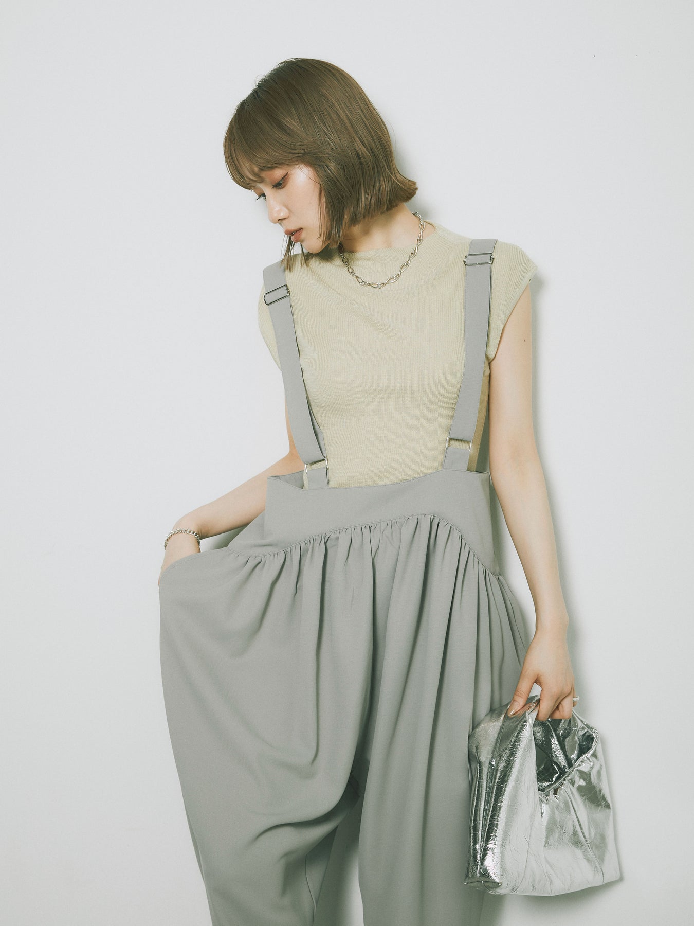 [予約]プチネックノースリーブリブニットトップス/ピスタチオ