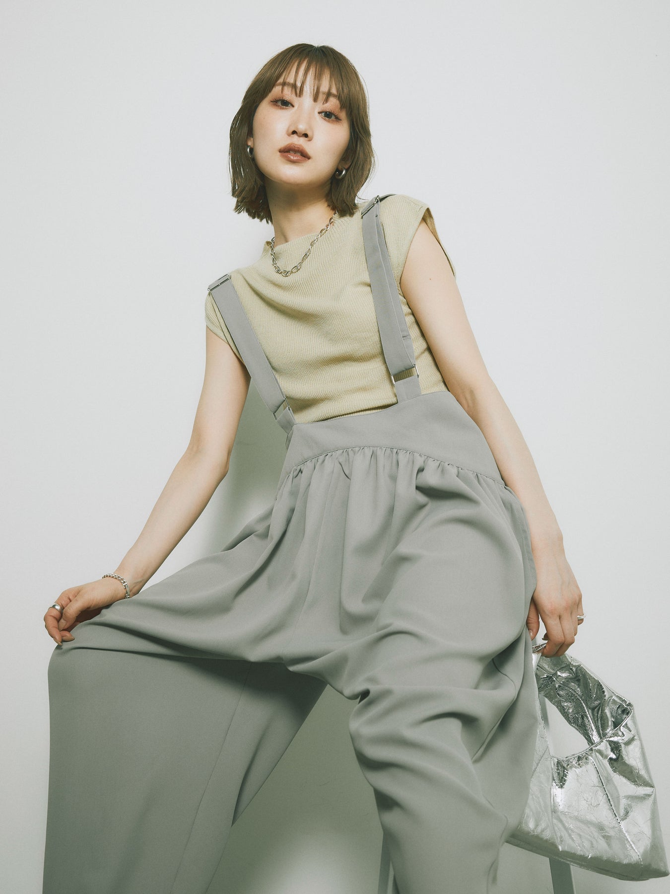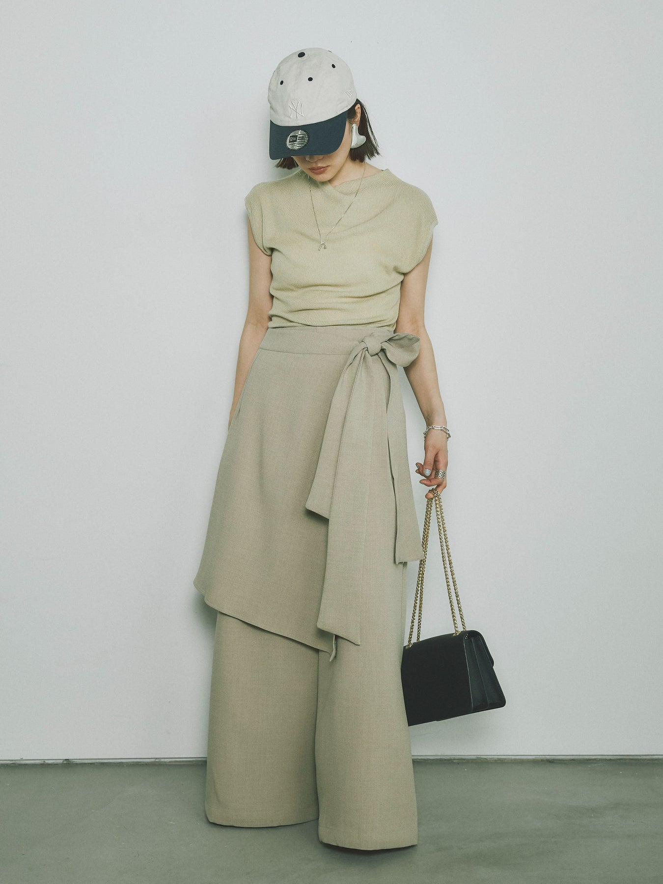 シンプルでありながら上品さが漂うプチネックデザインのノースリーブリブニットトップス。コンパクトなシルエットで、女性らしさを引き立てつつ、ストレッチ性のある素材で快適な着心地を提供します。柔らかいリブ編みが体にフィットし、シンプルながらも洗練された印象を与えます。シンプルなデザインでコーディネートの幅が広く、デイリーユースにぴったりです。 ※ボトムス、キャミソール(インナー)以外の商品は一律でインナーは付属していません。