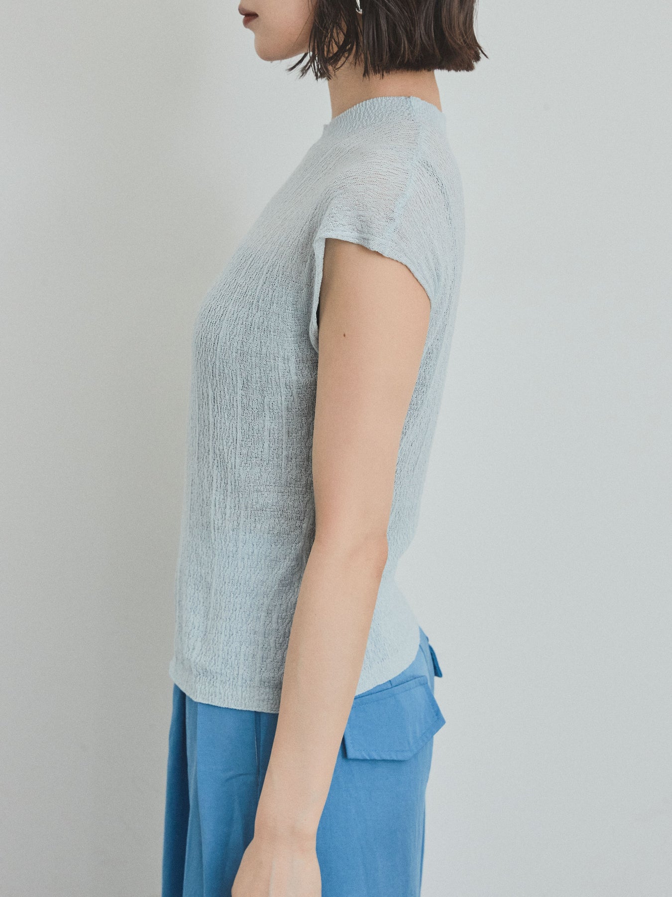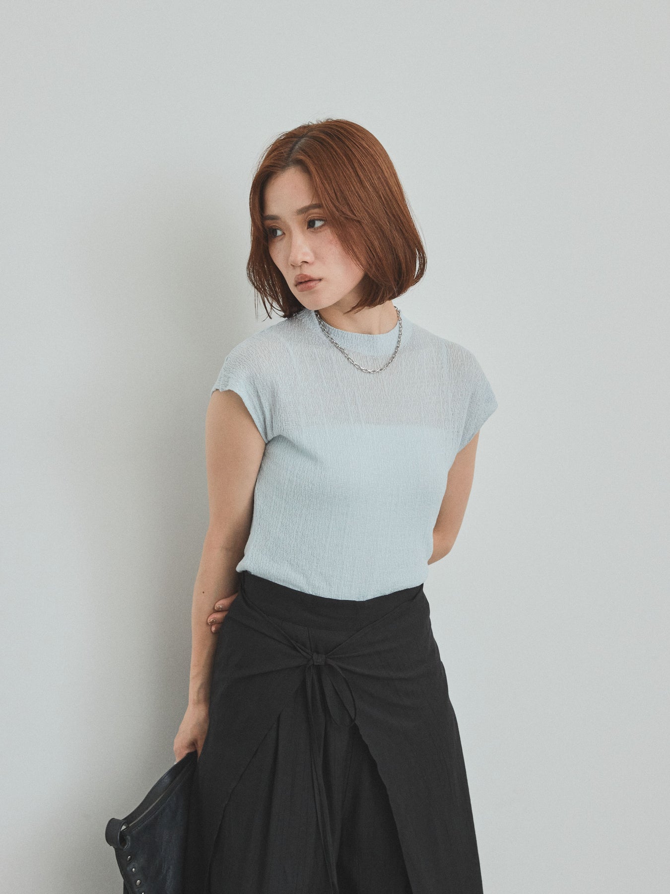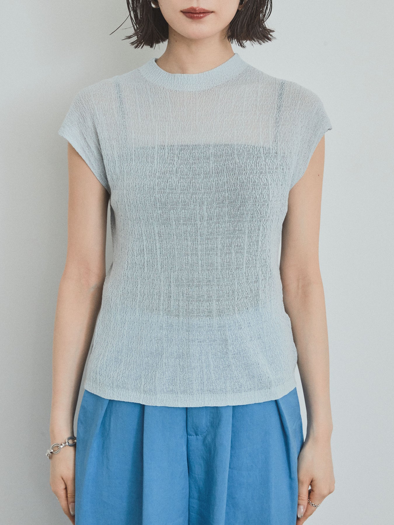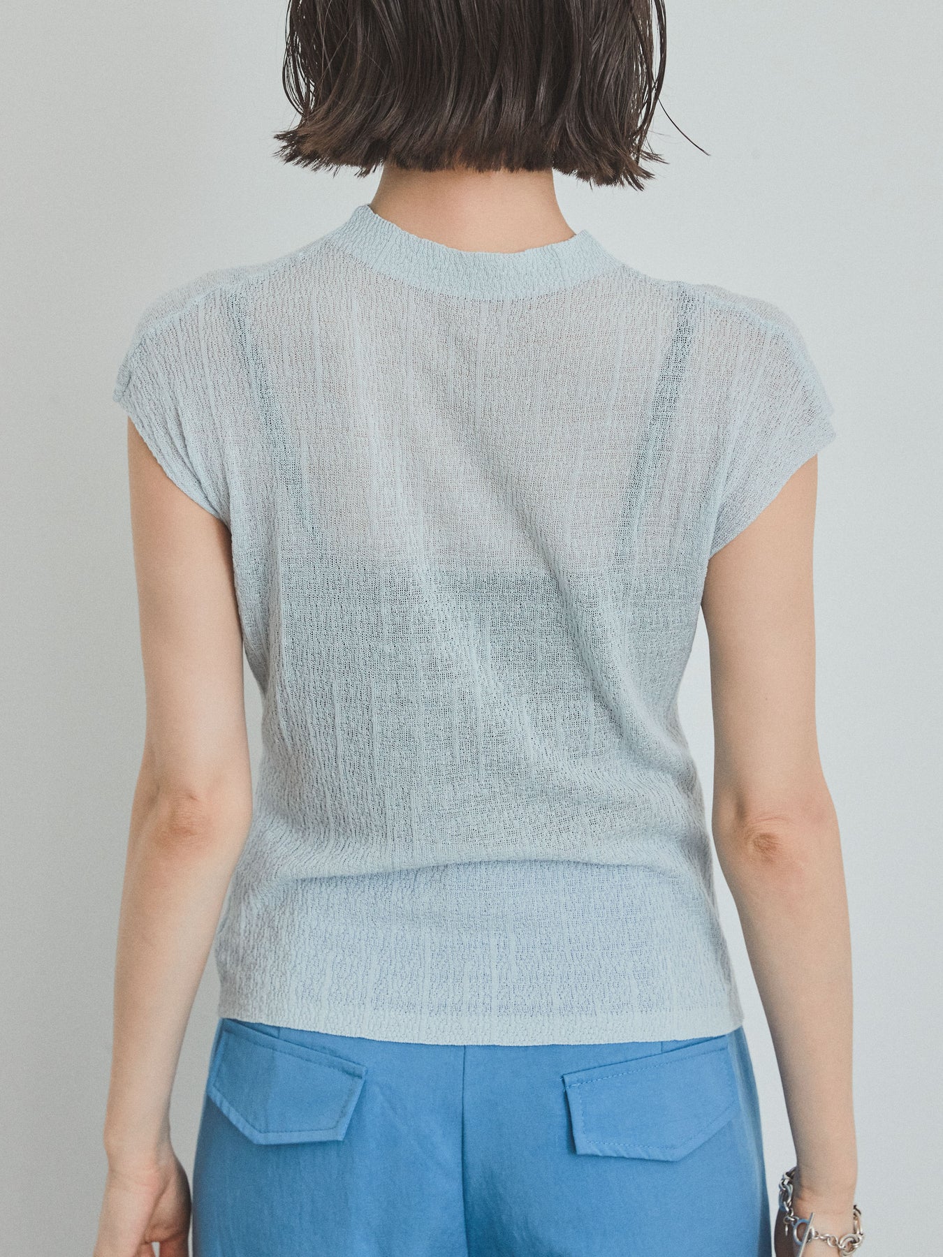 [予約]フレンチスリーブシアーニットトップス/ライトブルー