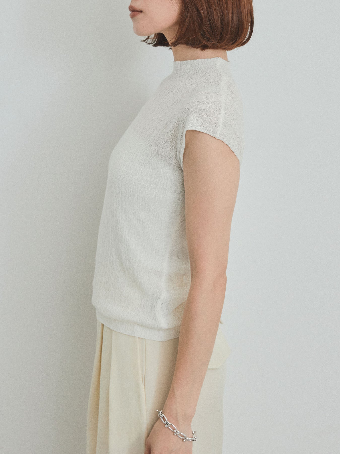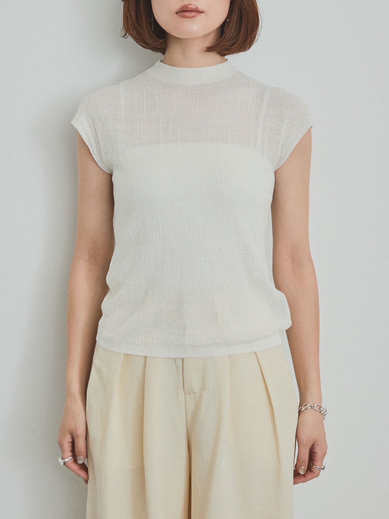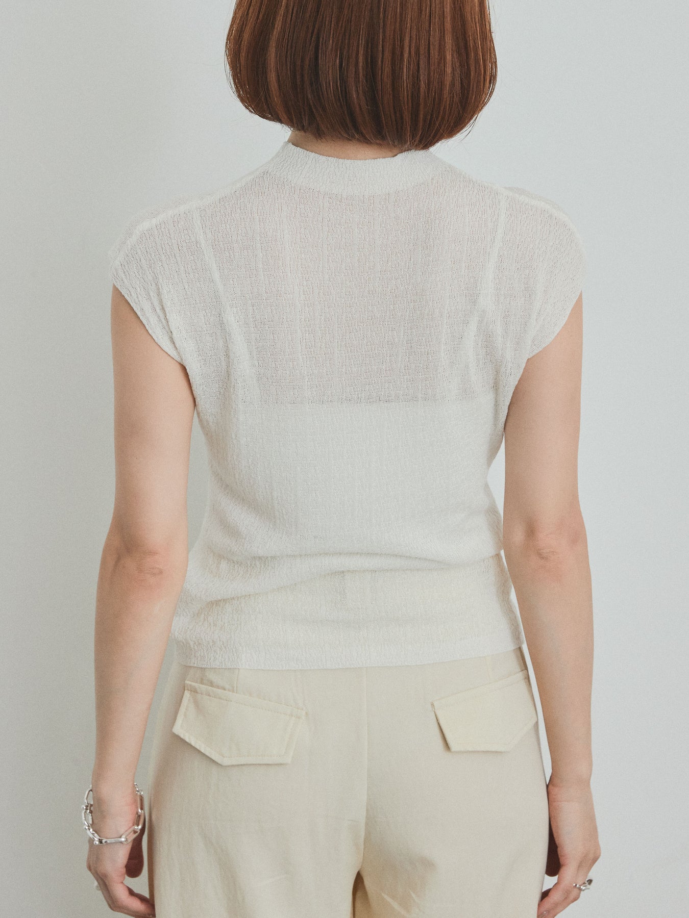 [予約]フレンチスリーブシアーニットトップス/ホワイト