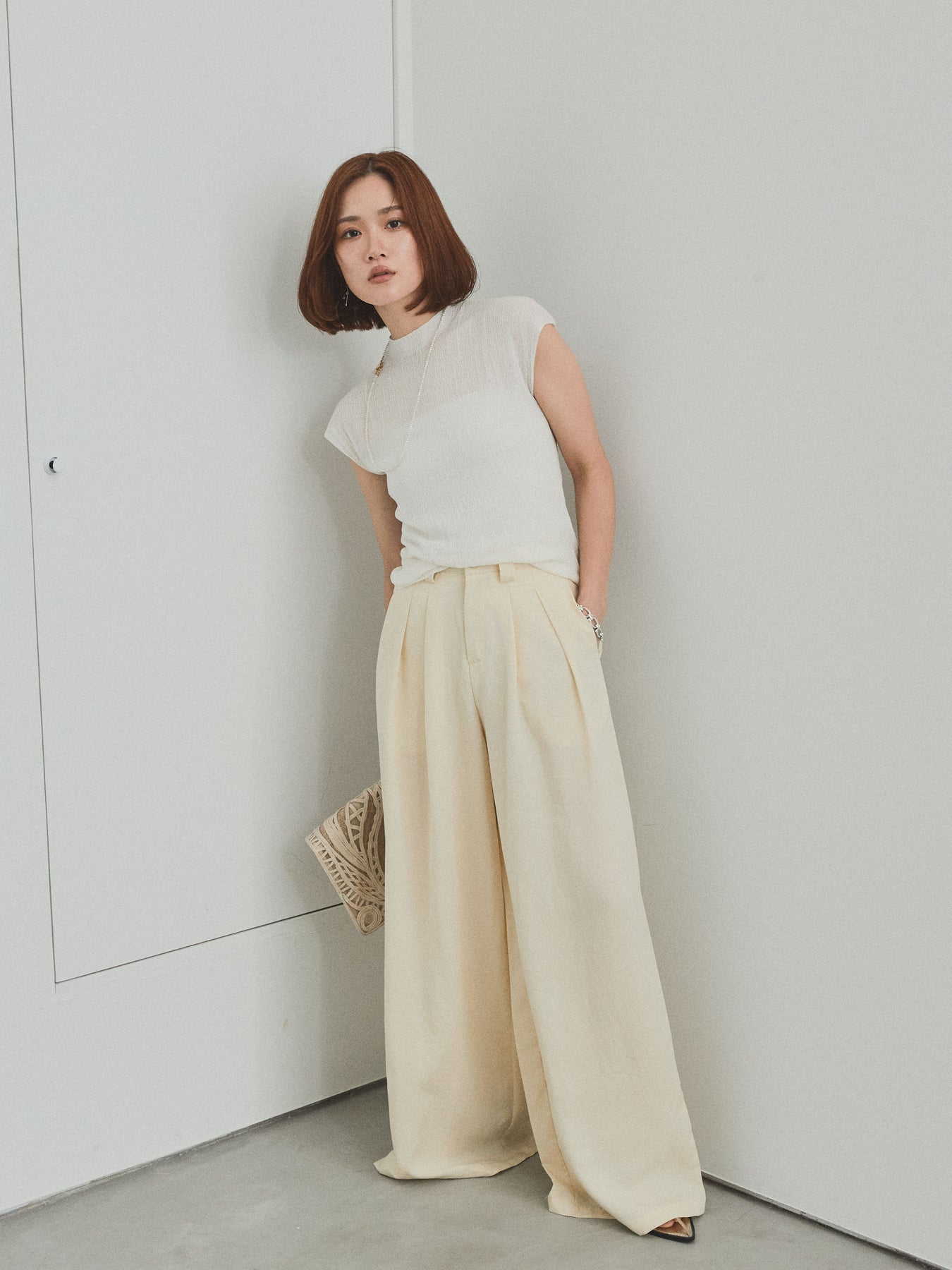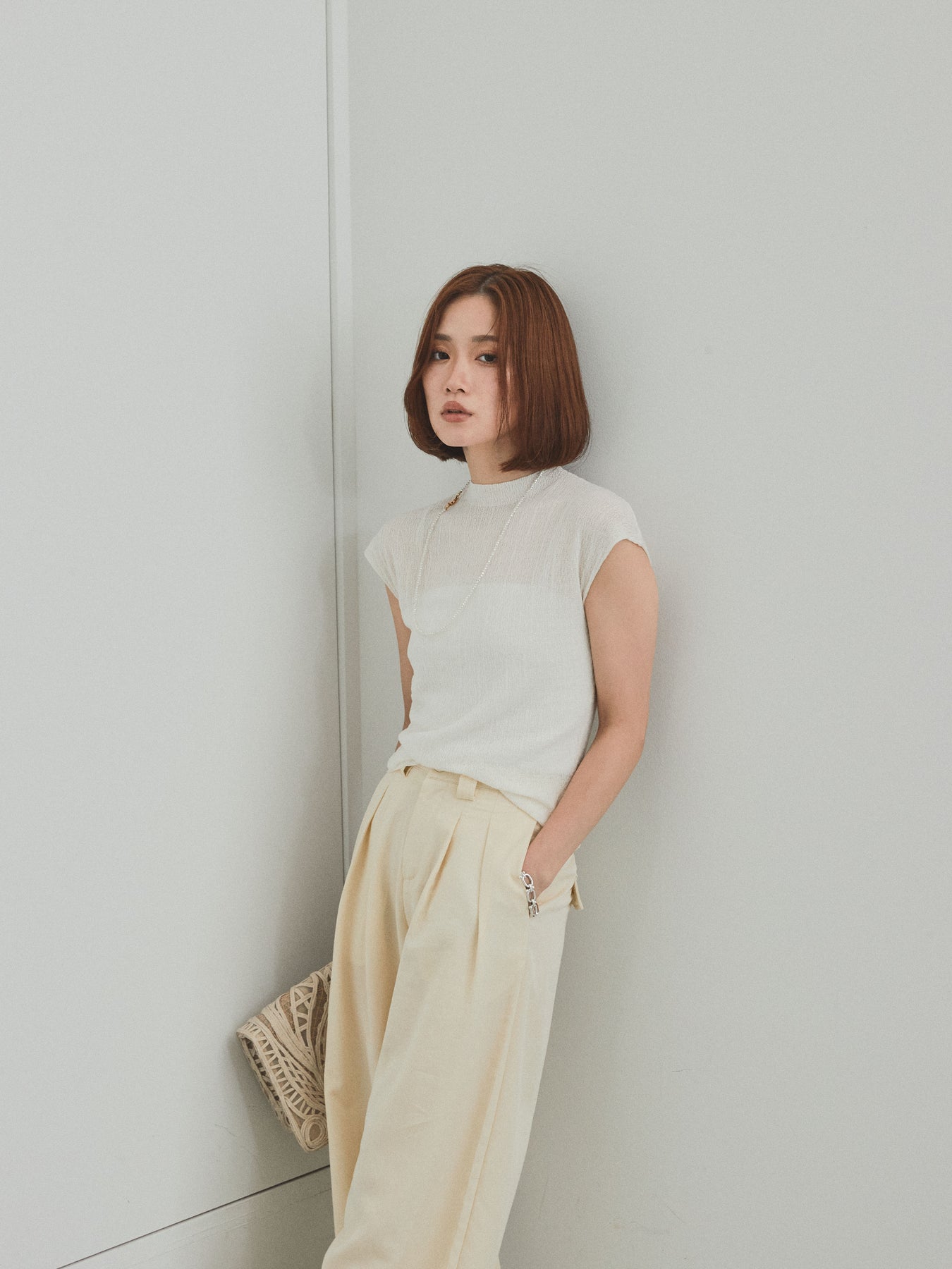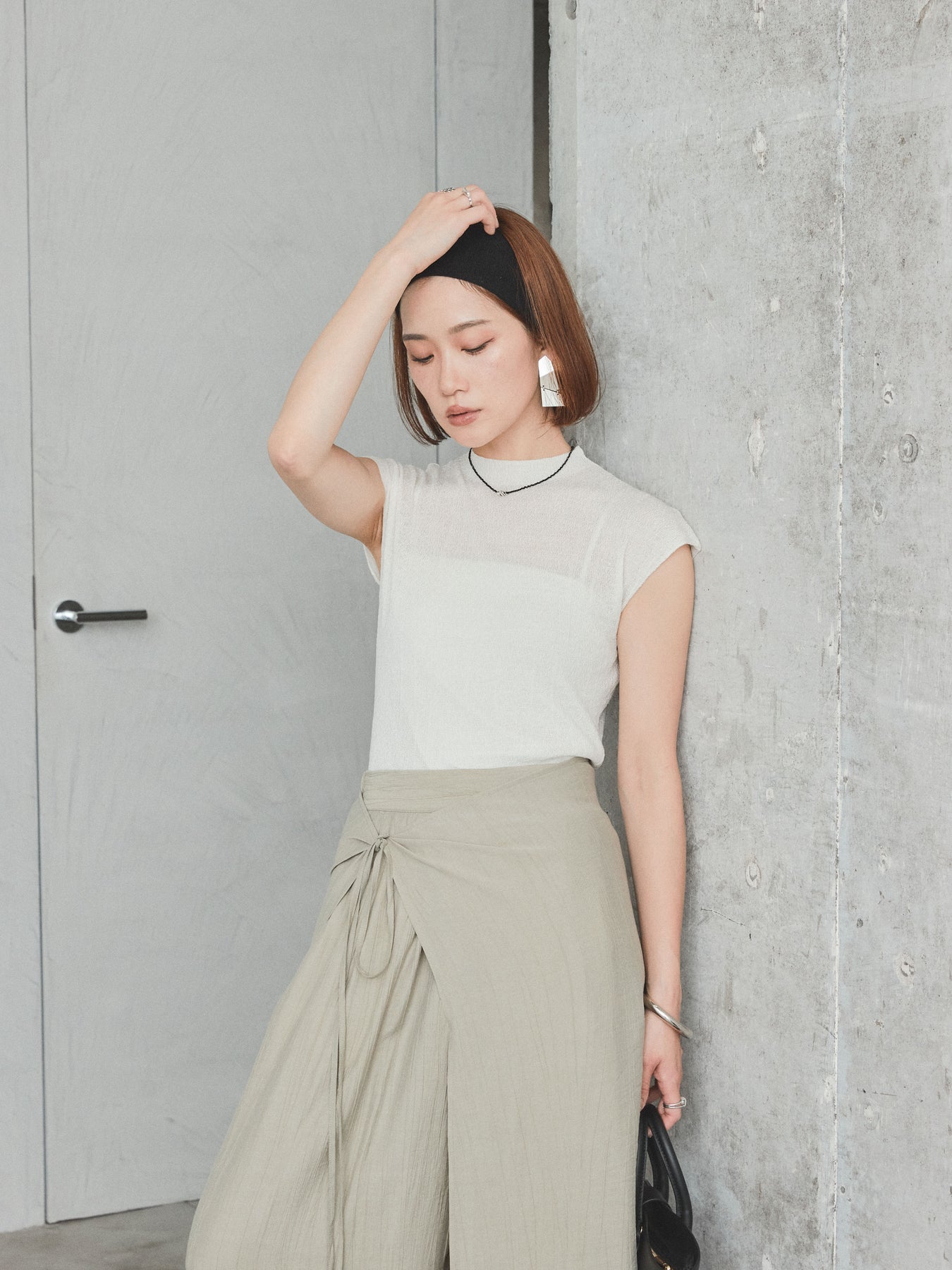 [予約]フレンチスリーブシアーニットトップス/ホワイト