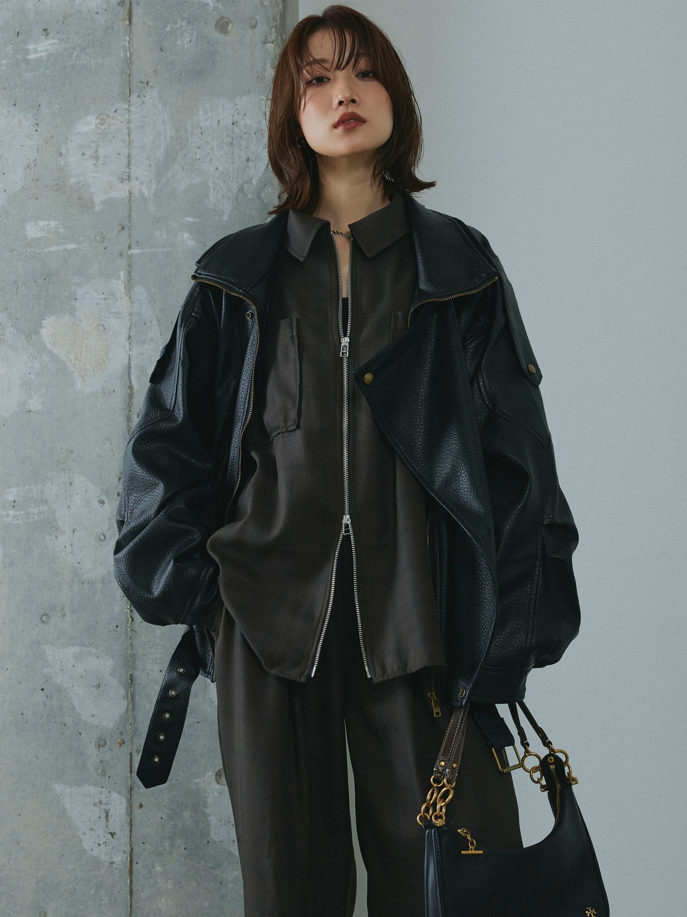 肩幅57cm バスト114cm アームホール50cm 袖丈55cm 袖口25cm 着丈73cm 透け感なし 伸縮性なし 胸ポケットあり フロントジップあり 袖ボタンあり 裏地なし