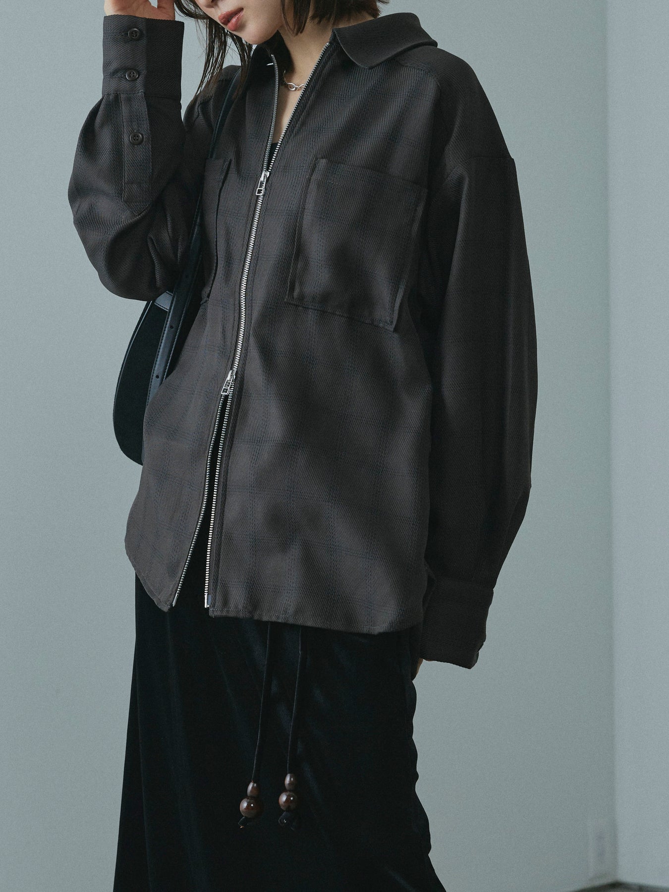 [予約]杢チェックZIPシャツジャケット/charcoal