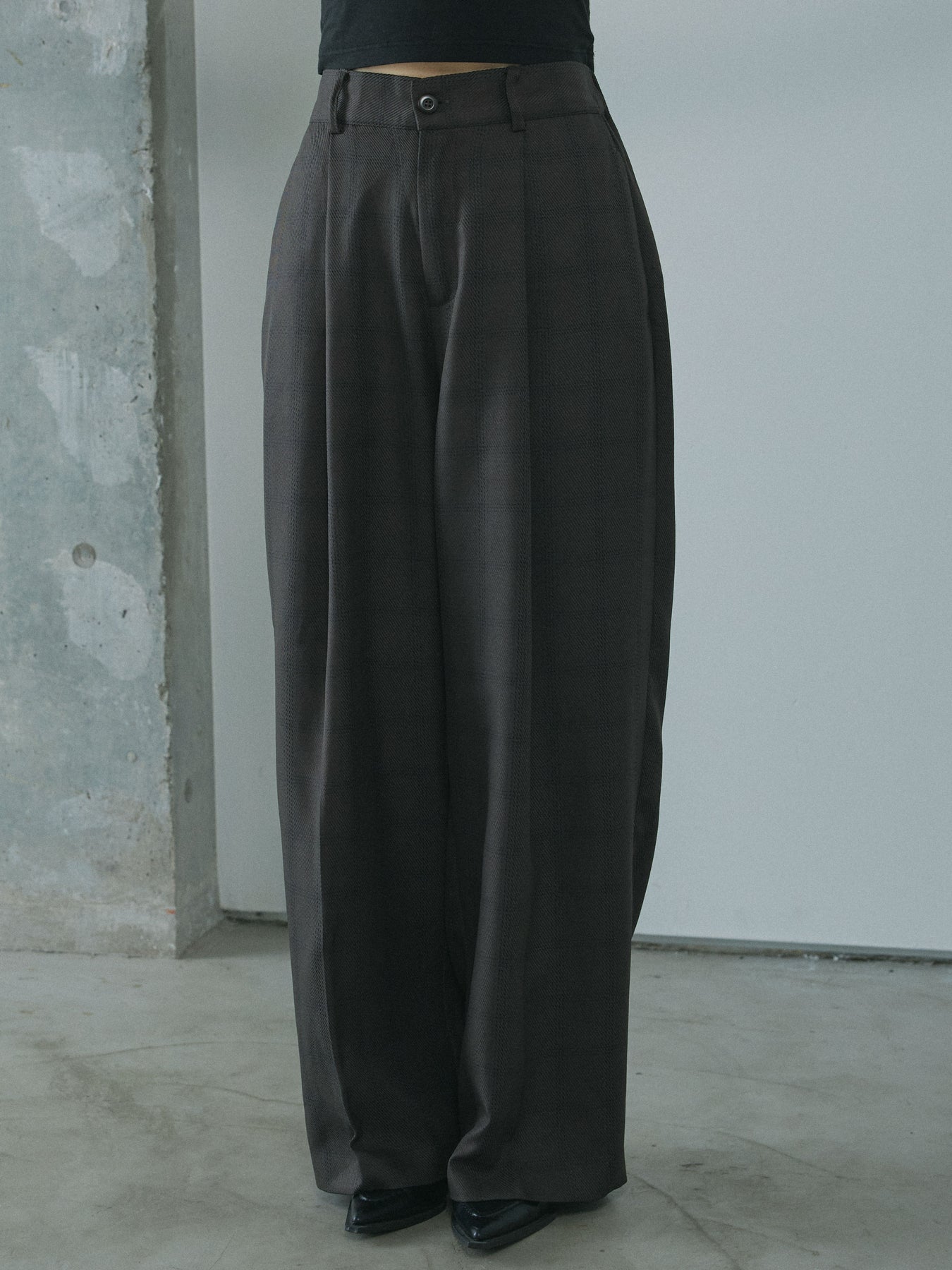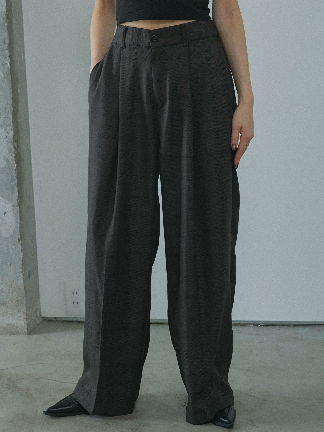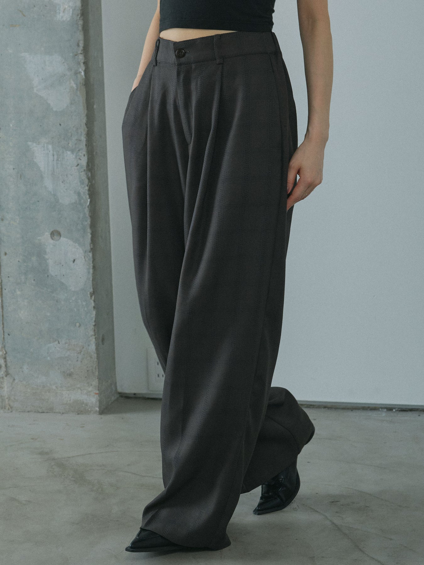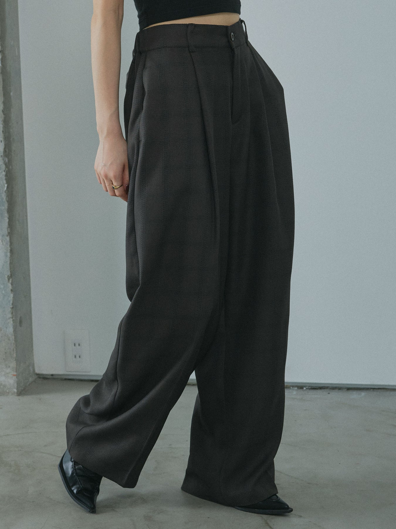 クラシカルなチェック柄と杢調の生地感が上品な印象を与えるタックパンツ。 フロントに施されたタックが立体感を生み、脚のラインをすっきりと見せてくれます。 程よくゆとりのあるシルエットで動きやすく、リラックス感のある穿き心地が魅力。 トップスをインしたスタイルもきれいに決まり、通勤から休日まで幅広いシーンで活躍します。 同素材のシャツジャケットと合わせたセットアップコーデもおすすめです。