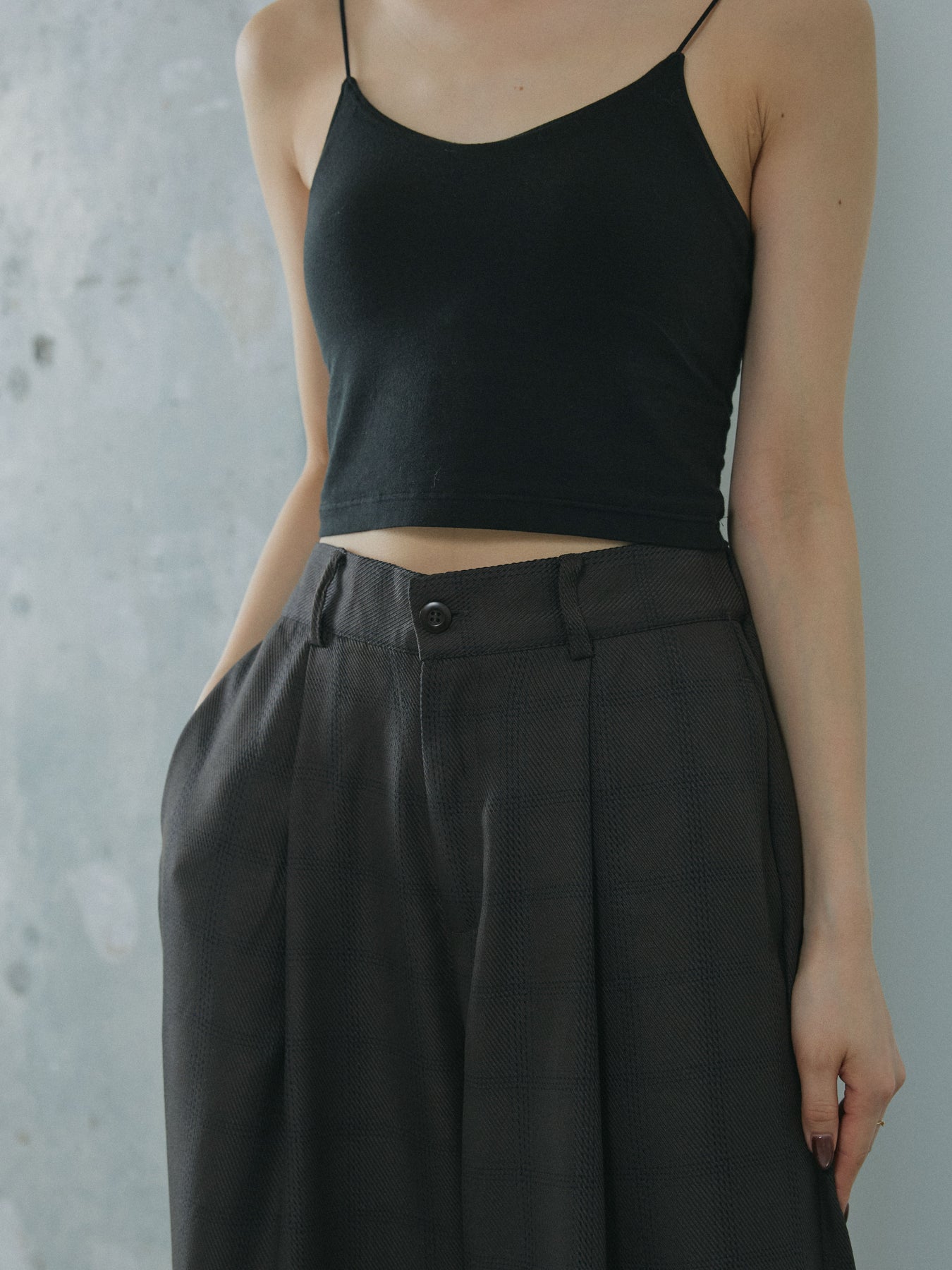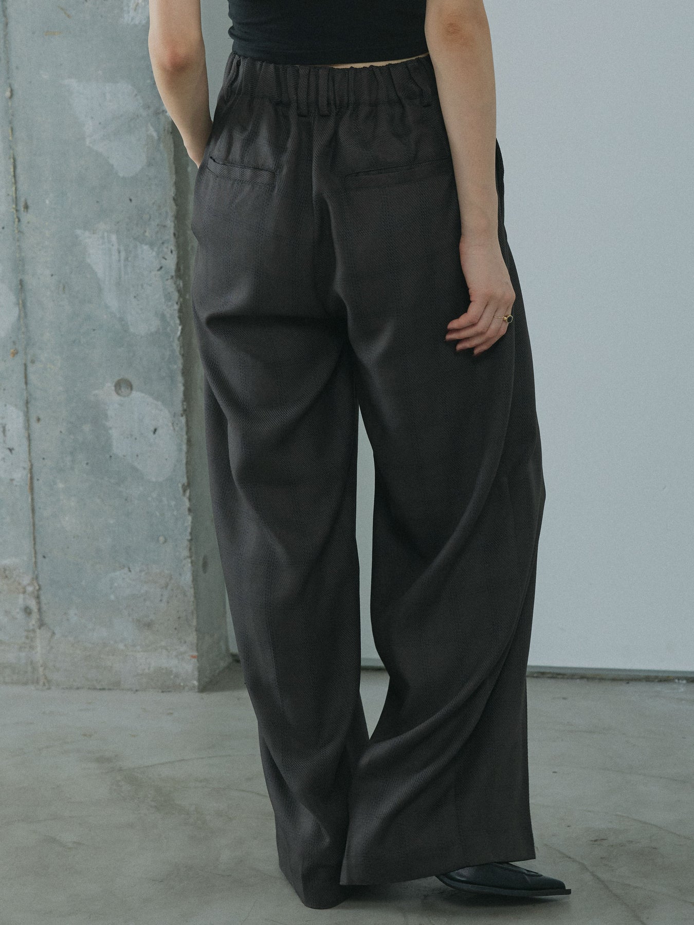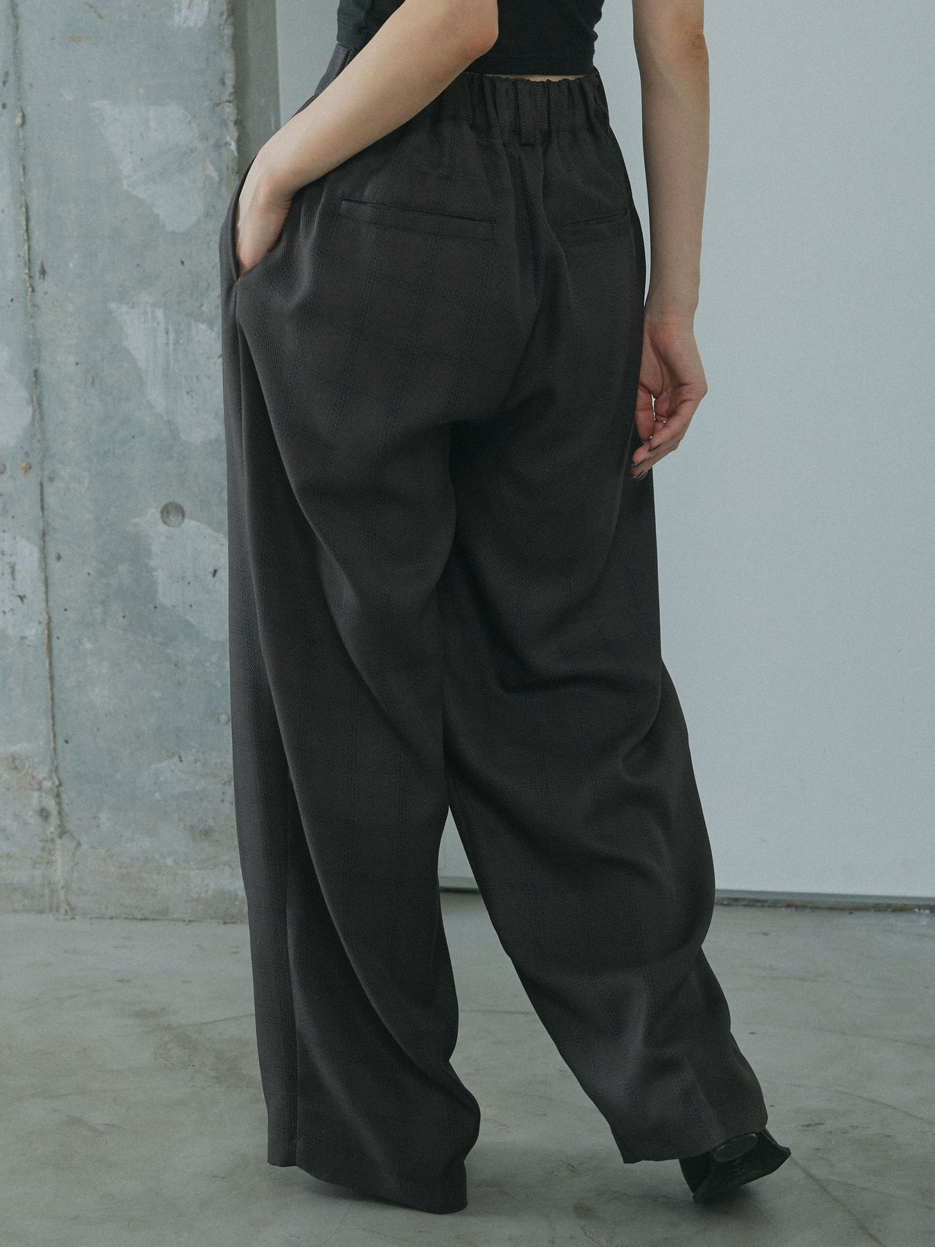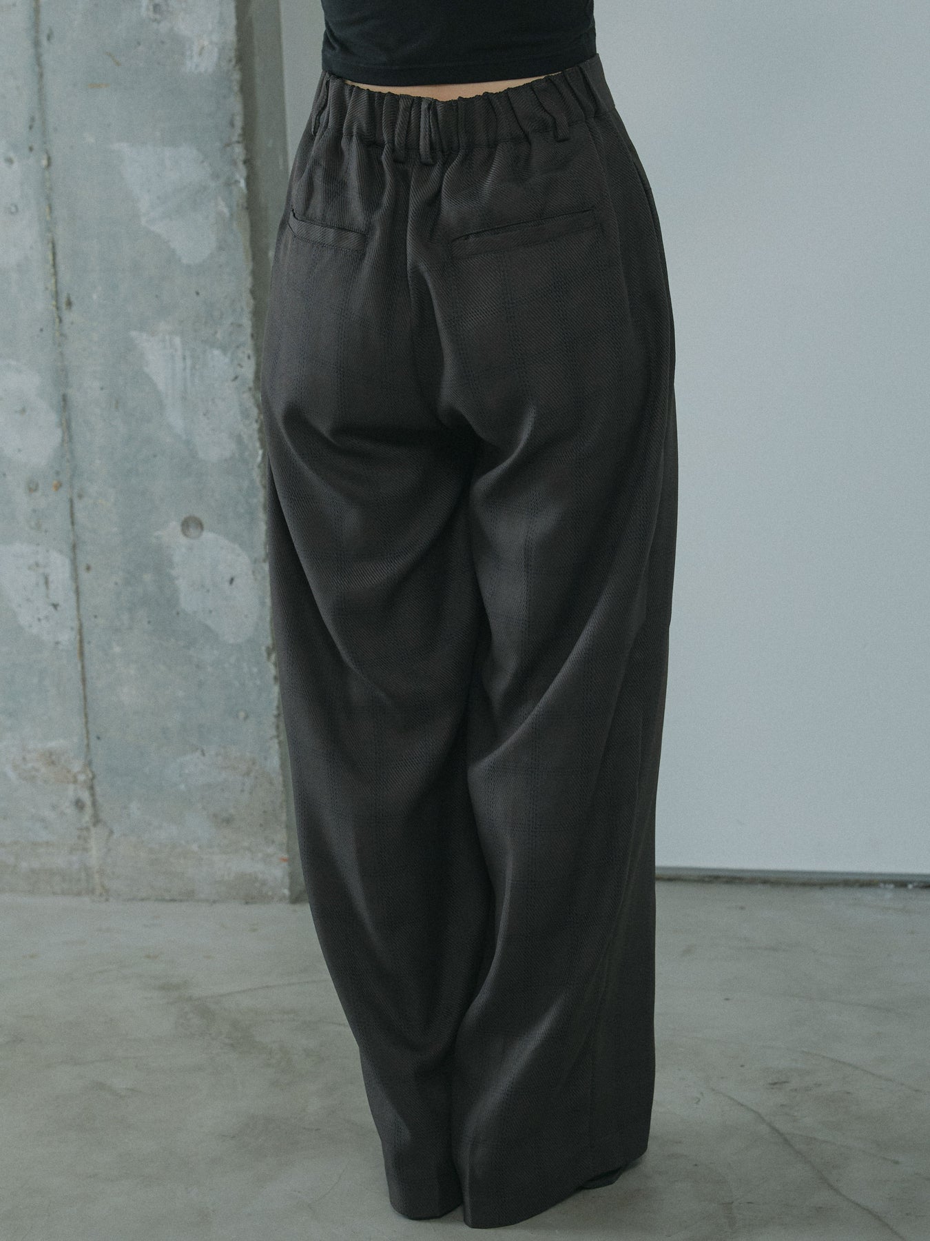 クラシカルなチェック柄と杢調の生地感が上品な印象を与えるタックパンツ。 フロントに施されたタックが立体感を生み、脚のラインをすっきりと見せてくれます。 程よくゆとりのあるシルエットで動きやすく、リラックス感のある穿き心地が魅力。 トップスをインしたスタイルもきれいに決まり、通勤から休日まで幅広いシーンで活躍します。 同素材のシャツジャケットと合わせたセットアップコーデもおすすめです。