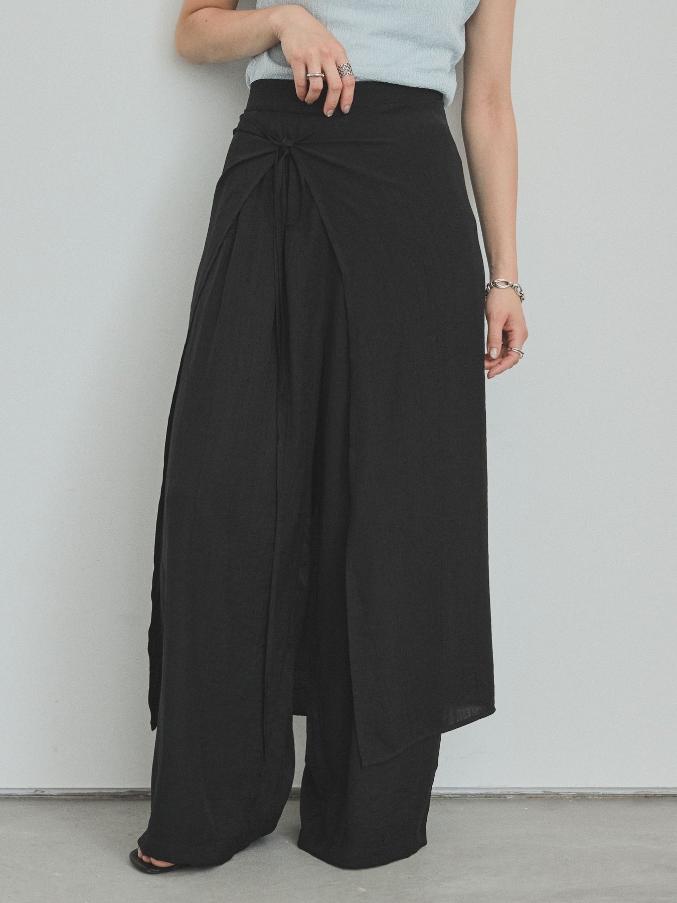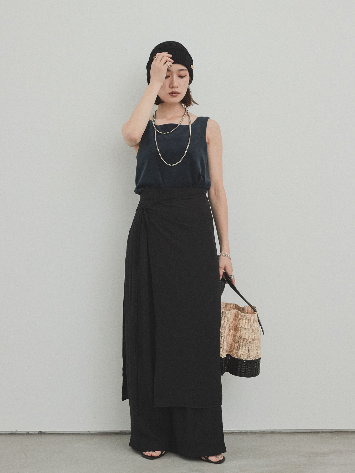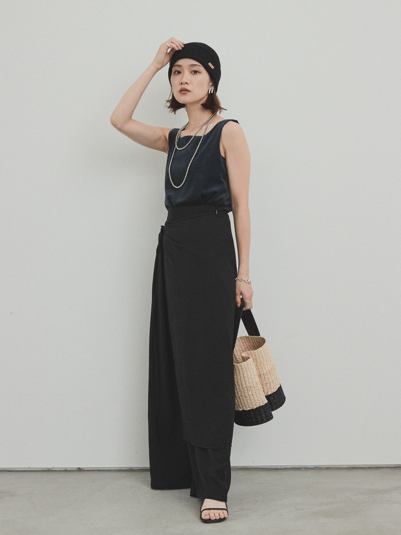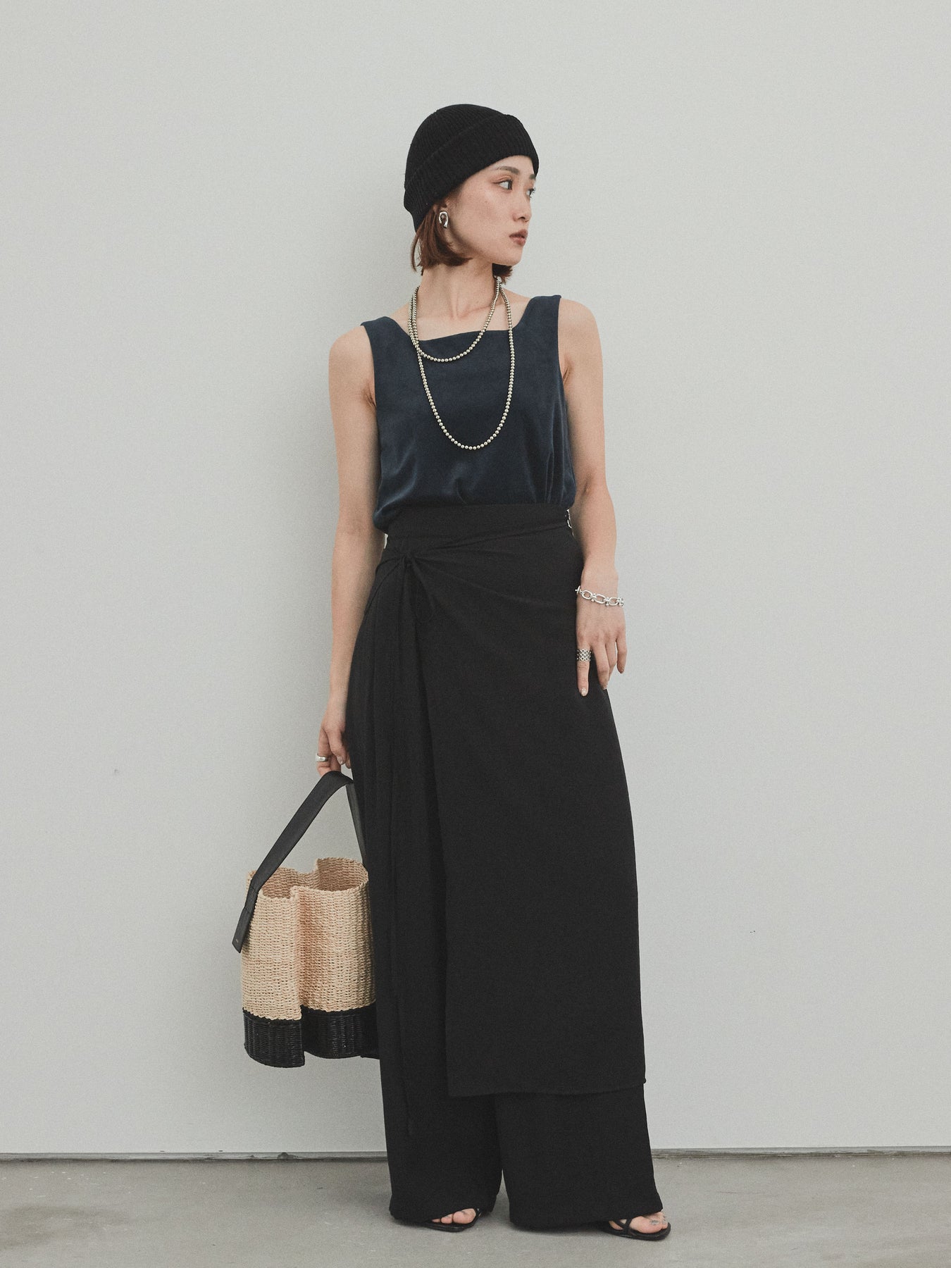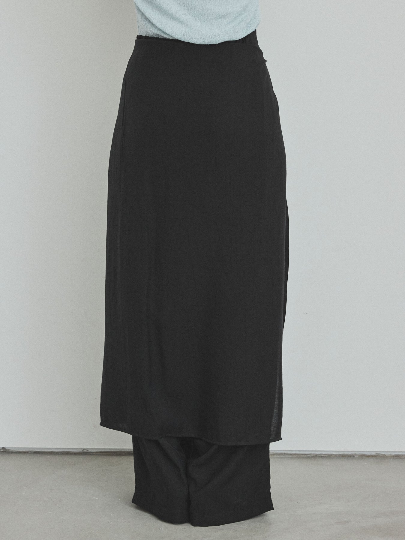 [予約]ワッシャーサテンレイヤードスカートパンツ/ブラック