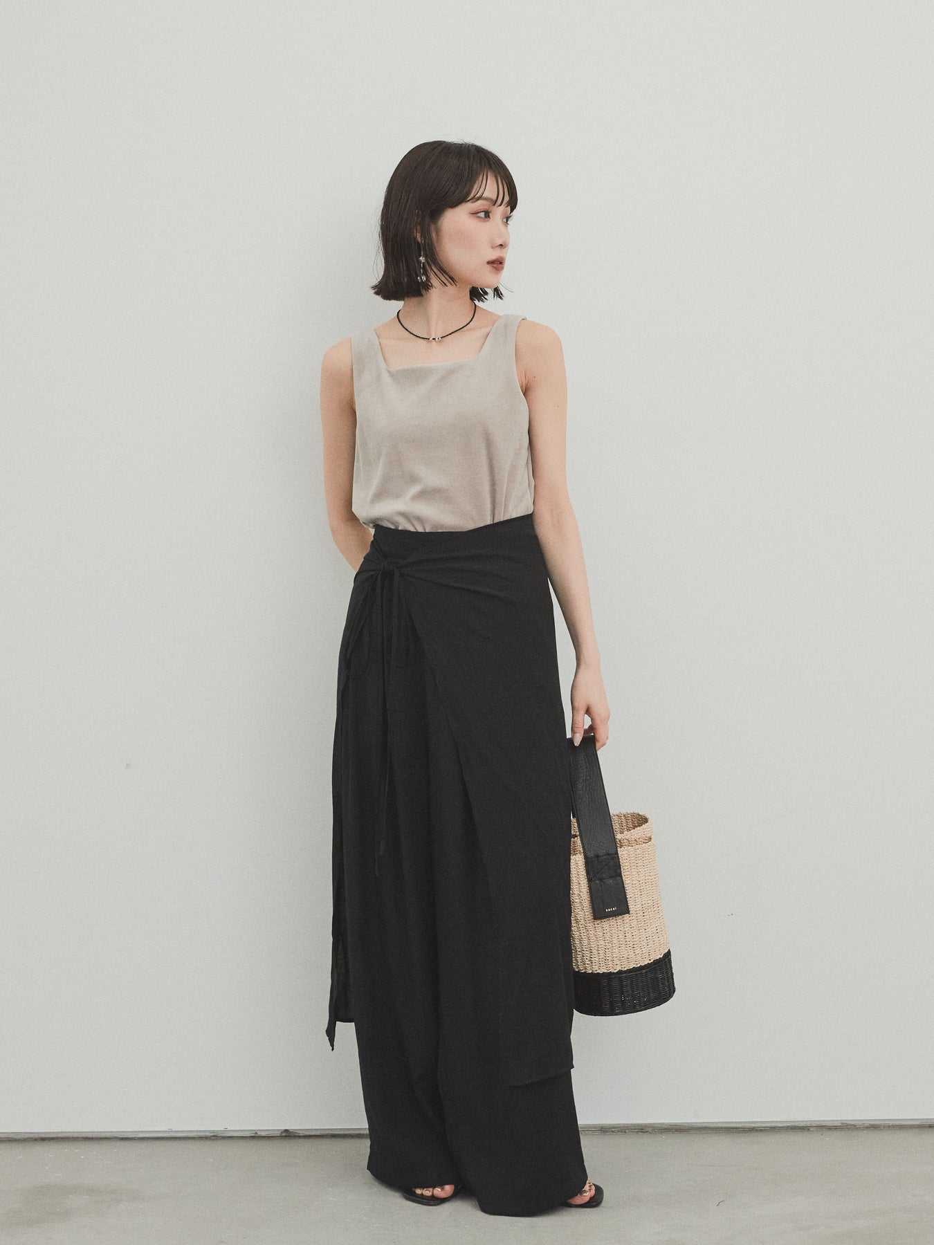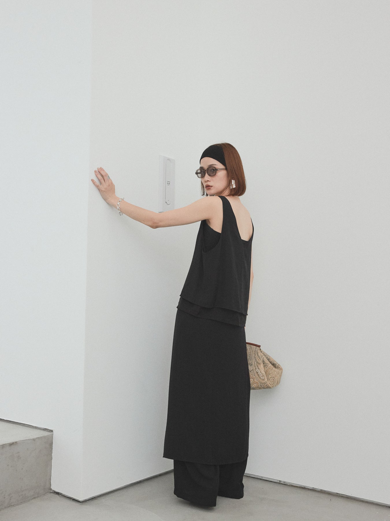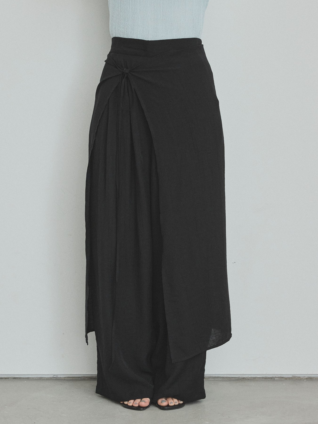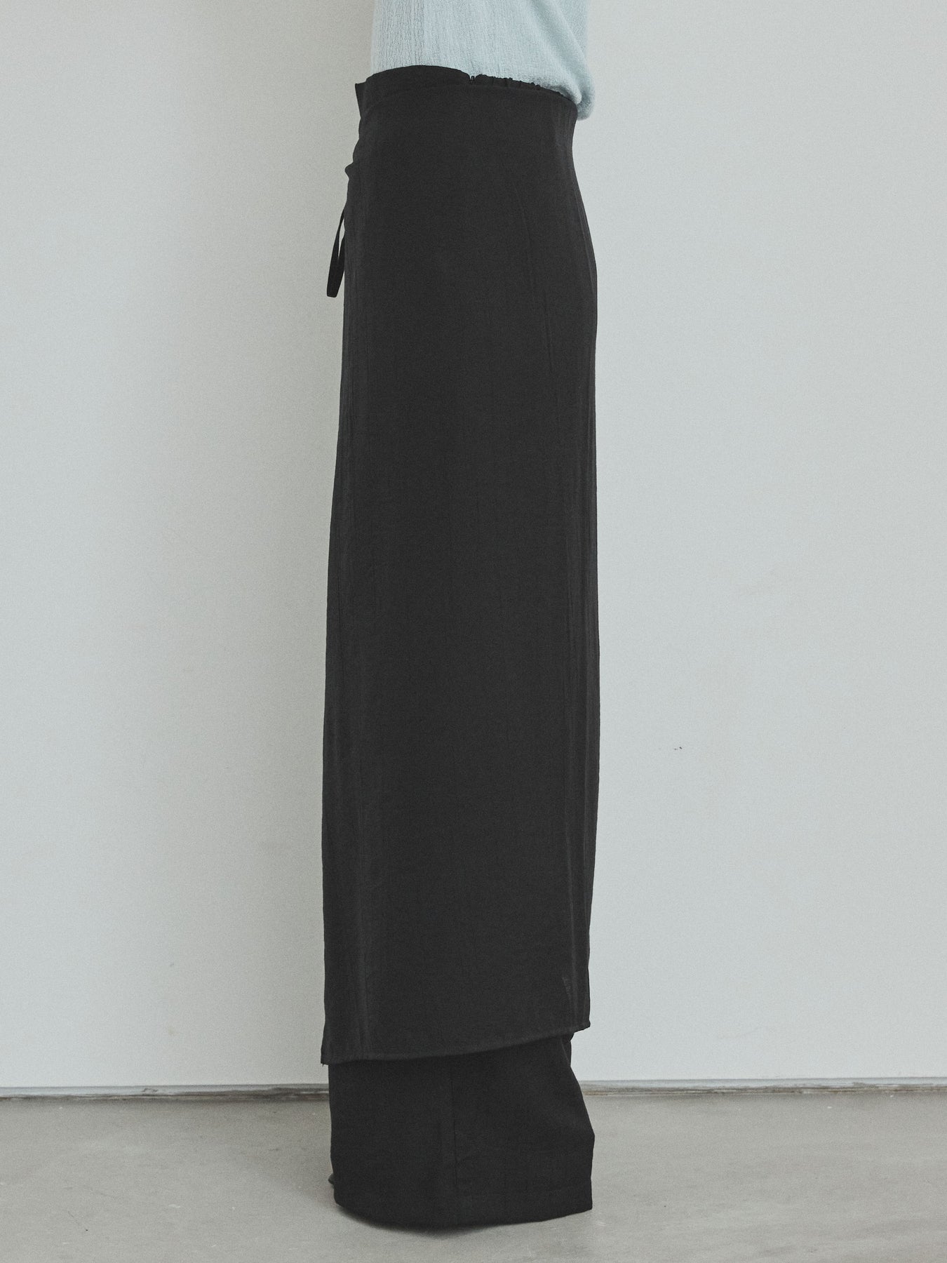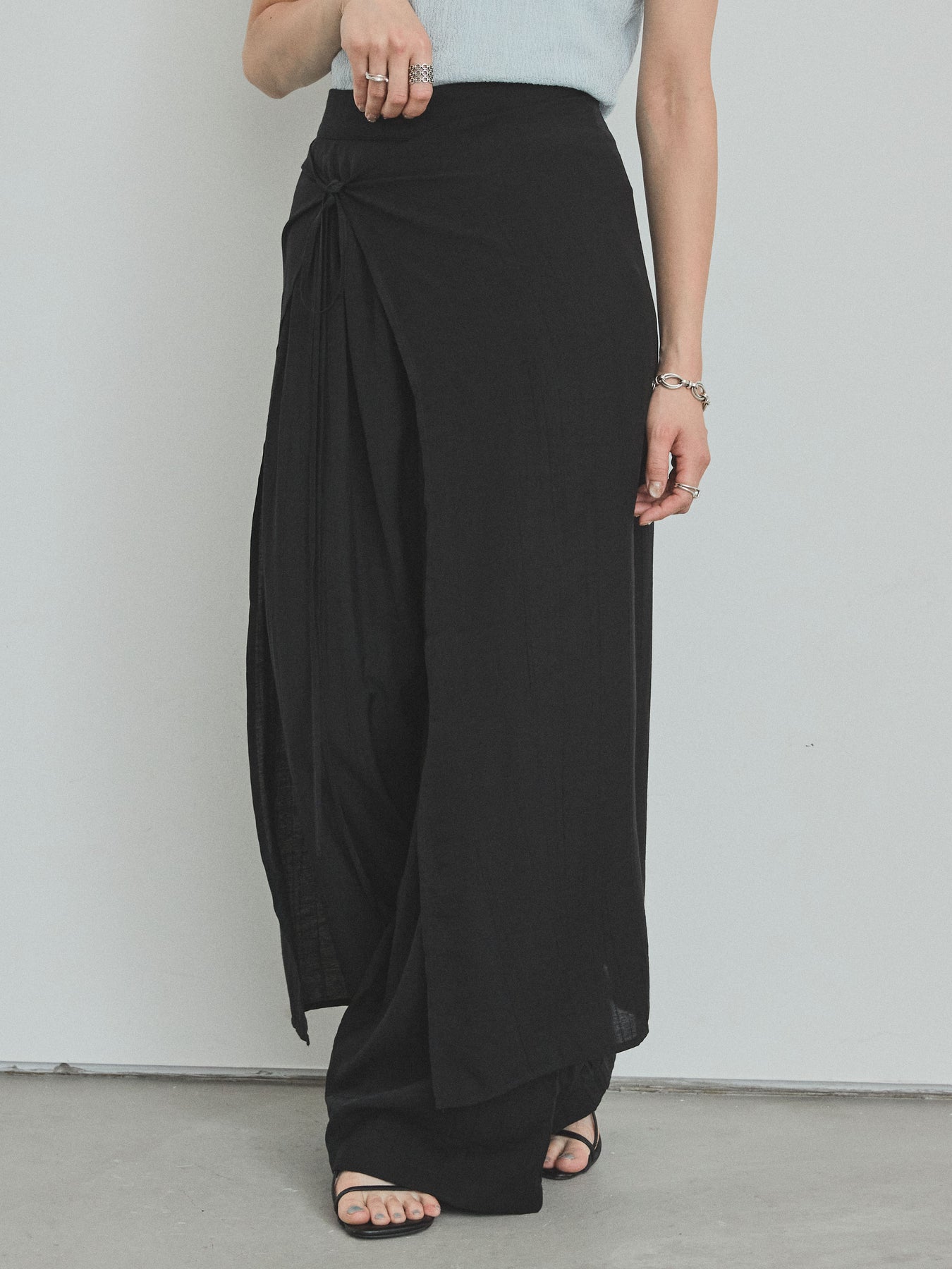 [予約]ワッシャーサテンレイヤードスカートパンツ/ブラック
