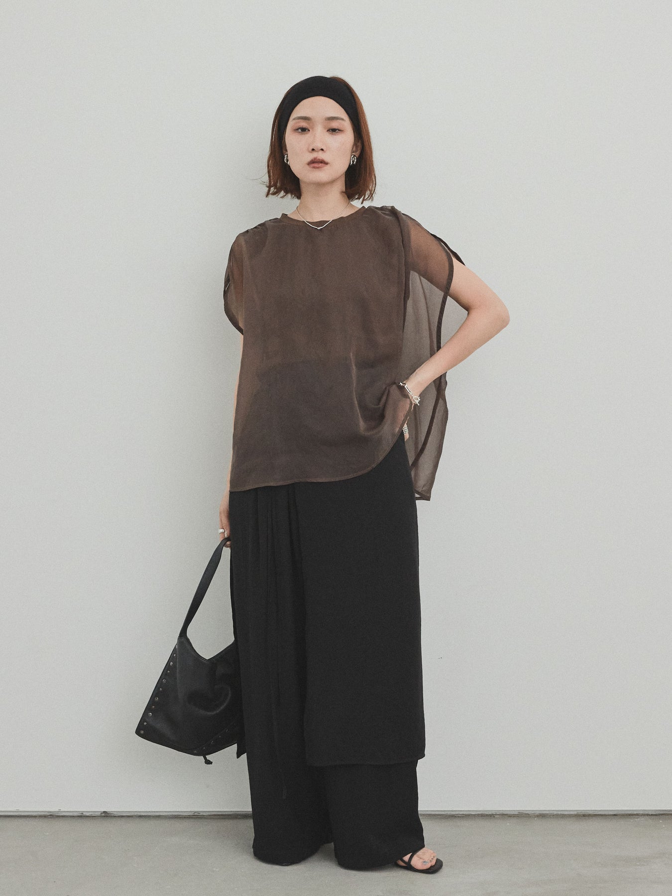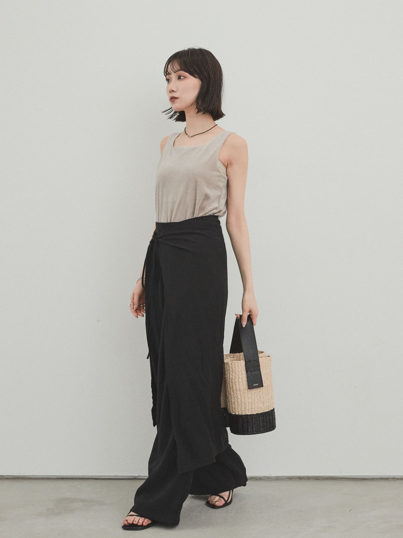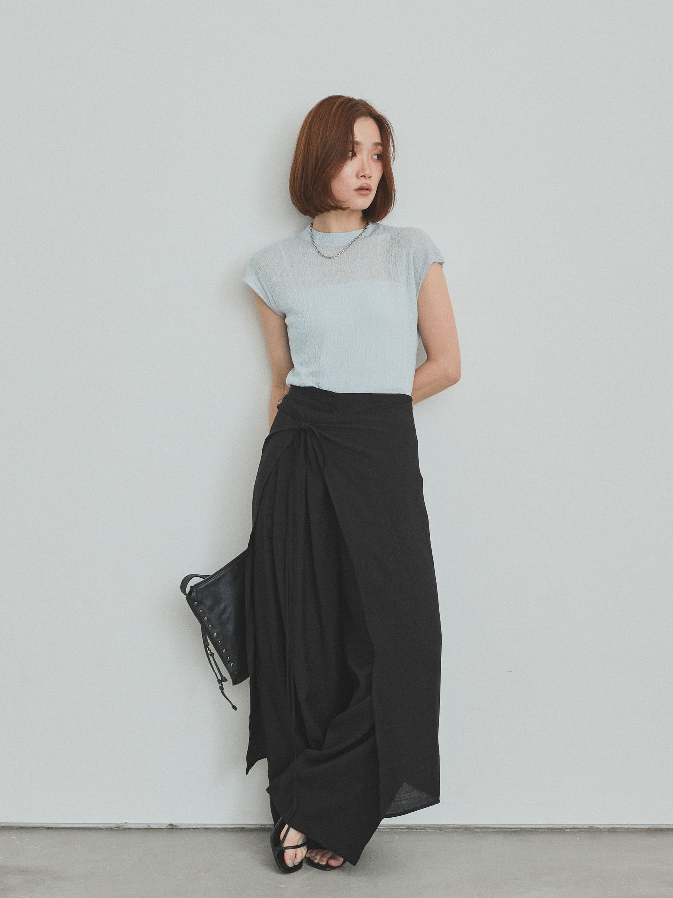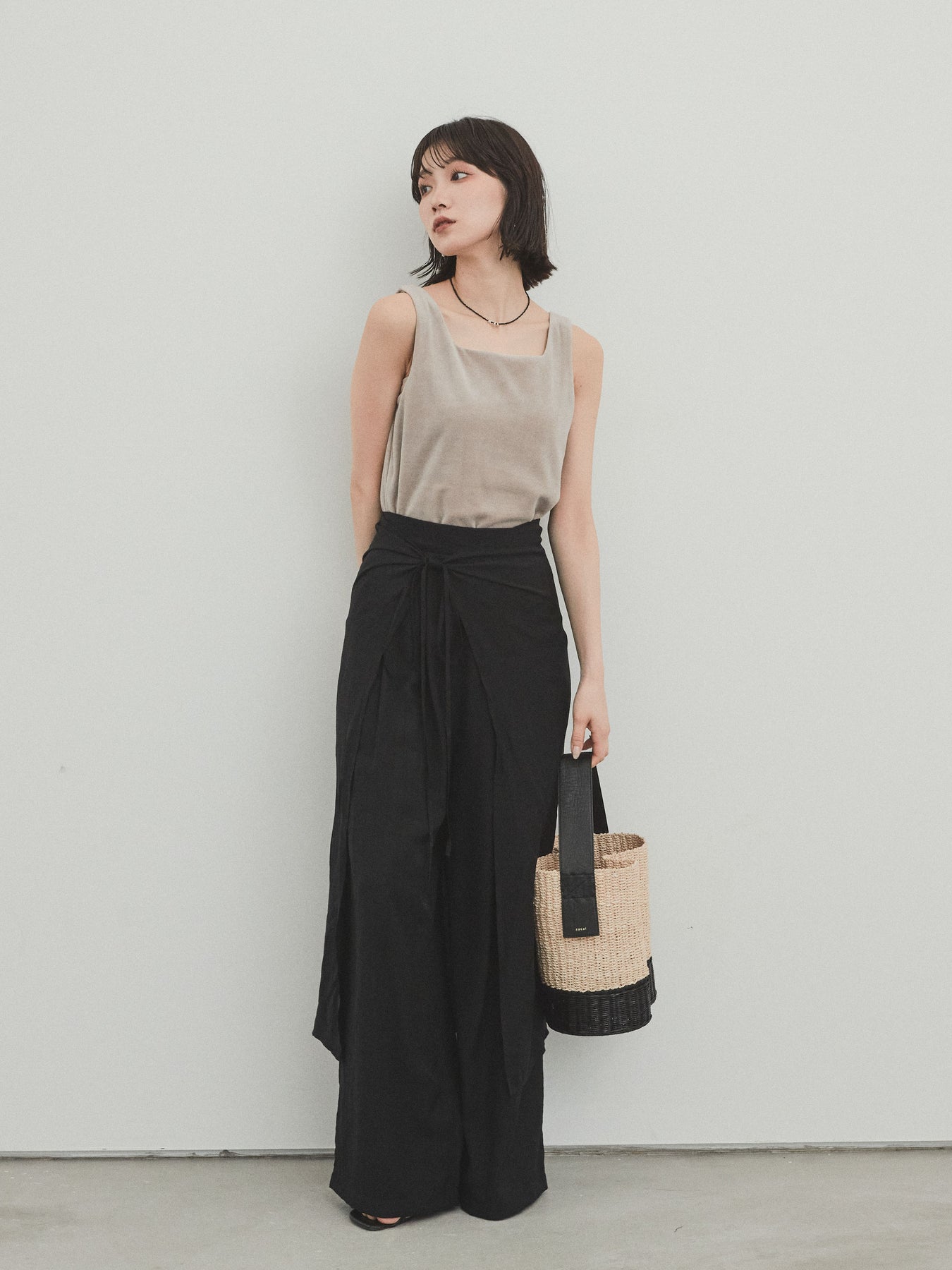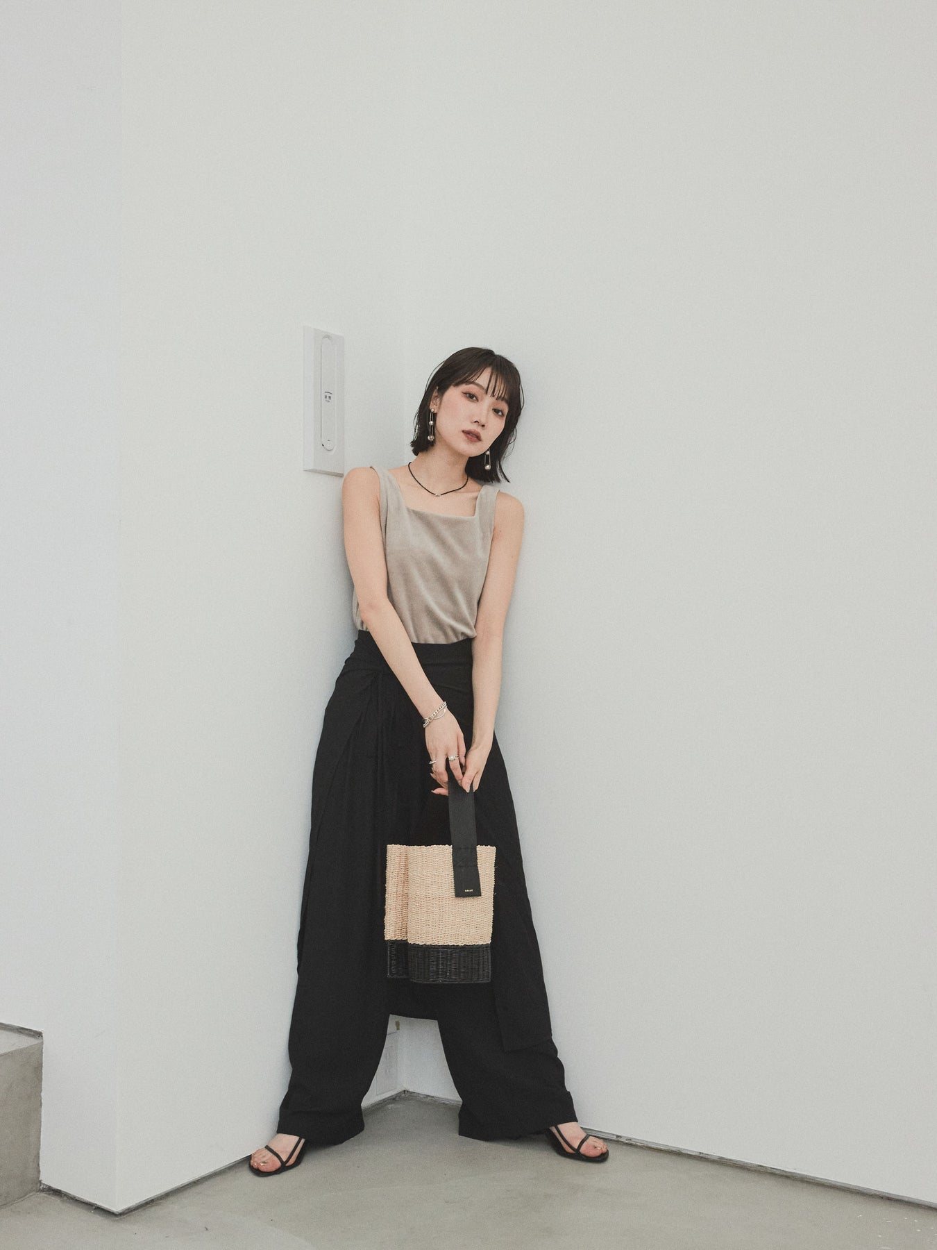 [予約]ワッシャーサテンレイヤードスカートパンツ/ブラック