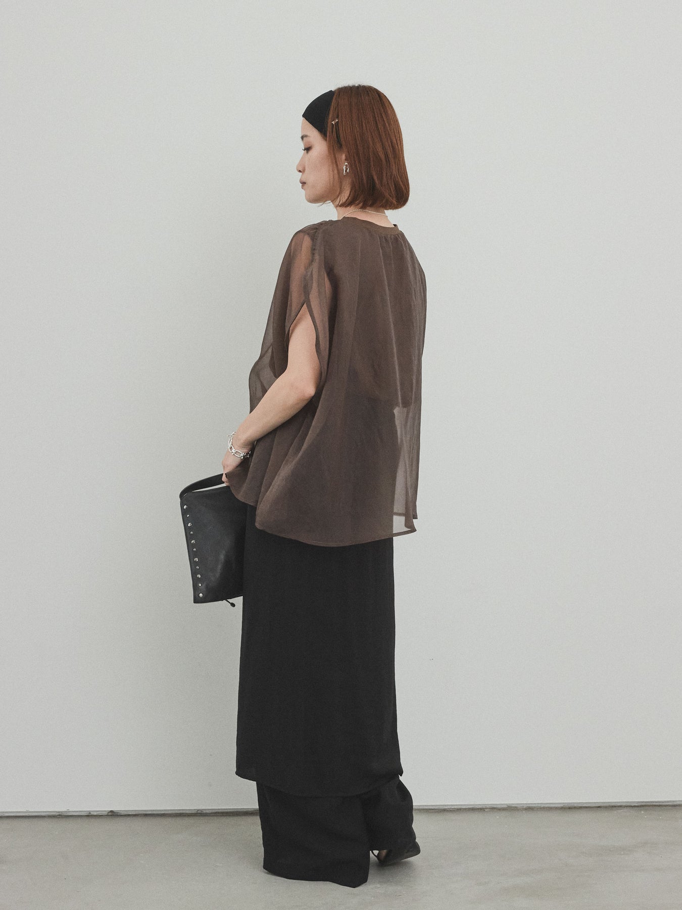 一見スカートのように見えるデザインが特徴的な、ワッシャーサテンレイヤードスカートパンツ。軽やかで落ち感のある素材を使用し、動くたびにふんわりと揺れるシルエットが女性らしさを演出します。パンツの上からレイヤードされた生地がモード感をプラスしつつ、ウエストはゴム仕様でストレスフリーな穿き心地。カジュアルからきれいめまで、幅広いスタイリングにマッチします。セットアップとしての着用はもちろん、単品でもコーディネートの主役になる一着です。