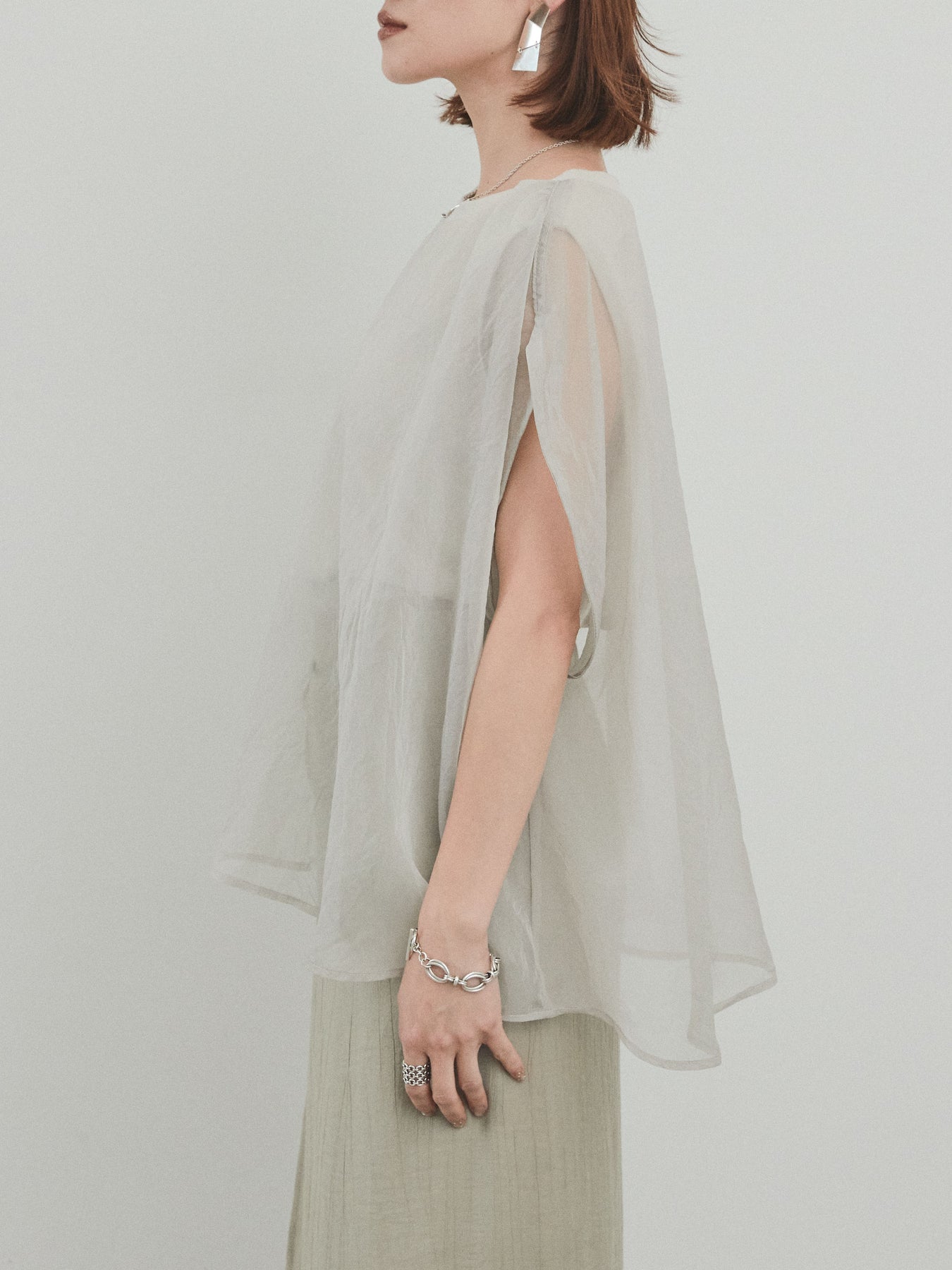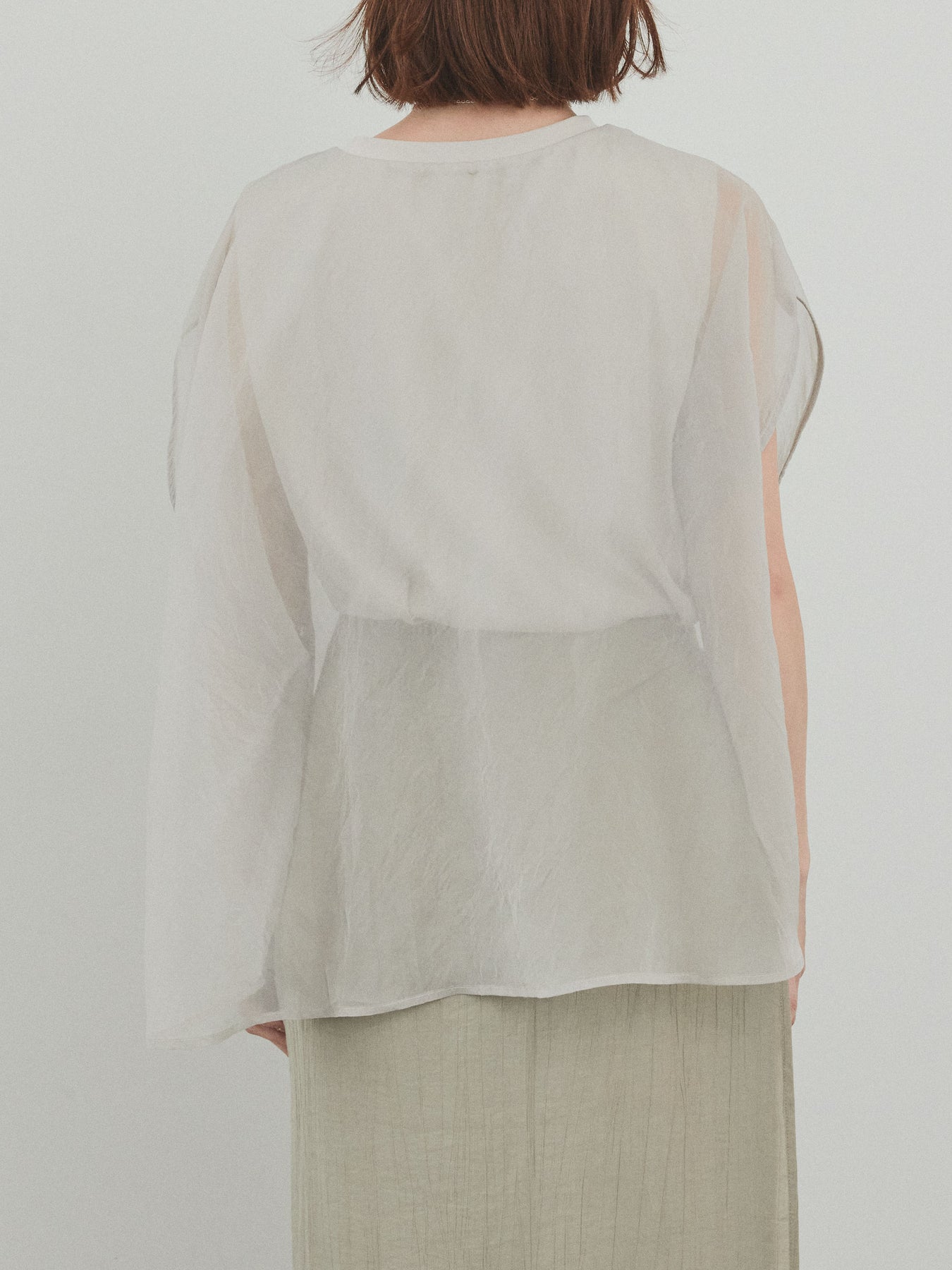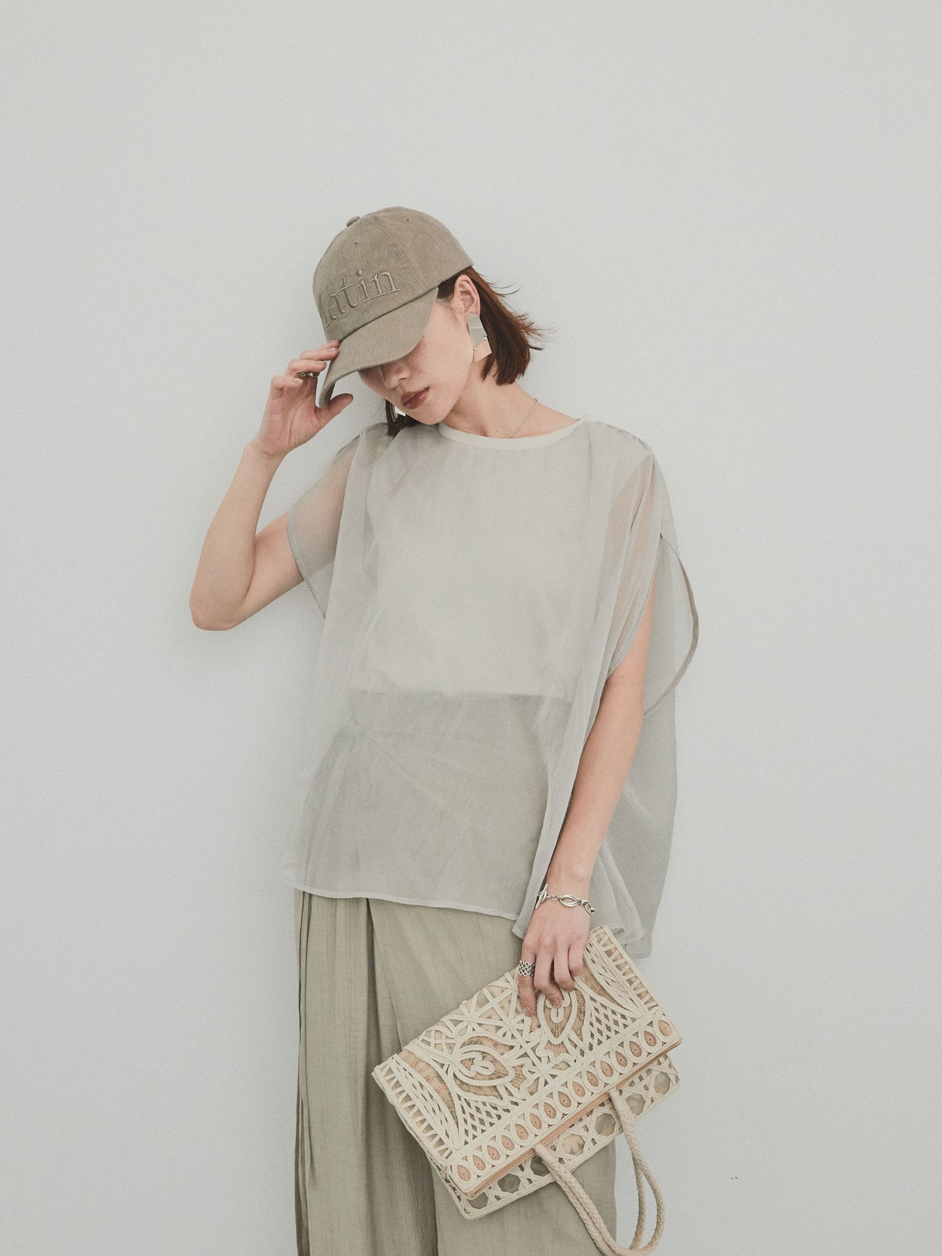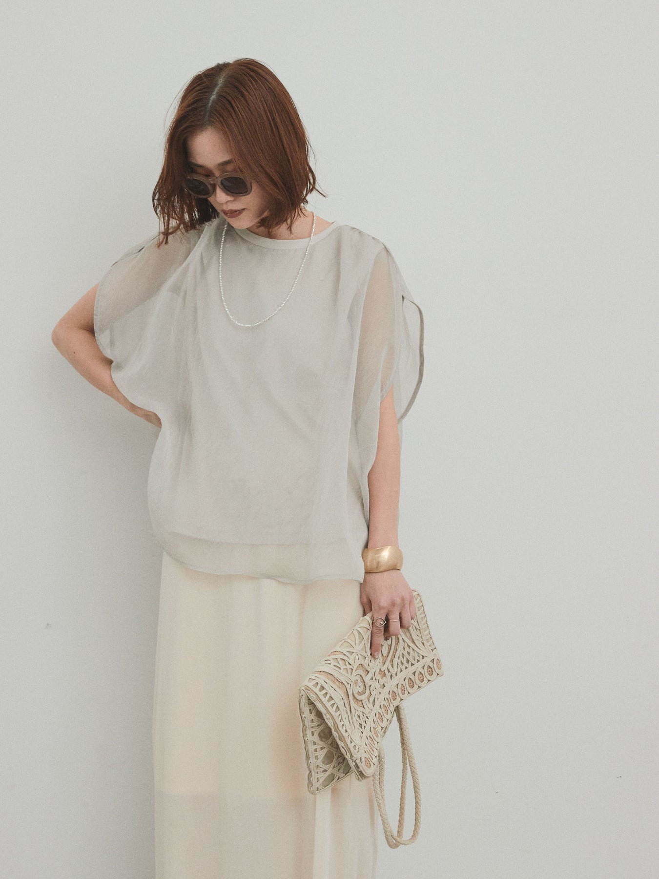 さらっとした肌触りのコンパクトスムース素材に、シアー感のある生地を重ねたレイヤードトップス。透け感のある軽やかな素材が女性らしい抜け感を演出し、インナーとの組み合わせで表情の変化も楽しめます。ややルーズなシルエットでリラクシーな着心地ながら、きちんと感もある上品な仕上がり。パンツやスカートはもちろん、ジャンスカやキャミワンピのインナーとしてもおすすめです。シーズンレスに活躍する、着回し力抜群の一着。 ※ボトムス、キャミソール(インナー)以外の商品は一律でインナーは付属していません。