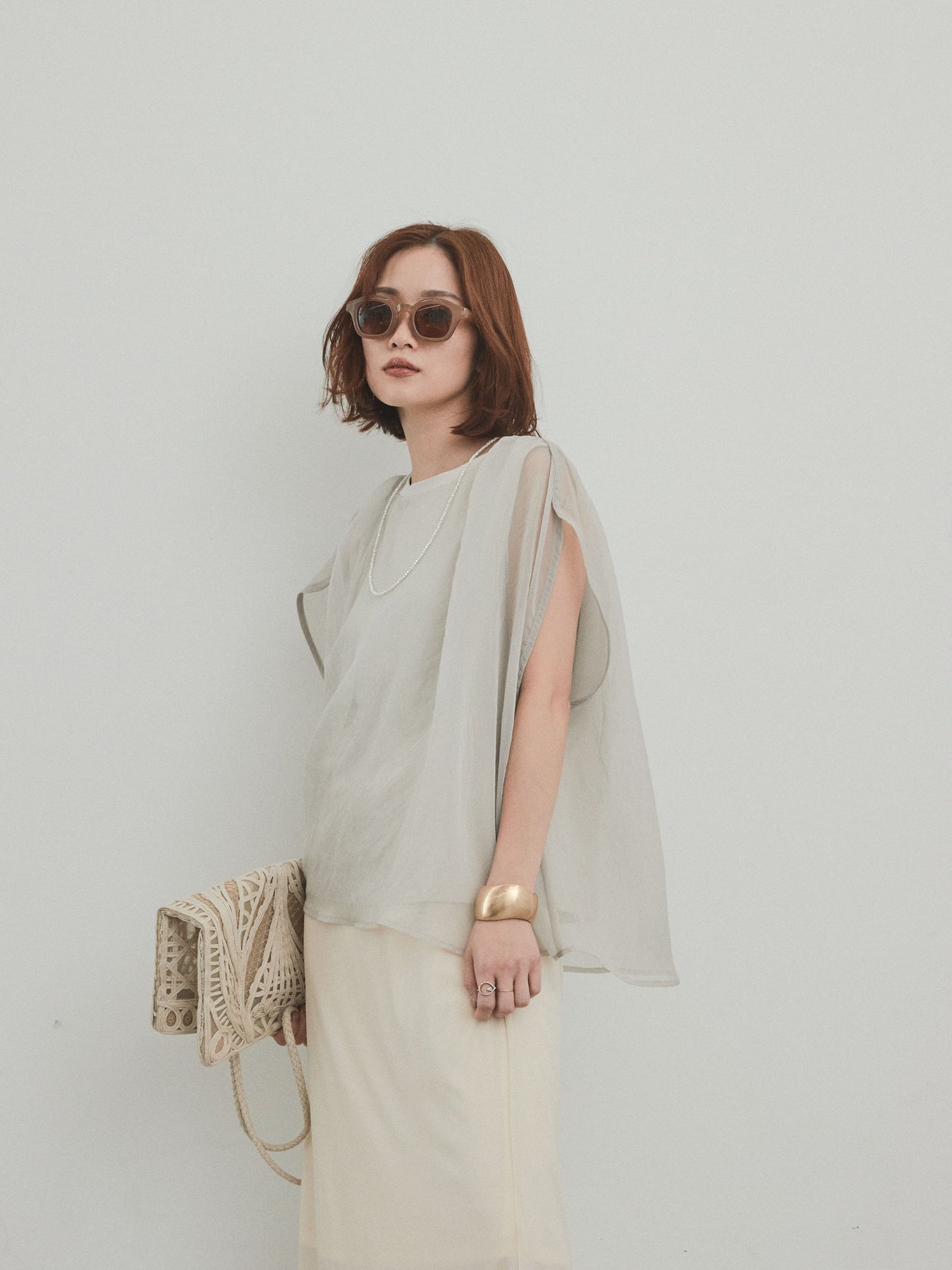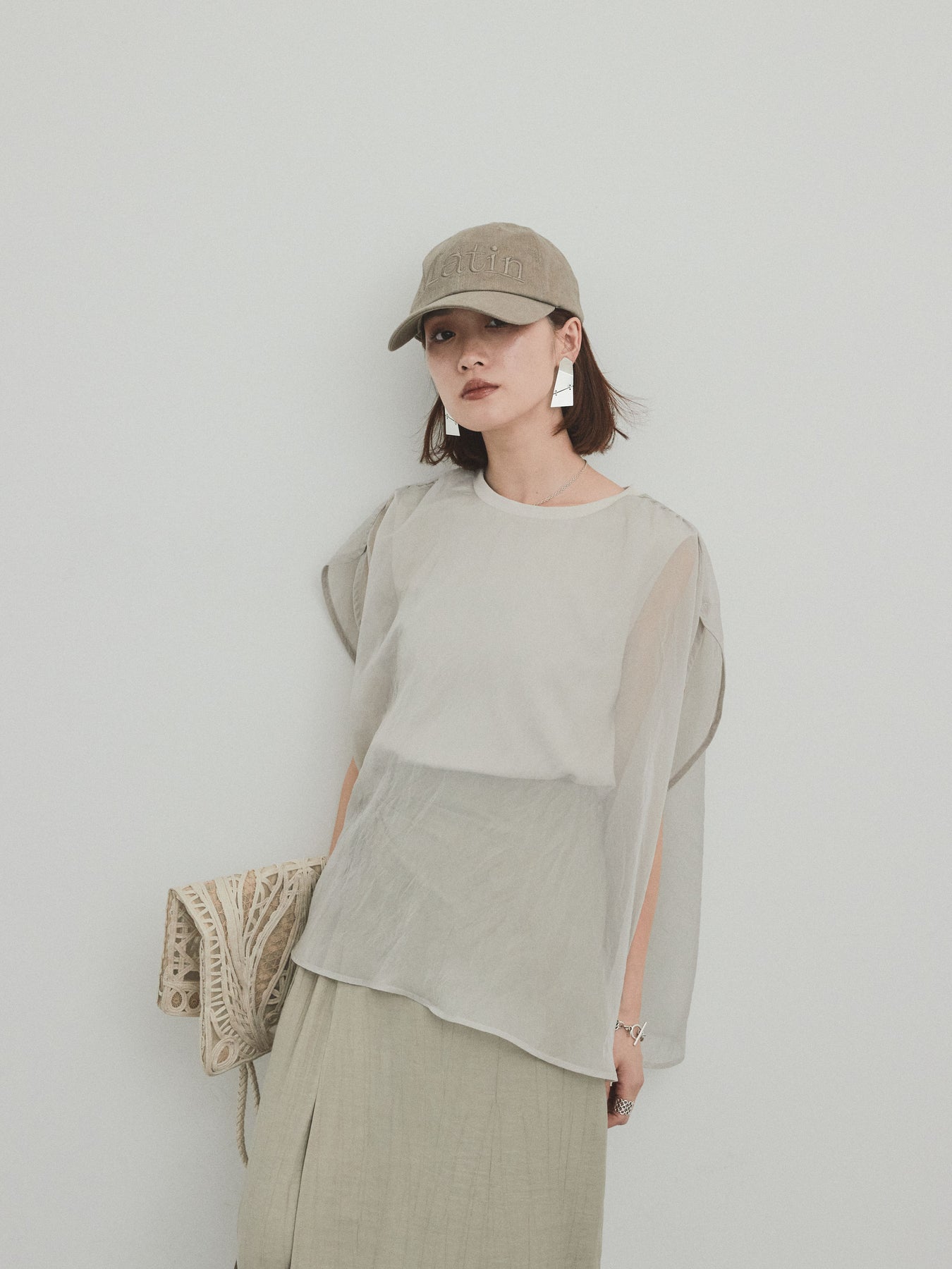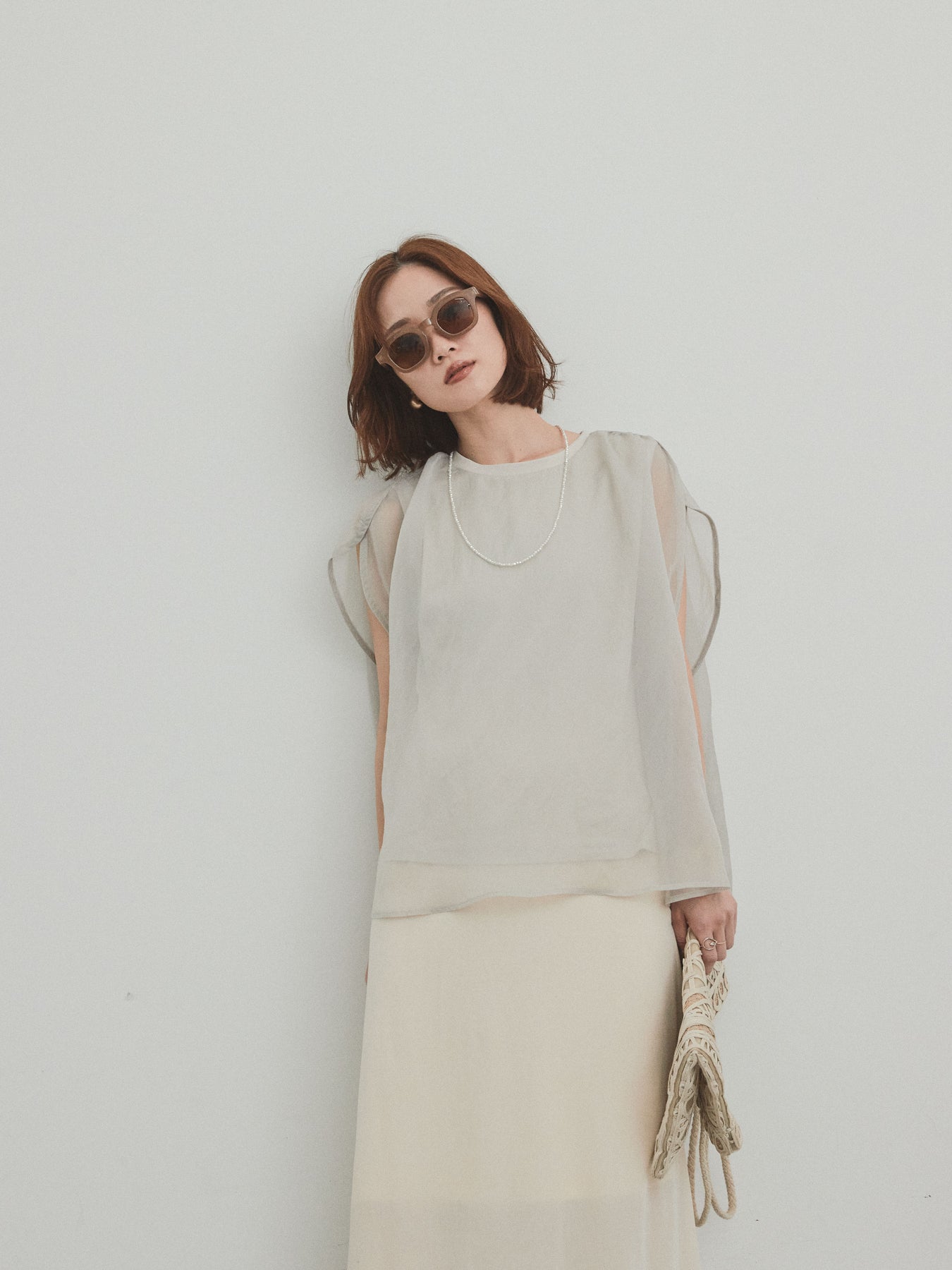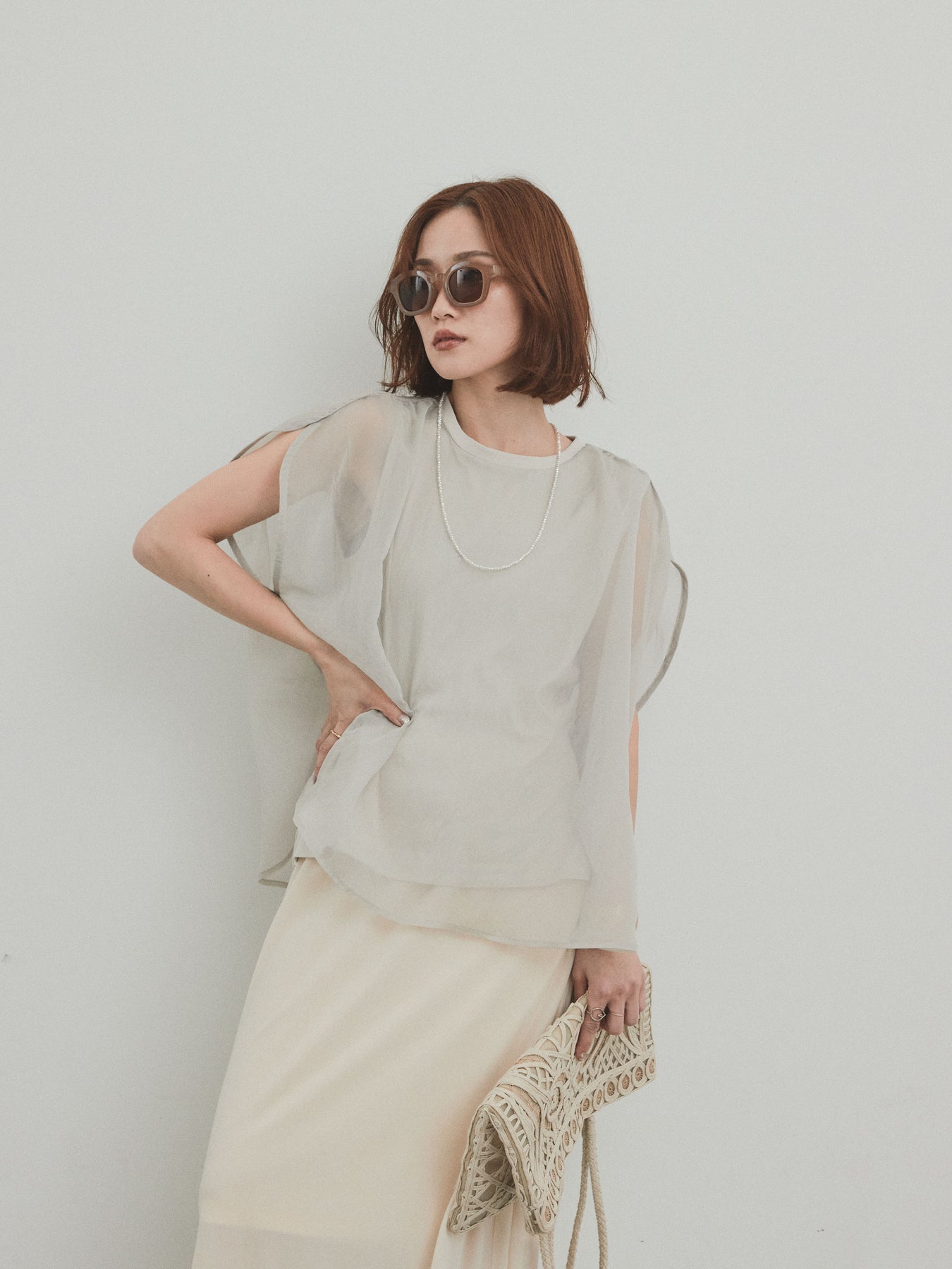 [予約]コンパクトスムースシアーレイヤードトップス/グレージュ