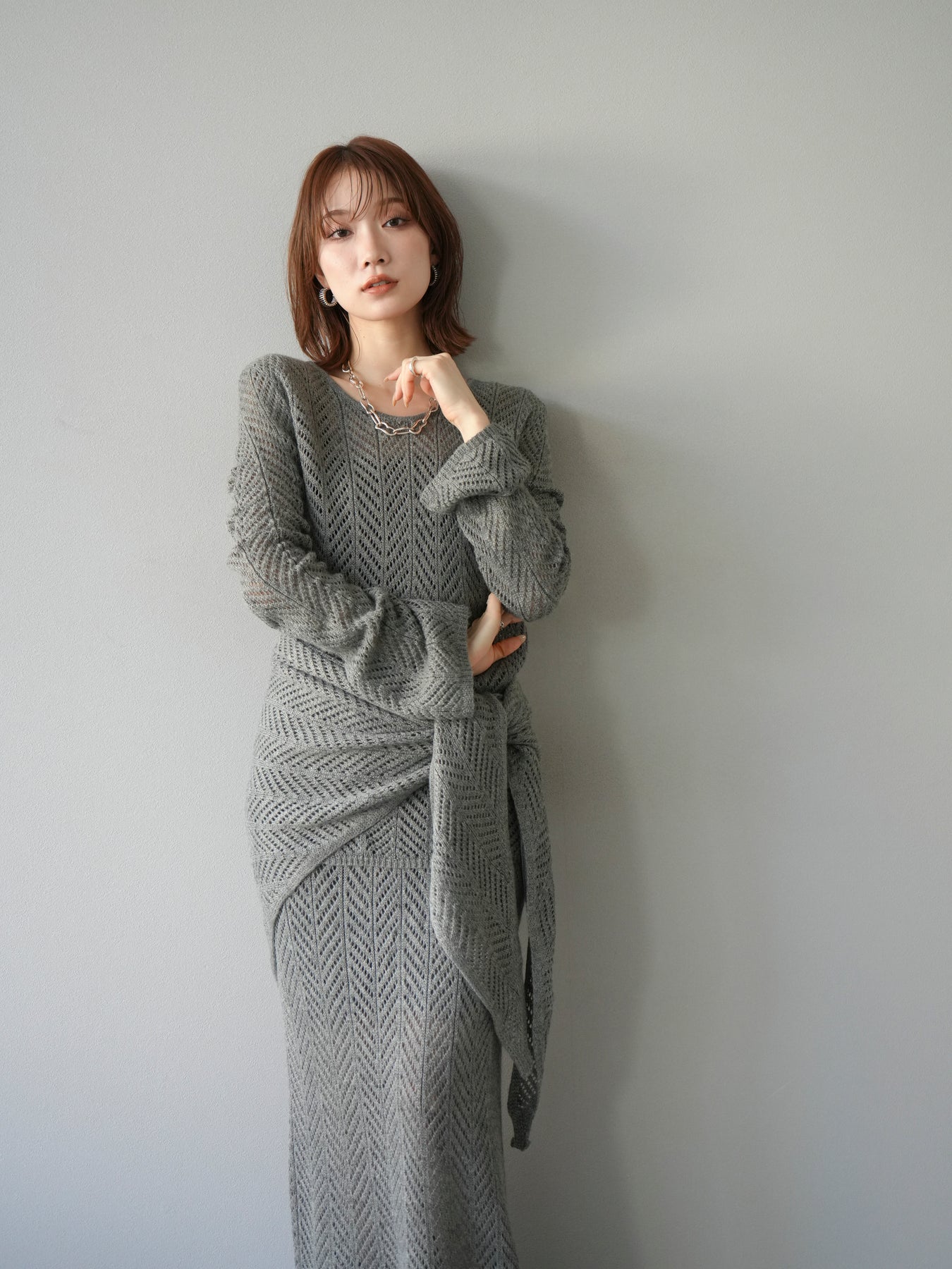 繊細な透かし編みで仕上げたニットスカーフ。軽やかな素材感でありながら、編地の立体感がスタイリングに奥行きをプラスしてくれます。首元にさらりと巻くだけでシーズンムードを高め、コーディネートのアクセントとして活躍。コンパクトに折りたたんで持ち運びしやすく、肌寒い時の羽織りやストール感覚としても使える万能アイテムです。シンプルな装いにプラスするだけで、洗練された雰囲気を演出します。