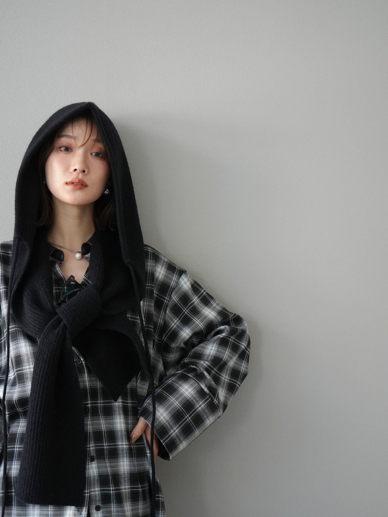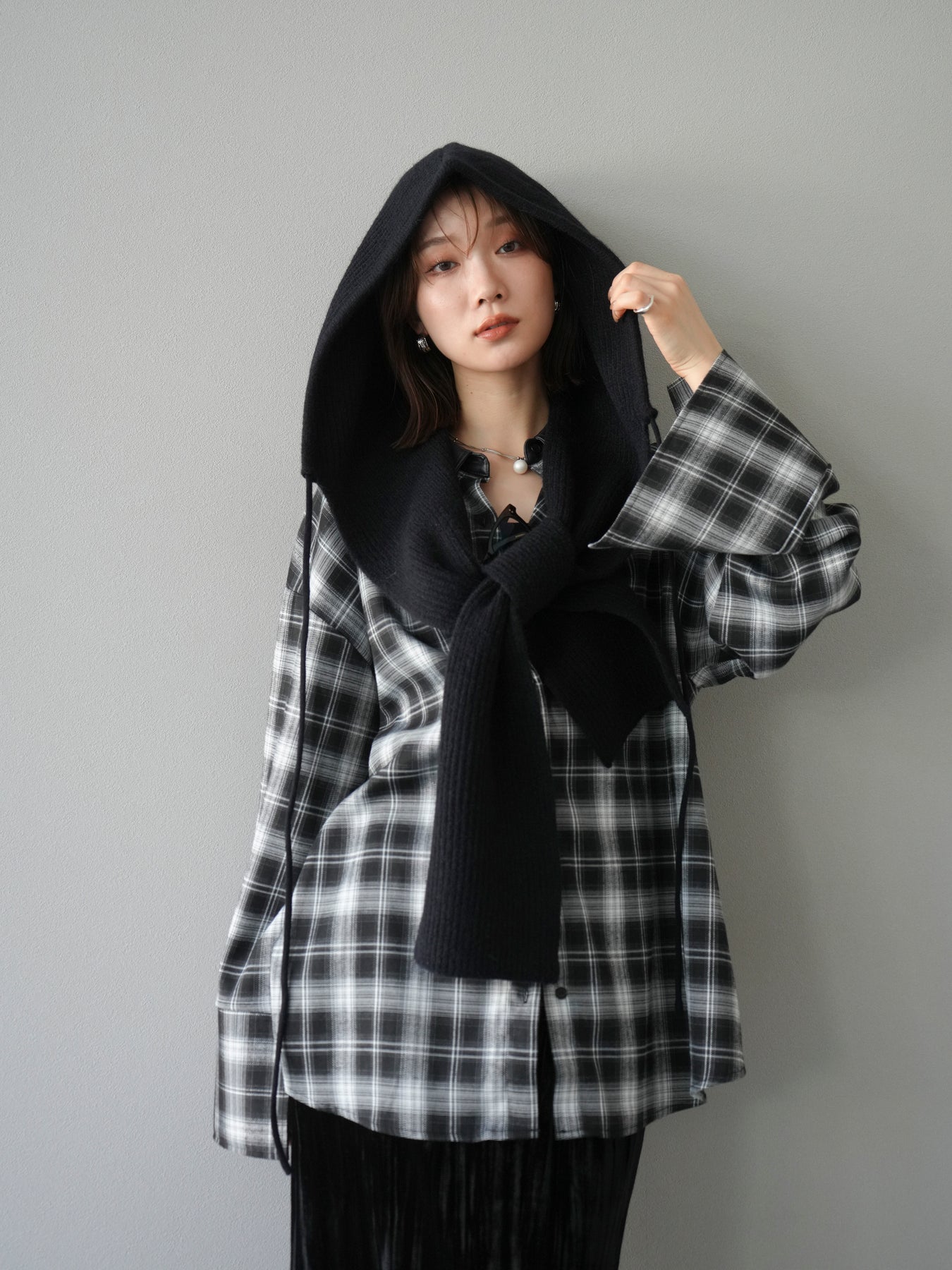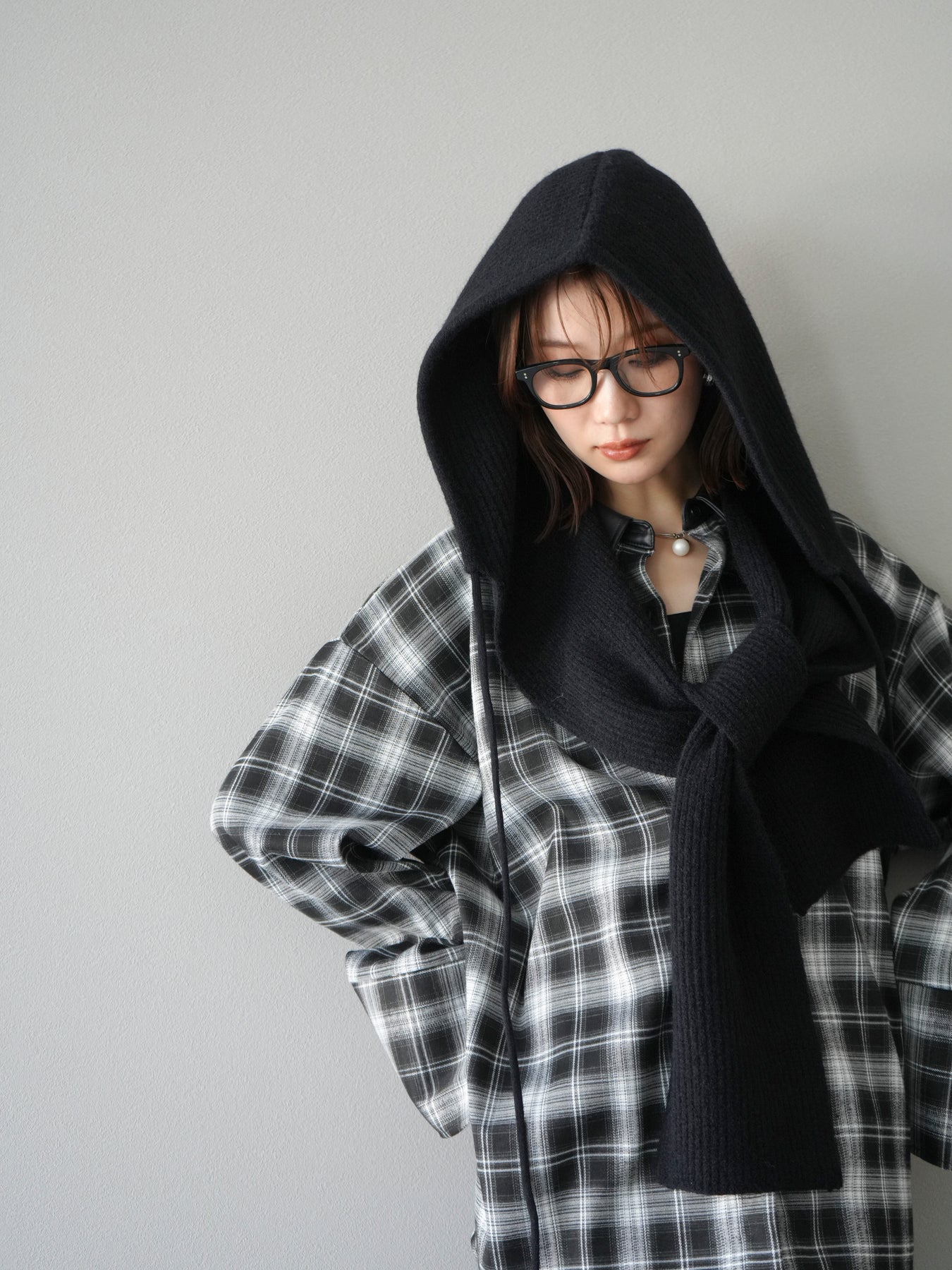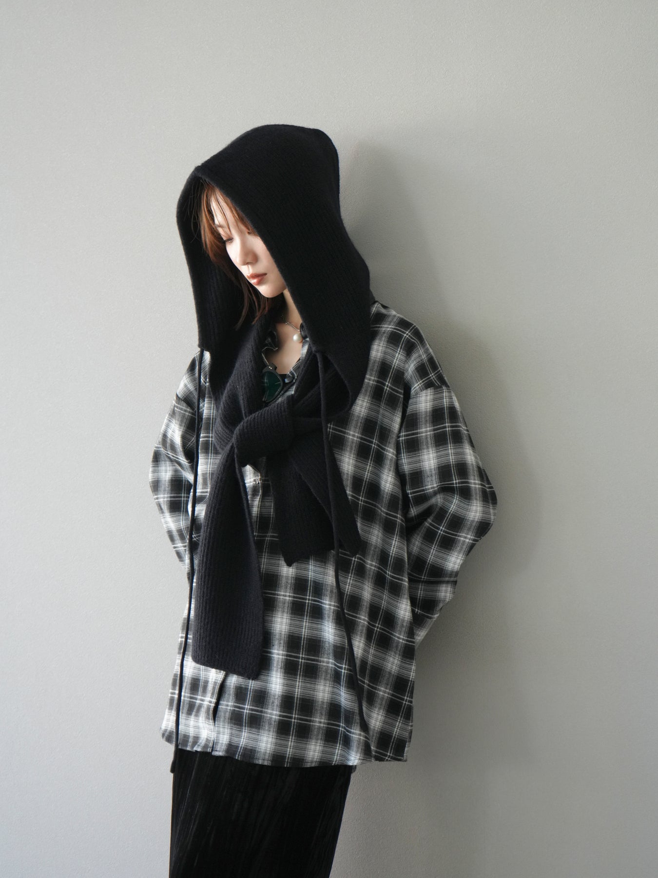 [予約]フードニットマフラー/ブラック