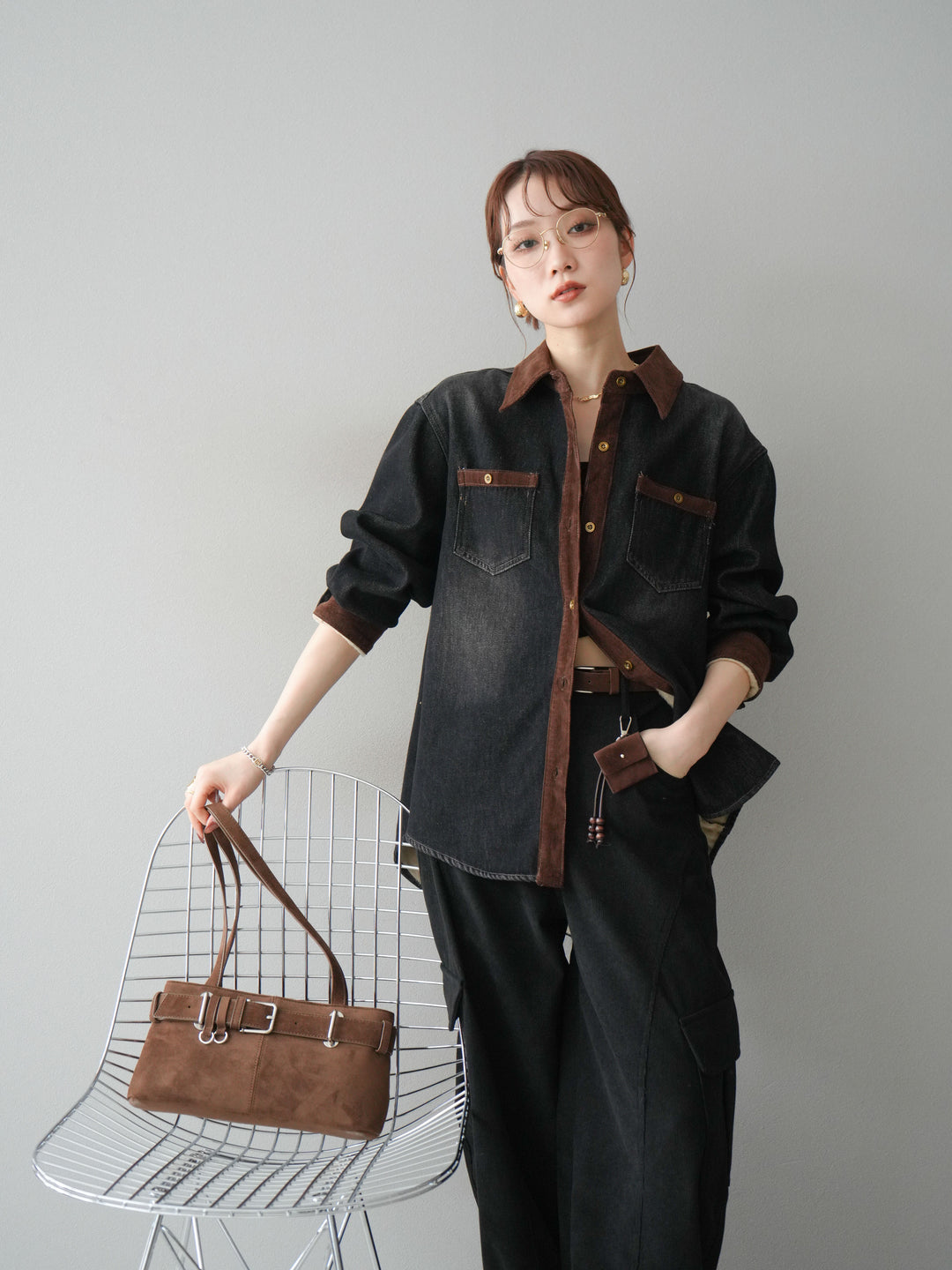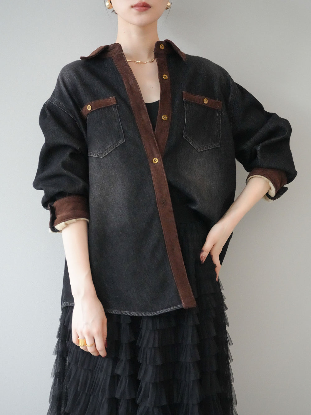 [予約]裏起毛コーデュロイ襟デニムシャツジャケット/black