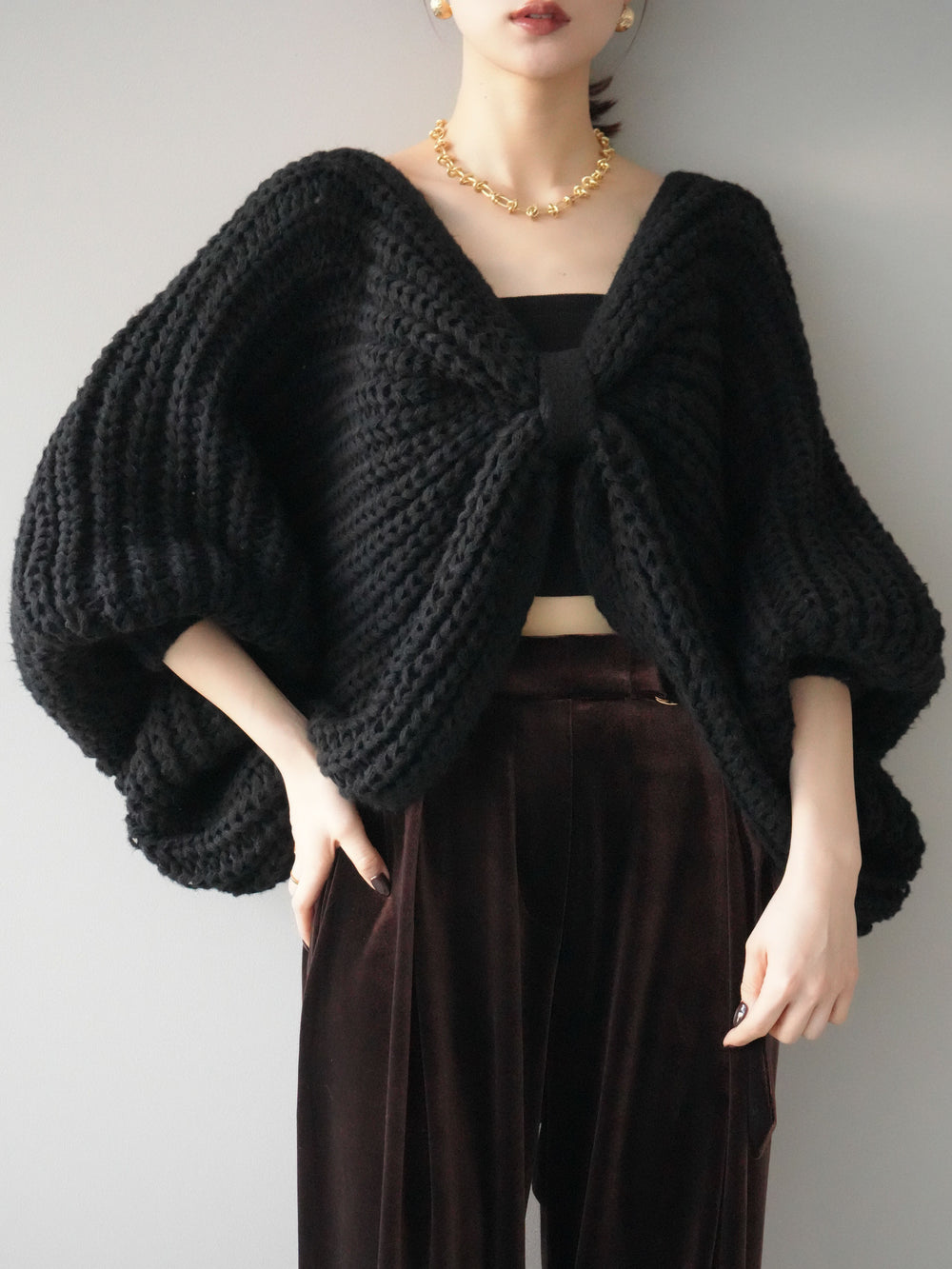 [予約]ローゲージ畦編みドルマンニットボレロ/black