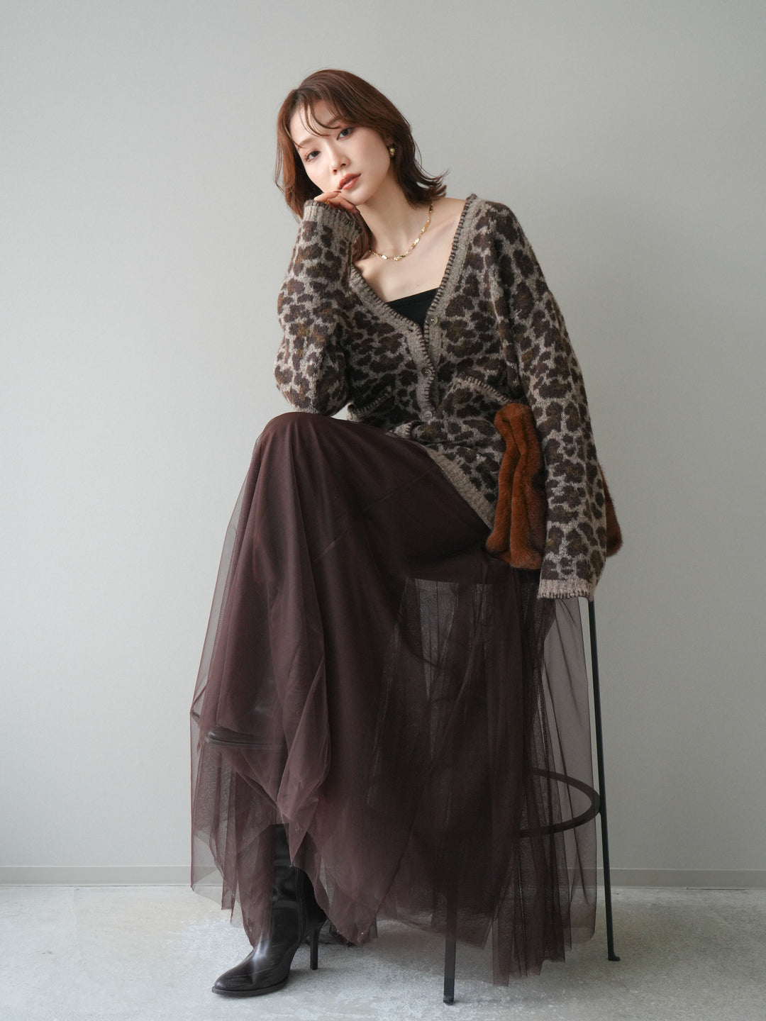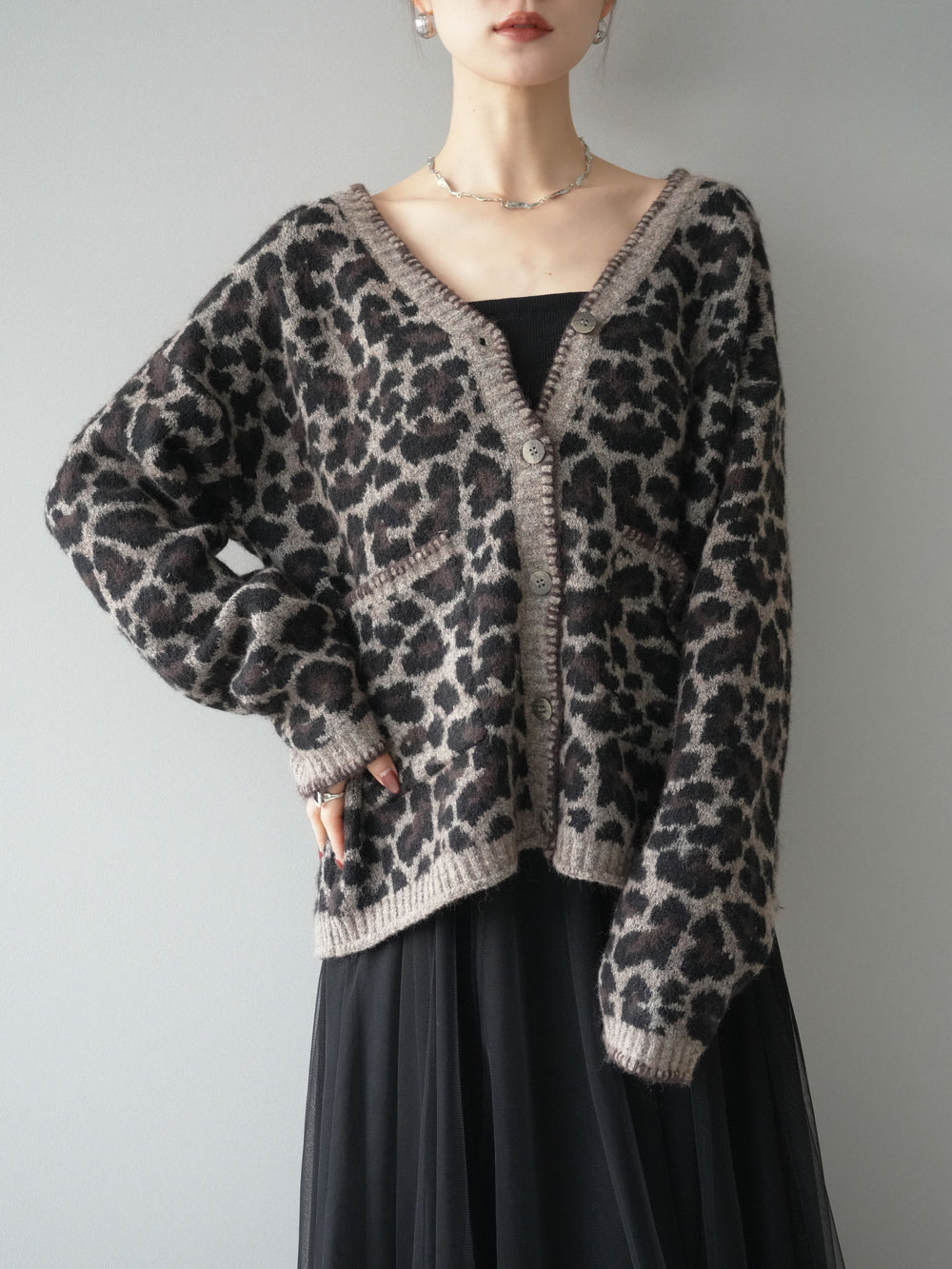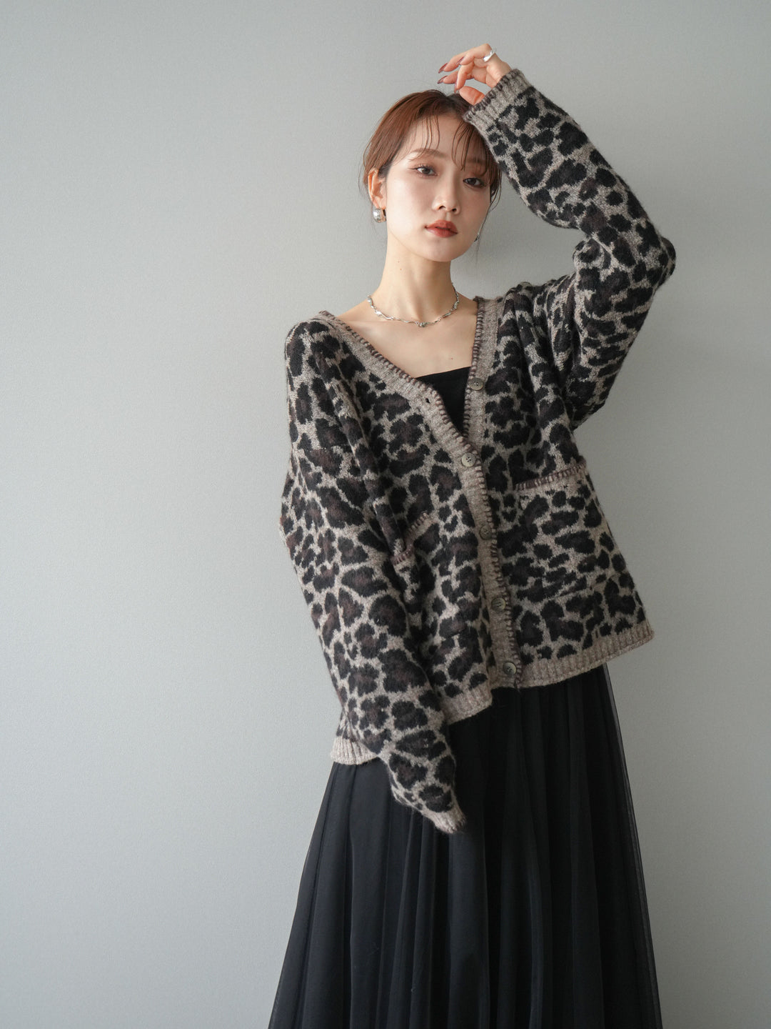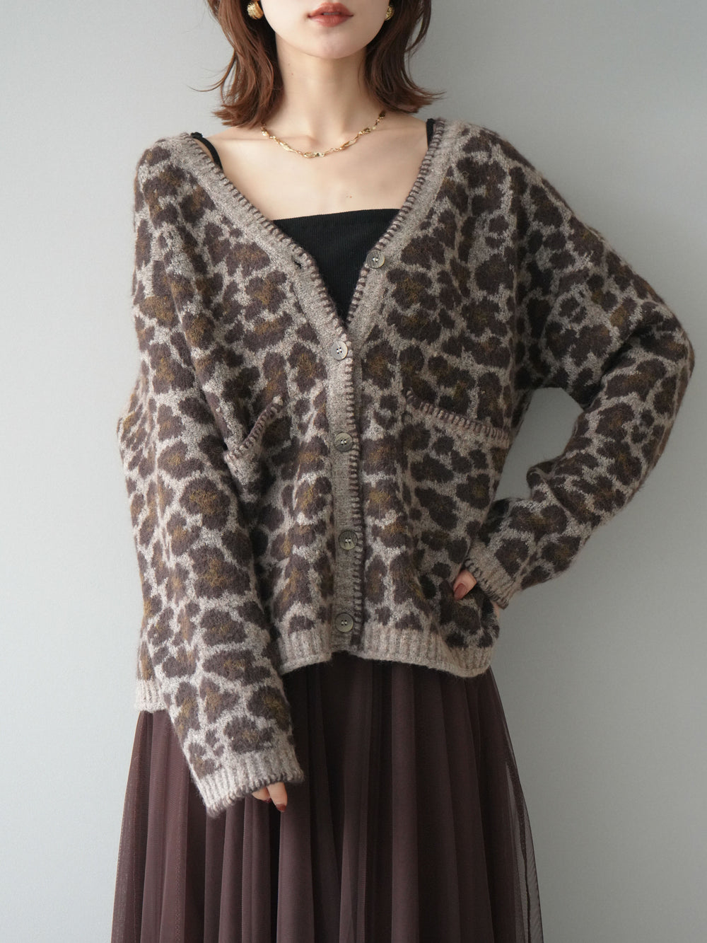 [予約]アニマル柄ステッチニットカーディガン/brown