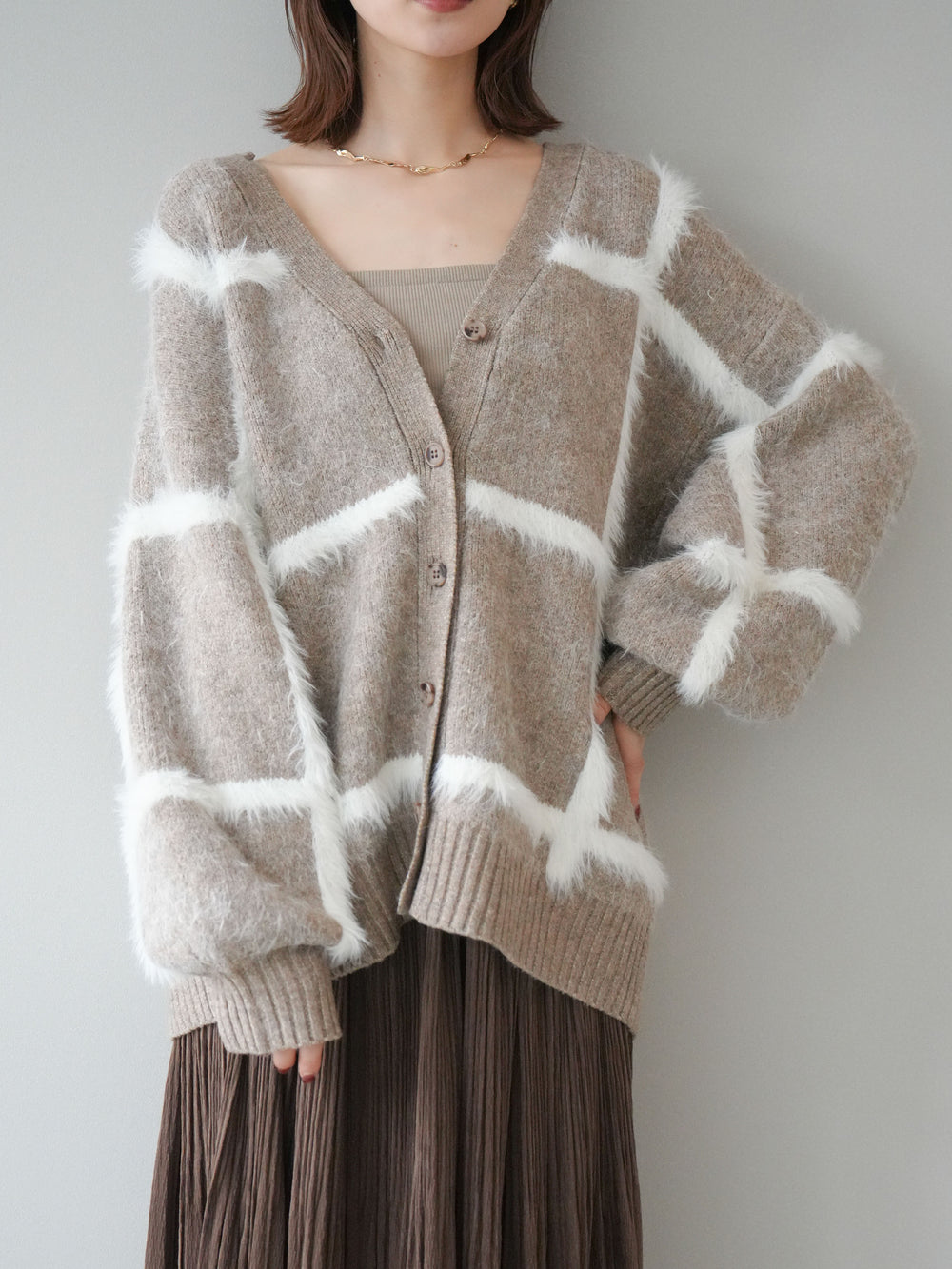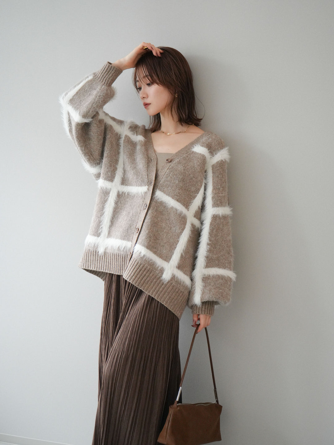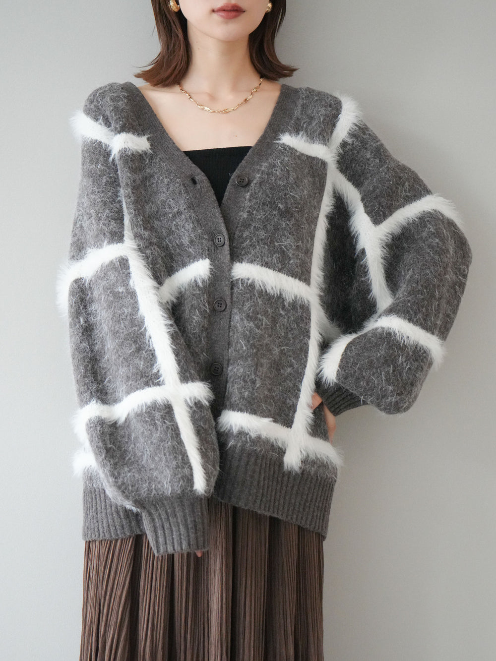 [予約]ミックスシャギーチェックカーディガン/charcoal