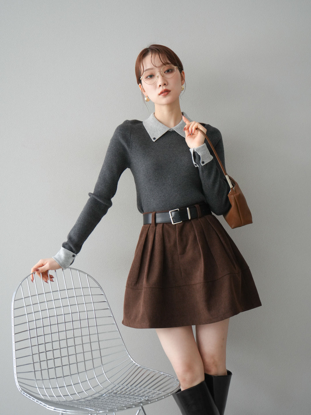 [予約]ニットカフス襟付き配色リブニットトップス/charcoal