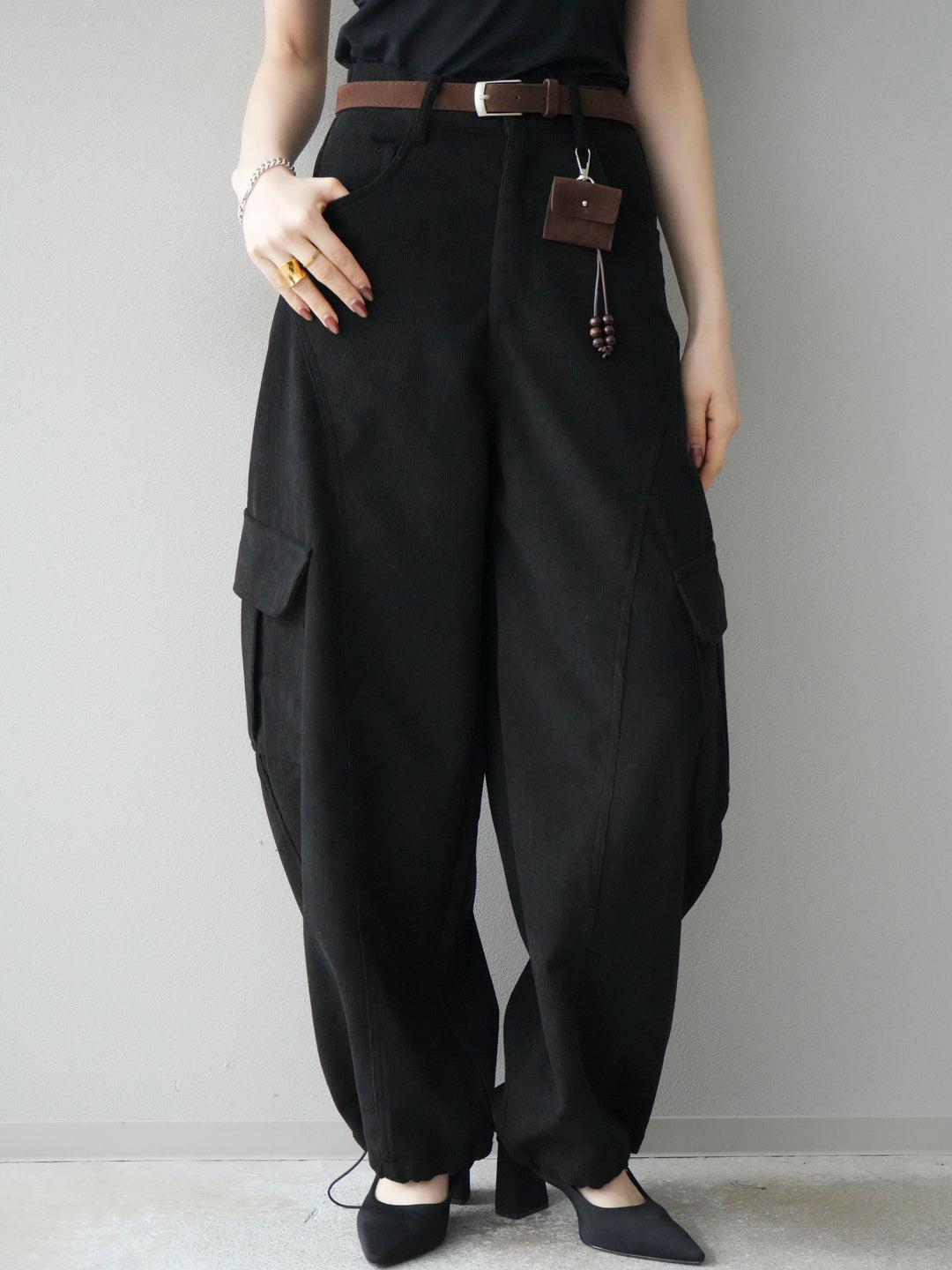 [予約]ベルト付コーデュロイカーゴパンツ/black