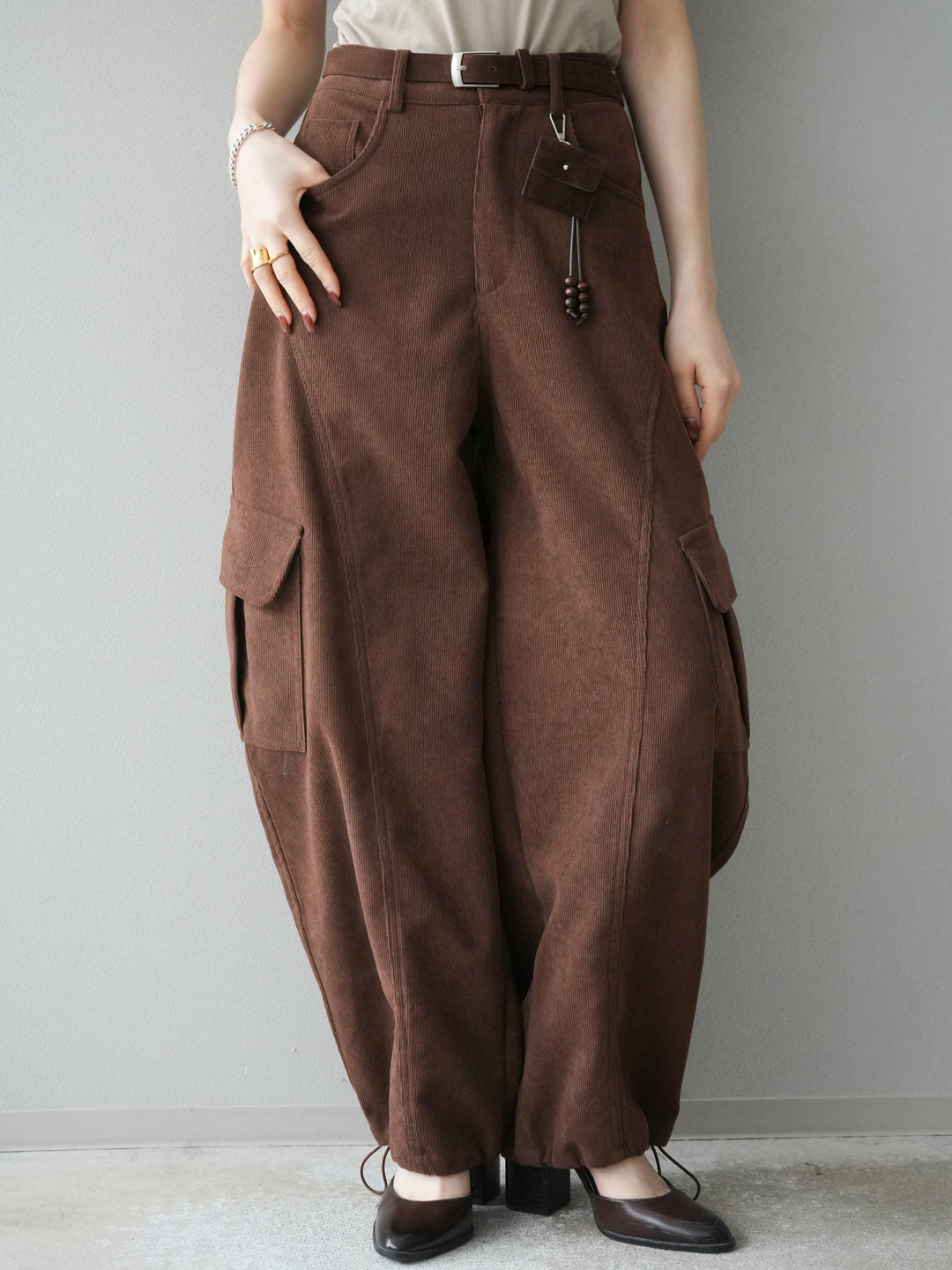 [予約]ベルト付コーデュロイカーゴパンツ/brown