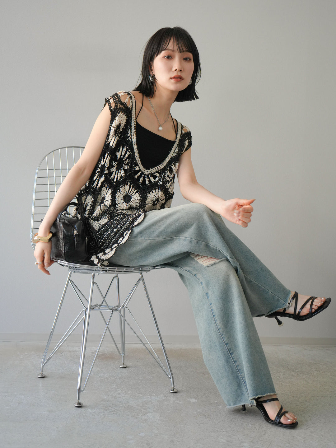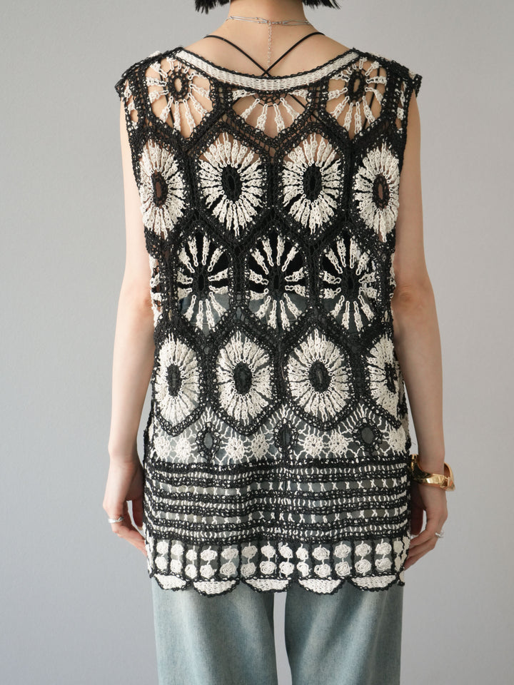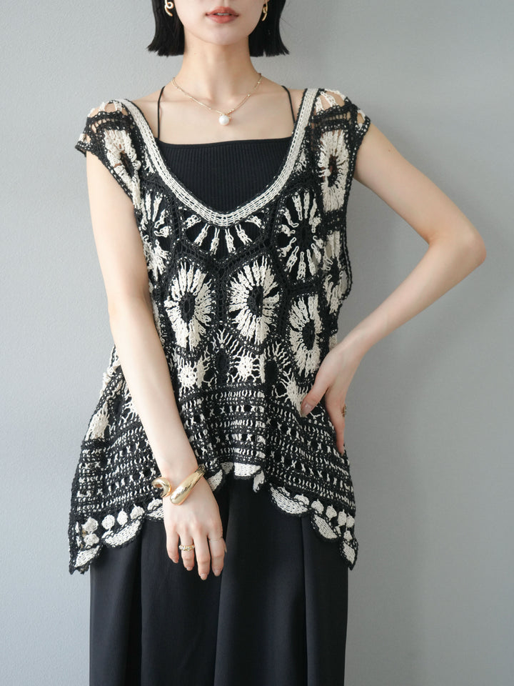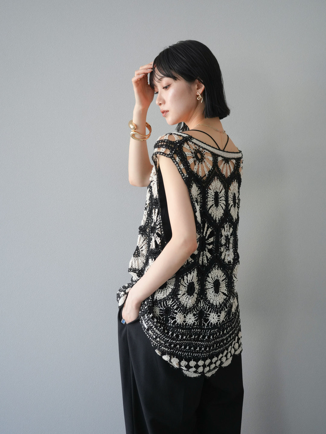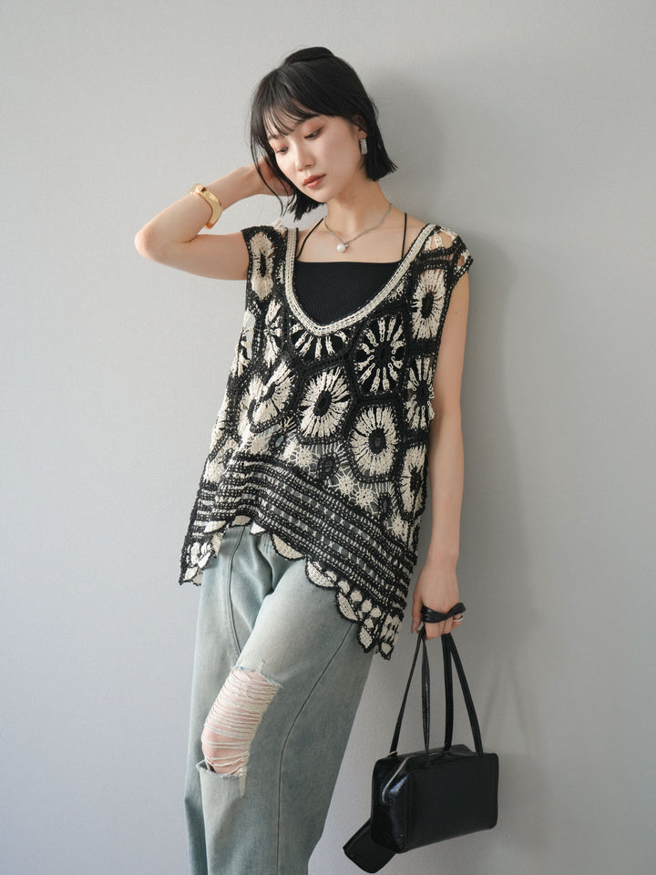 [予約]クロシェVネックオーバーベスト/Aブラック