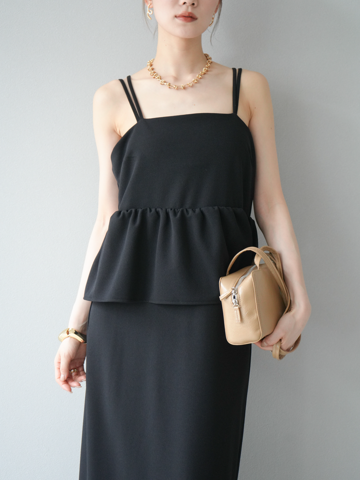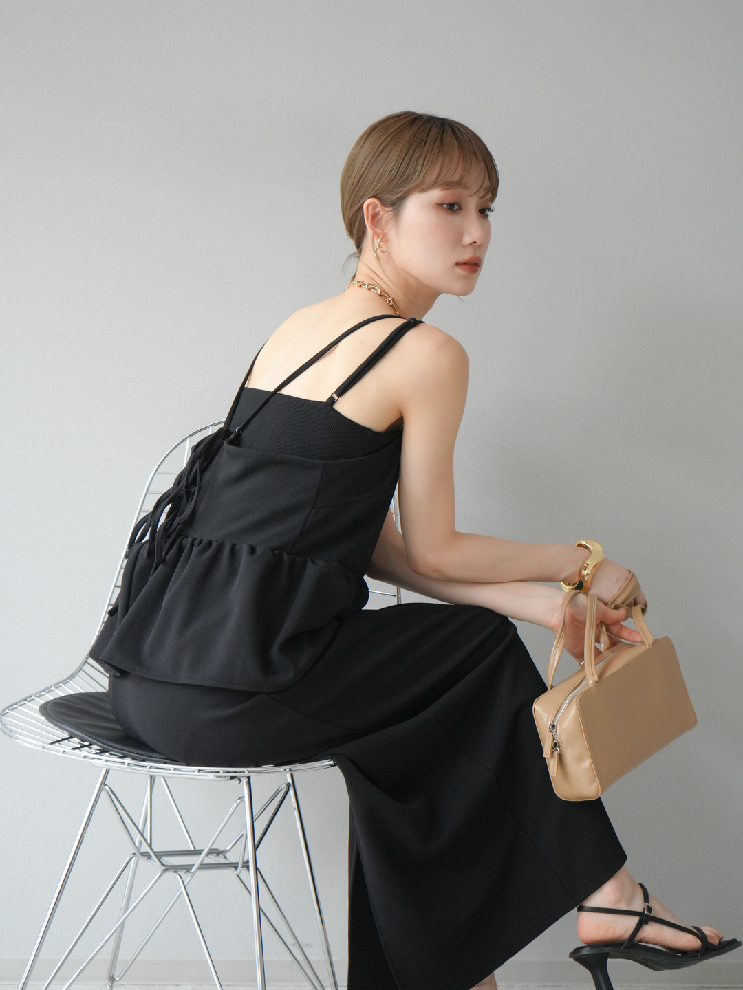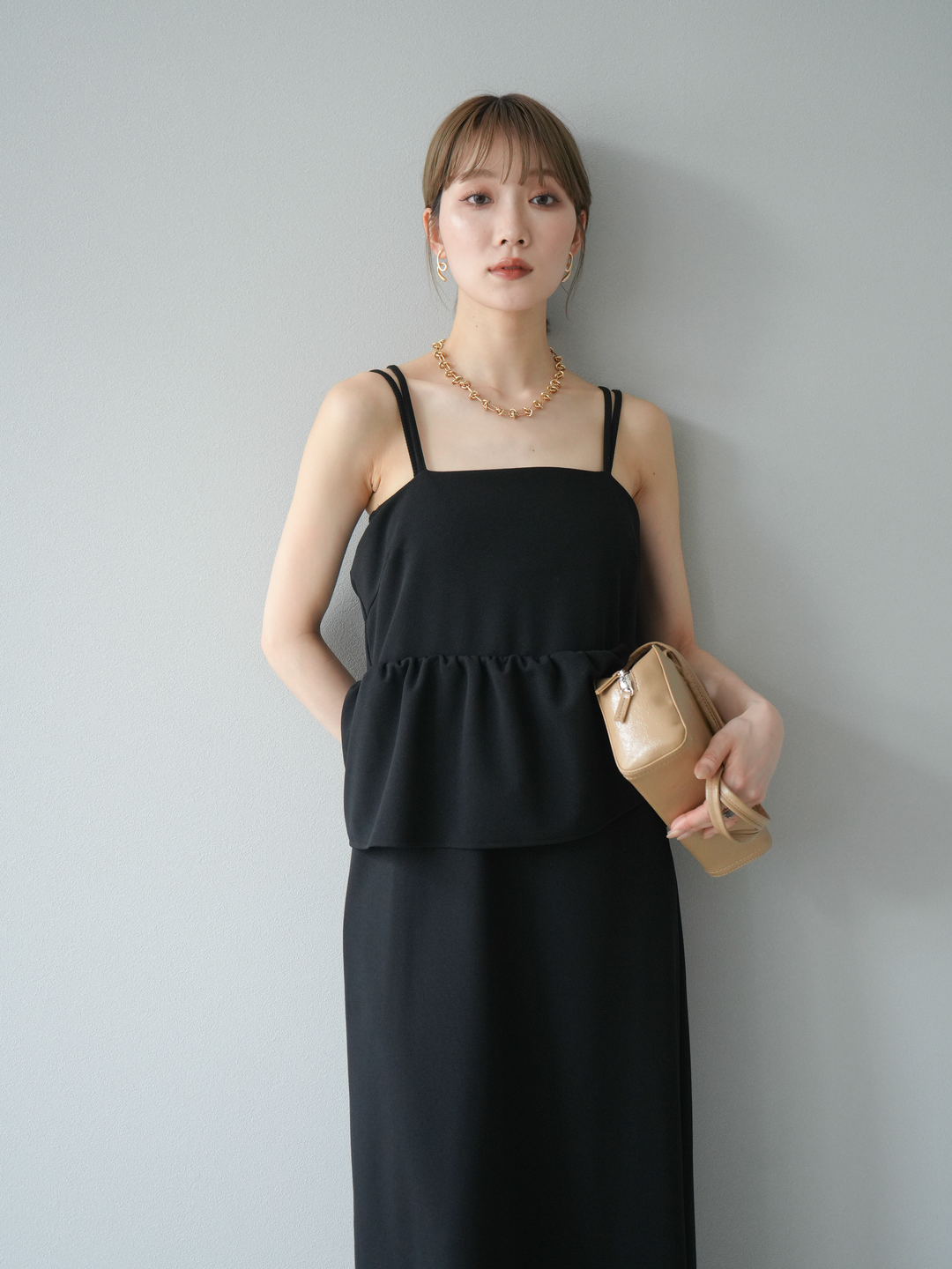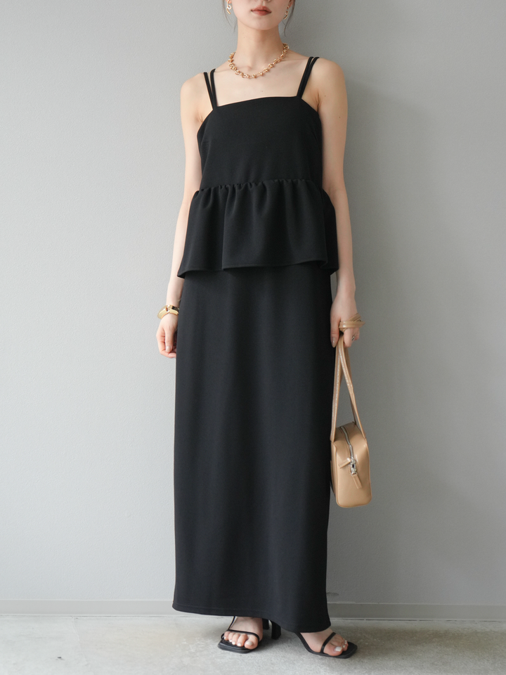 [予約]ぺプラムレイヤードデザインキャミワンピース/ブラック