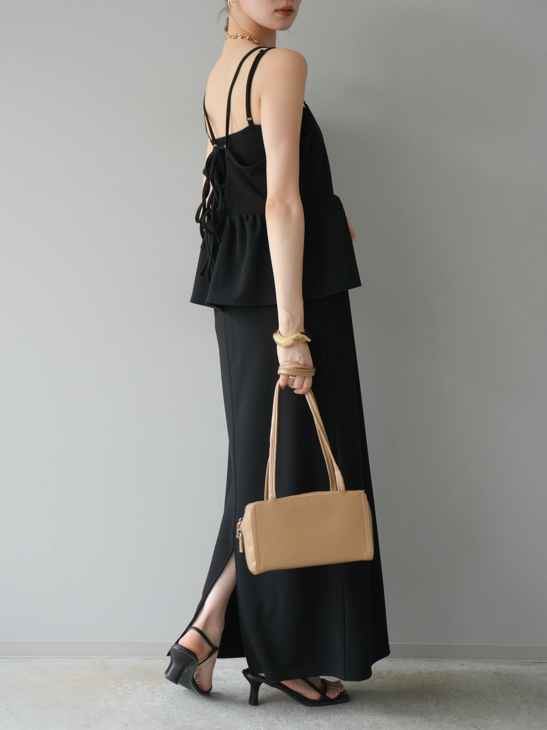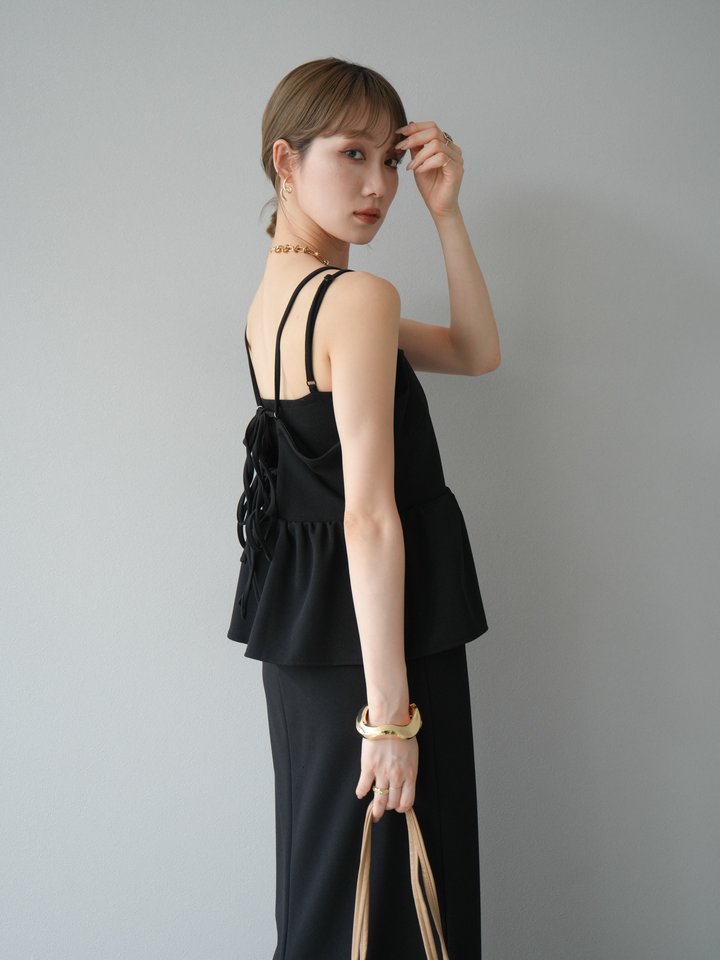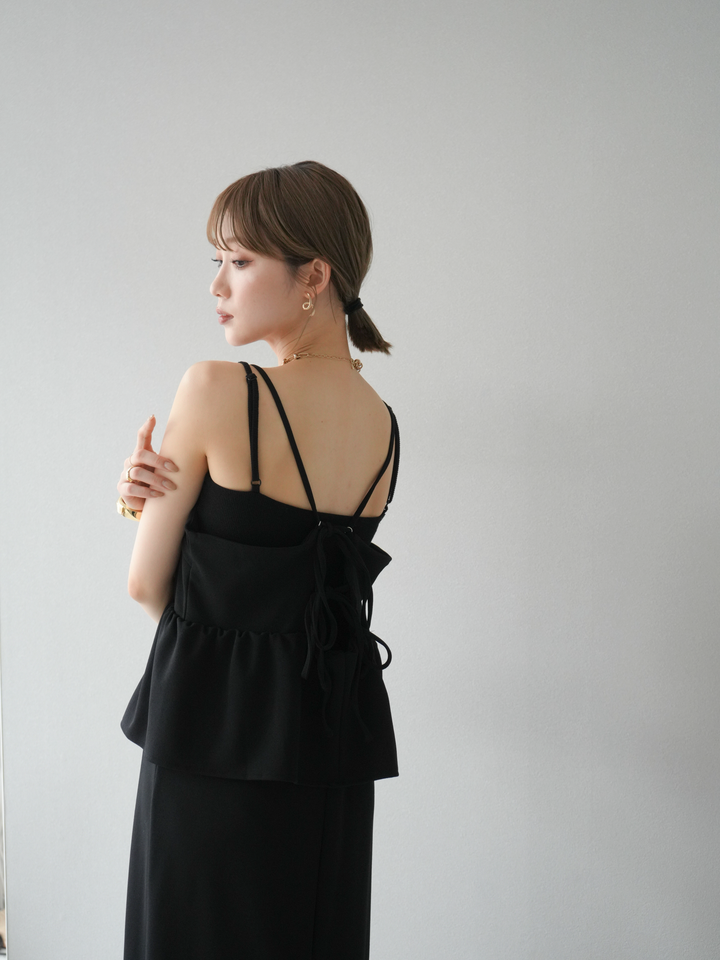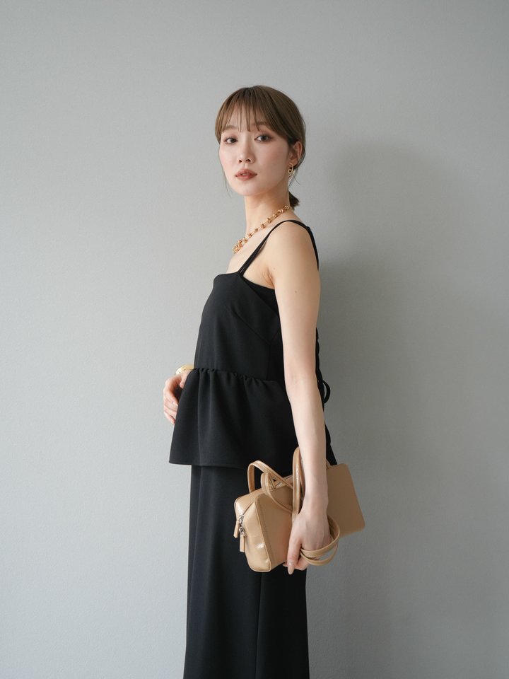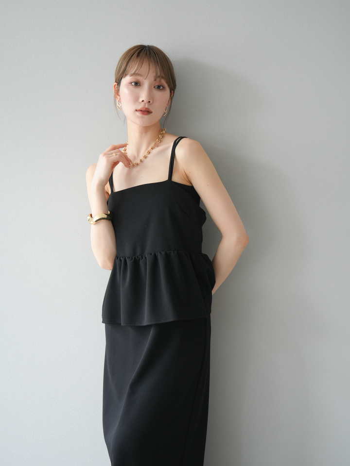 [予約]ぺプラムレイヤードデザインキャミワンピース/ブラック