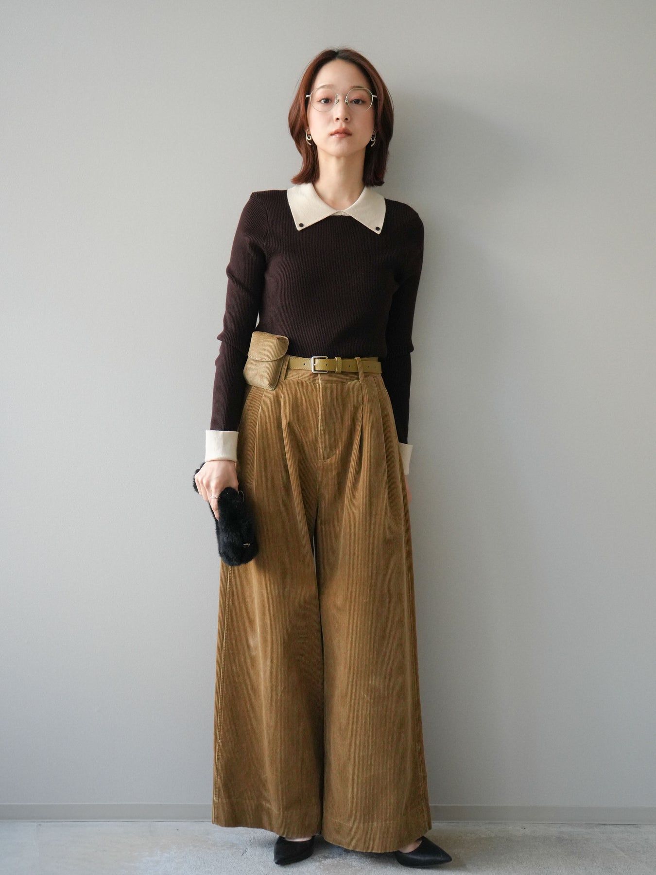 [予約]ベルト付コーデュロイワイドパンツに関連する商品を探す↓