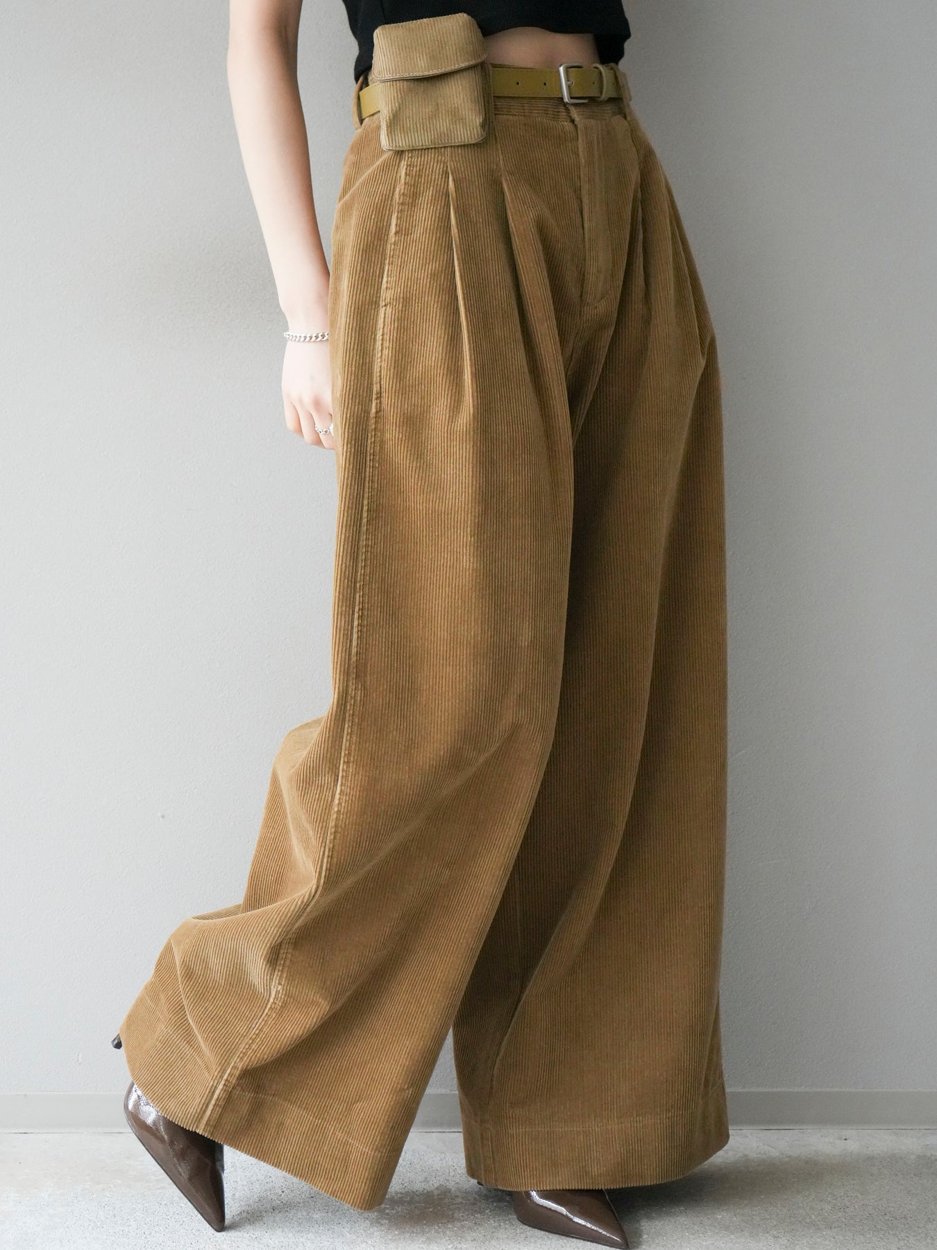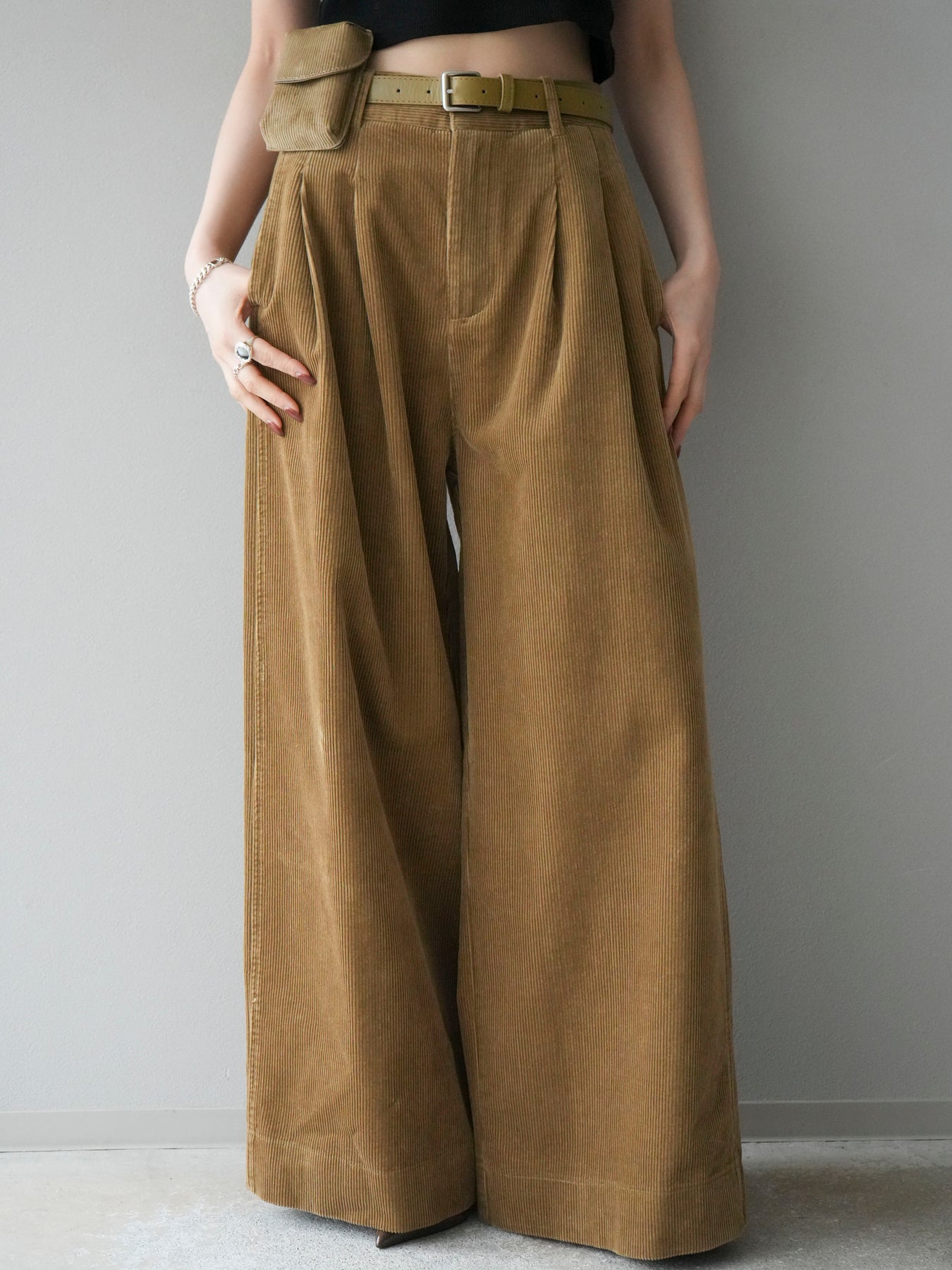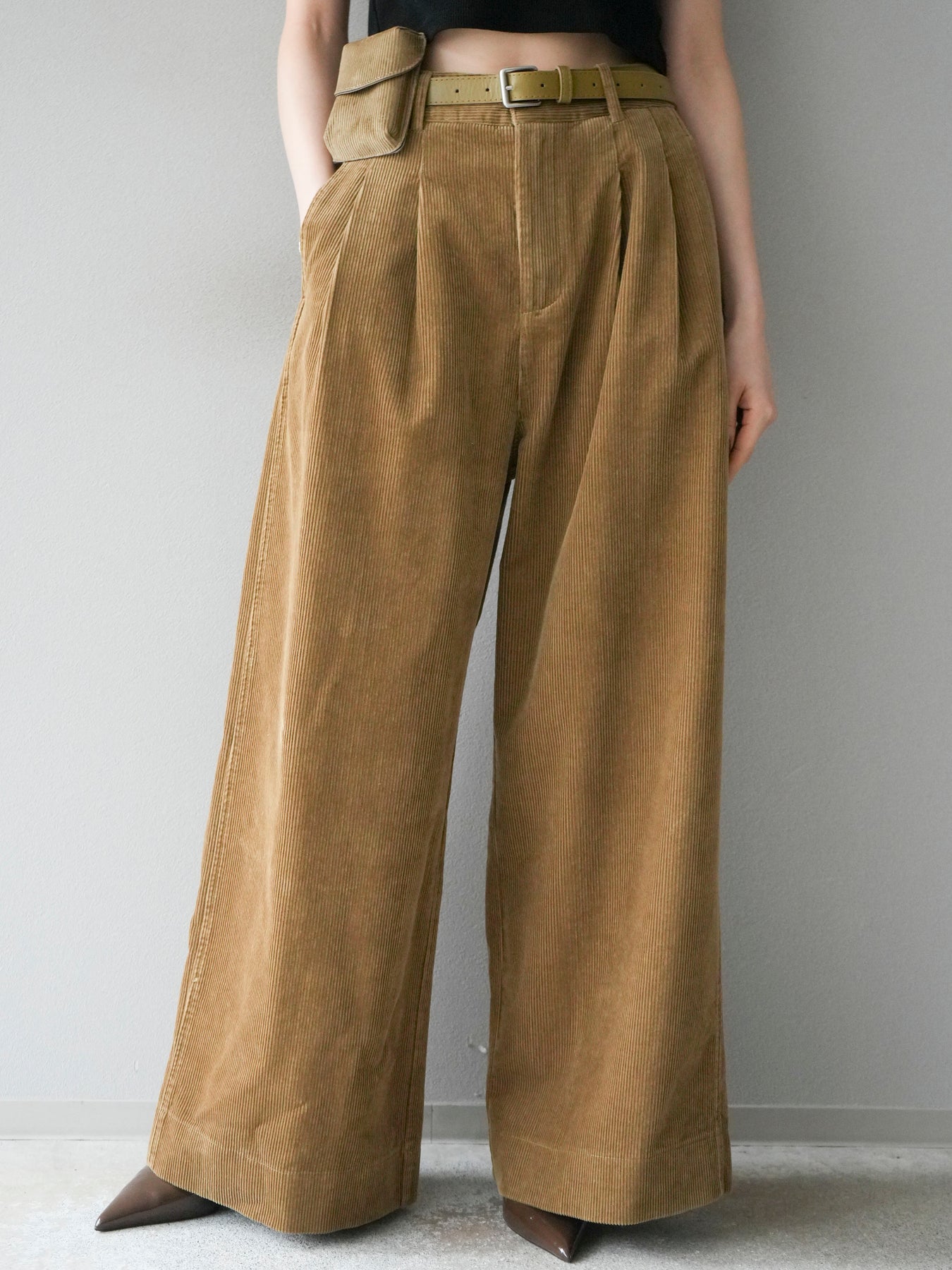 [予約]ベルト付コーデュロイワイドパンツ/beige