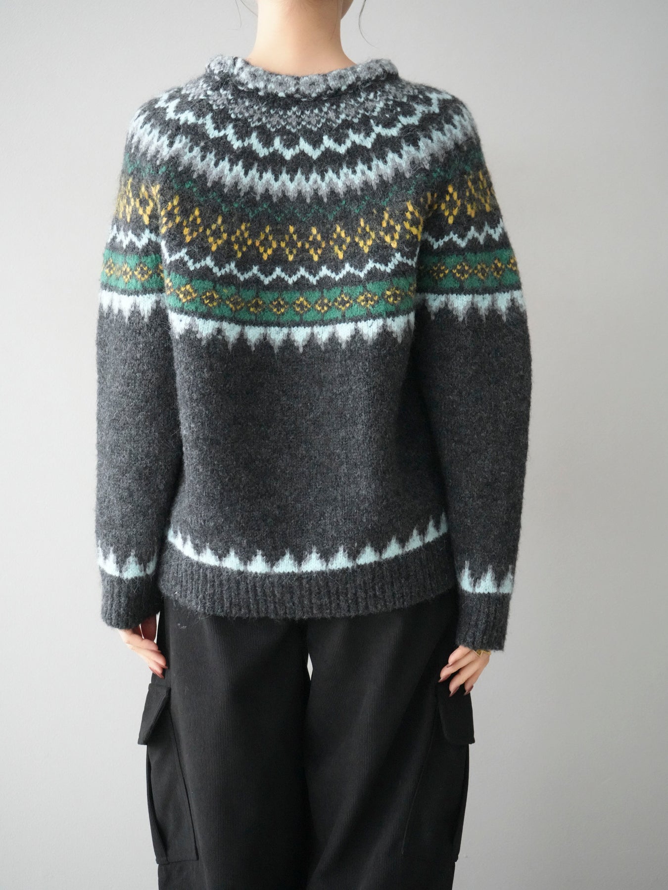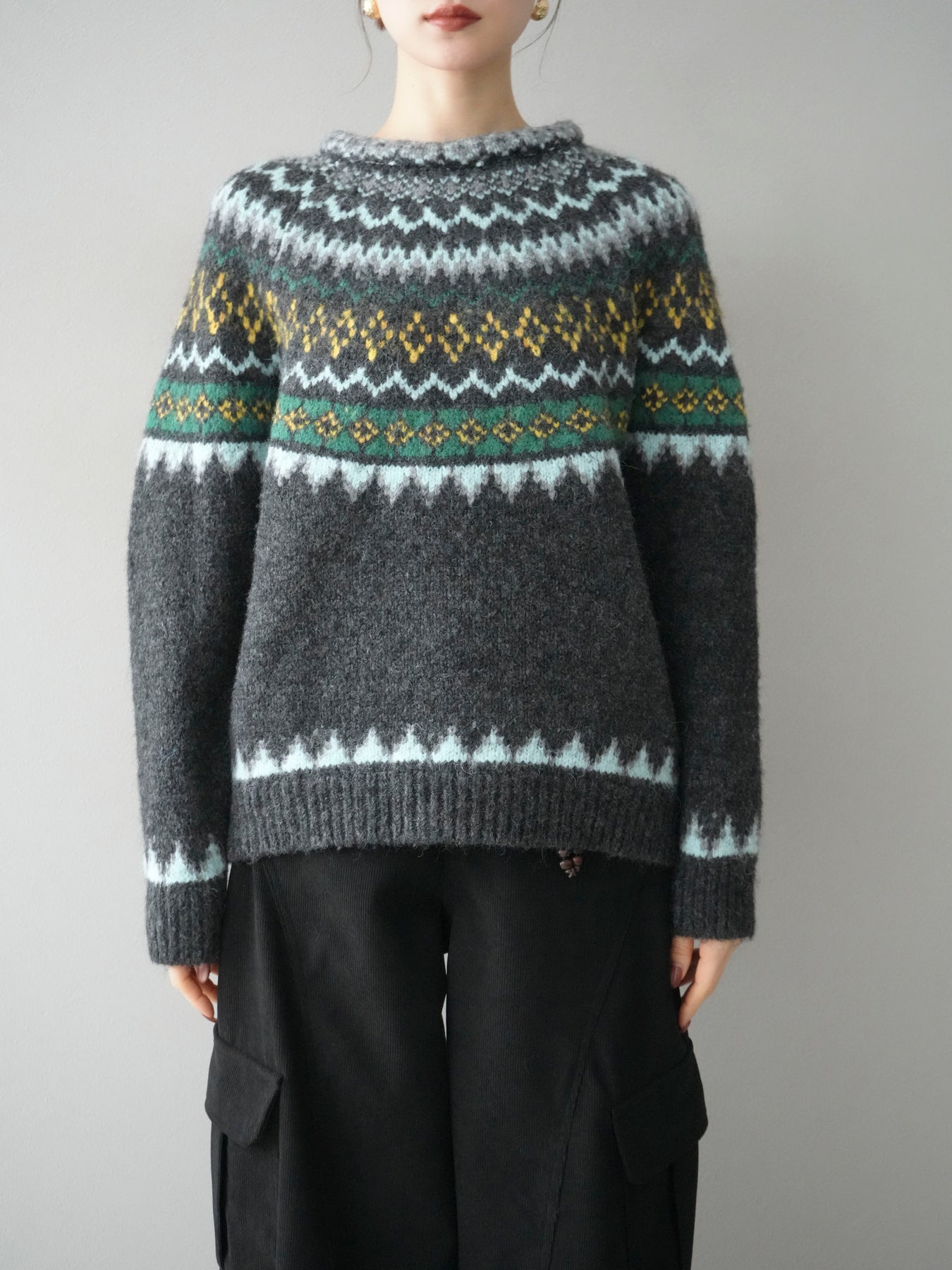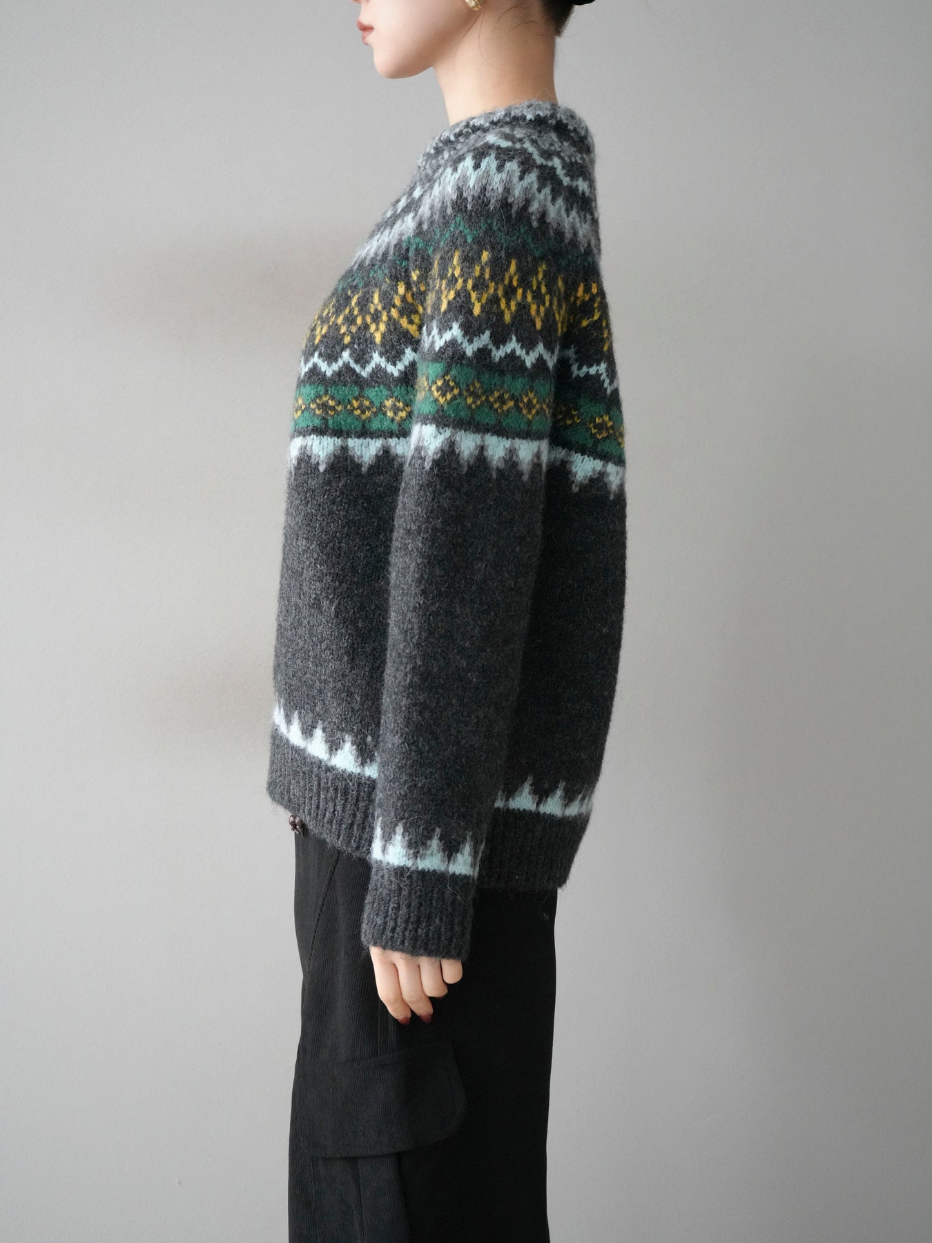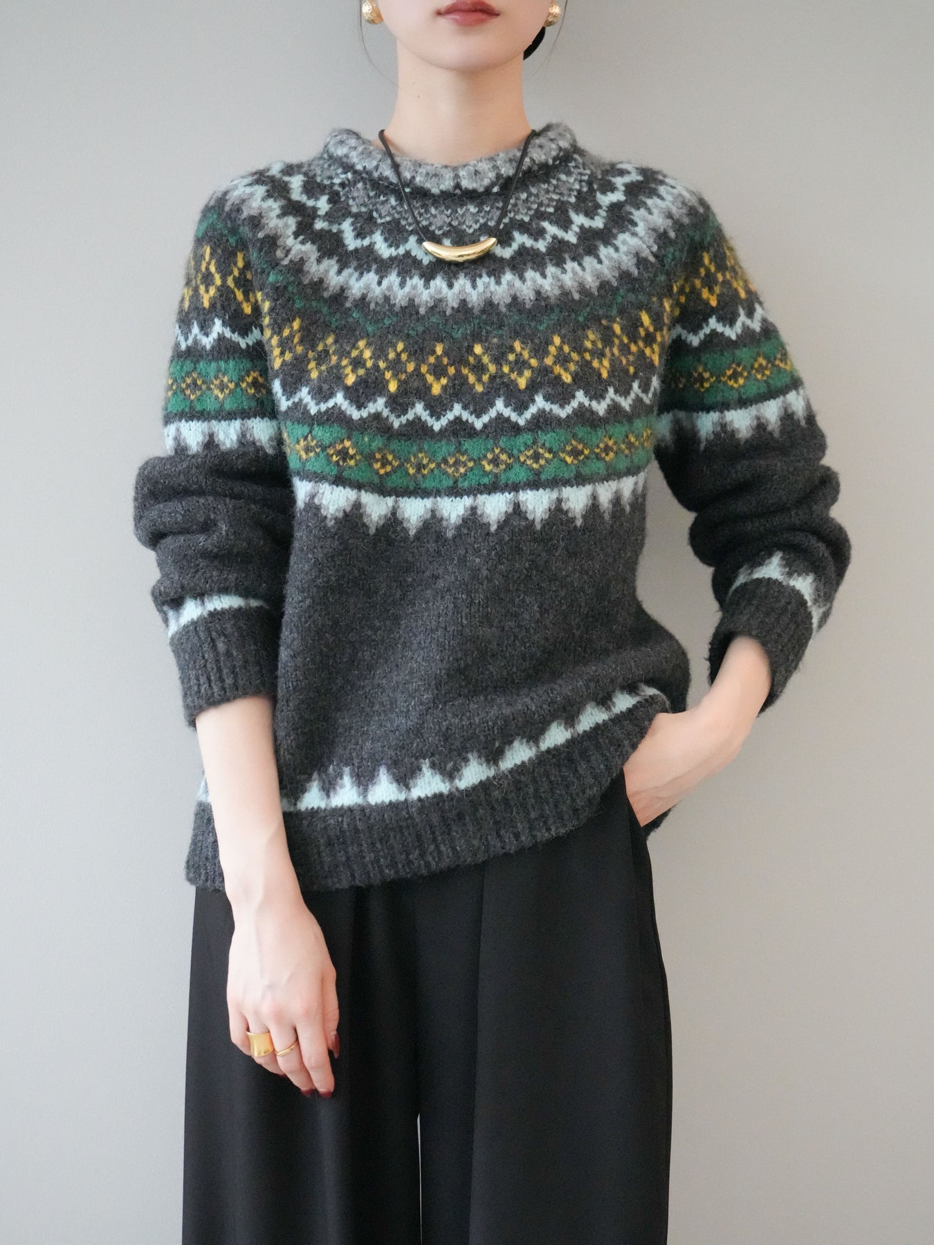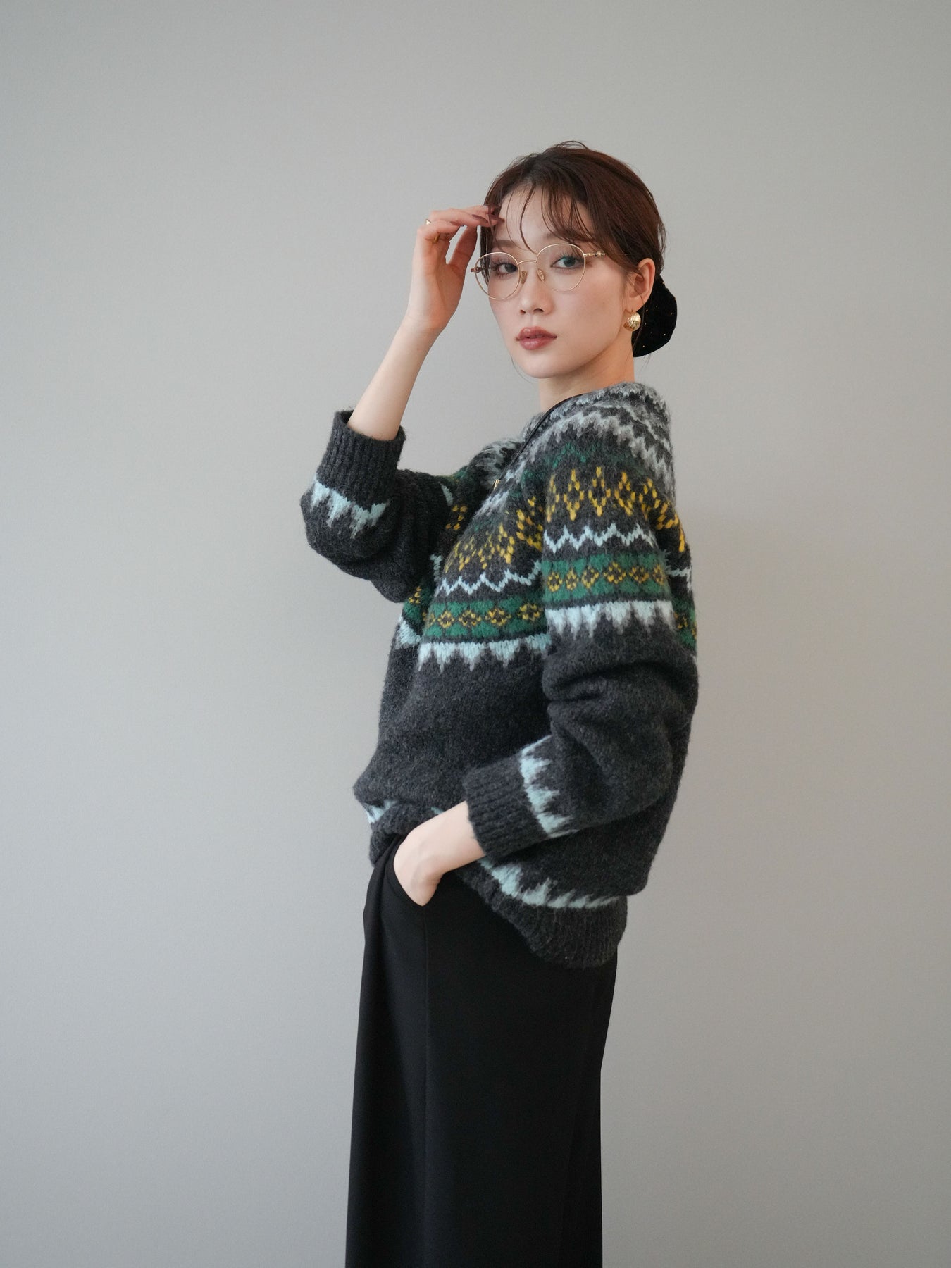 [予約]ウールタッチ求心柄オーバーニットプルオーバー/gray
