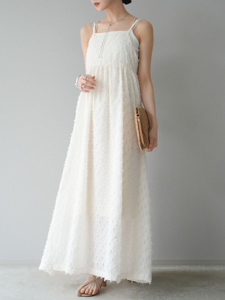 [予約]フリンジジャガードキャミワンピース/アイボリー