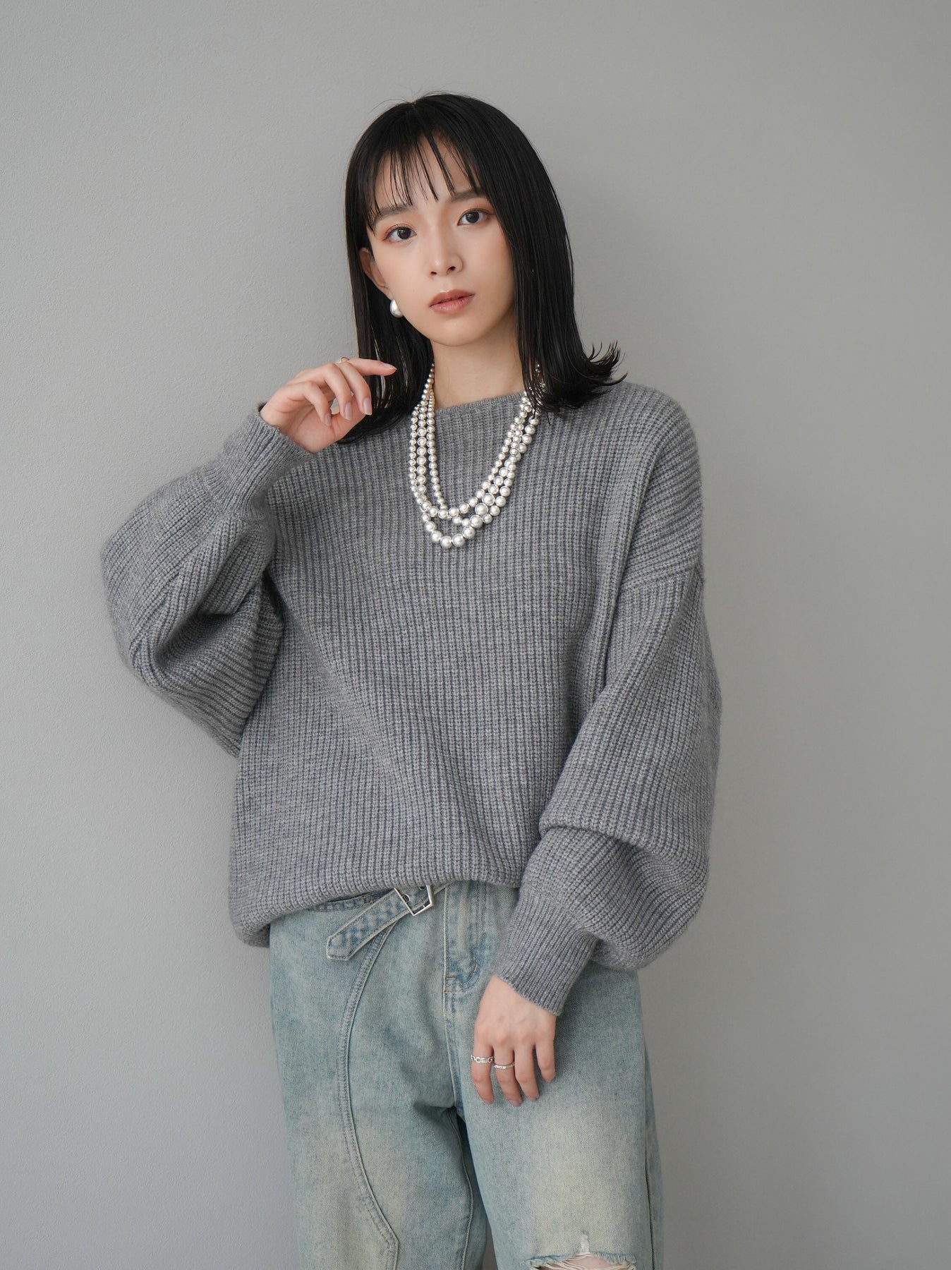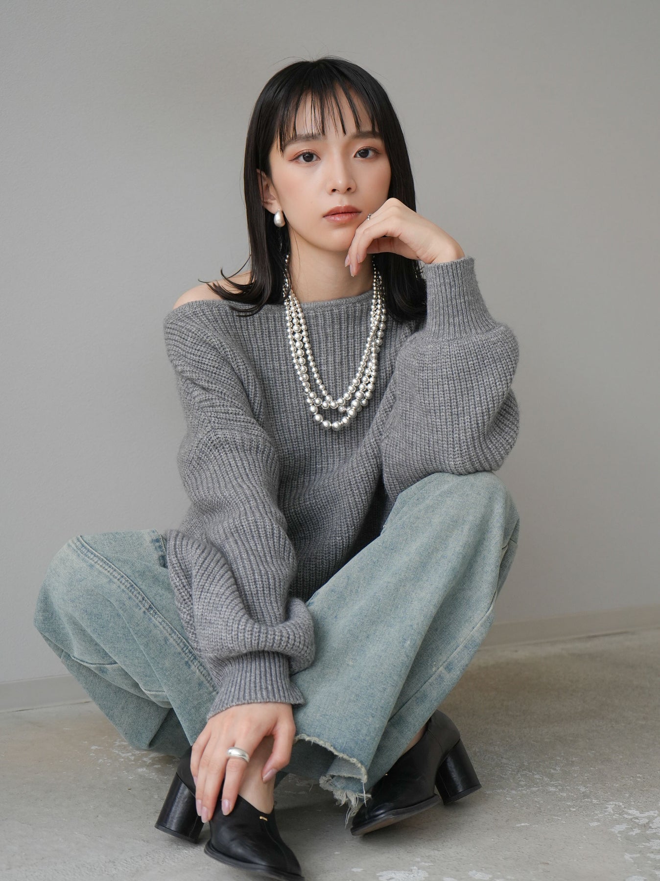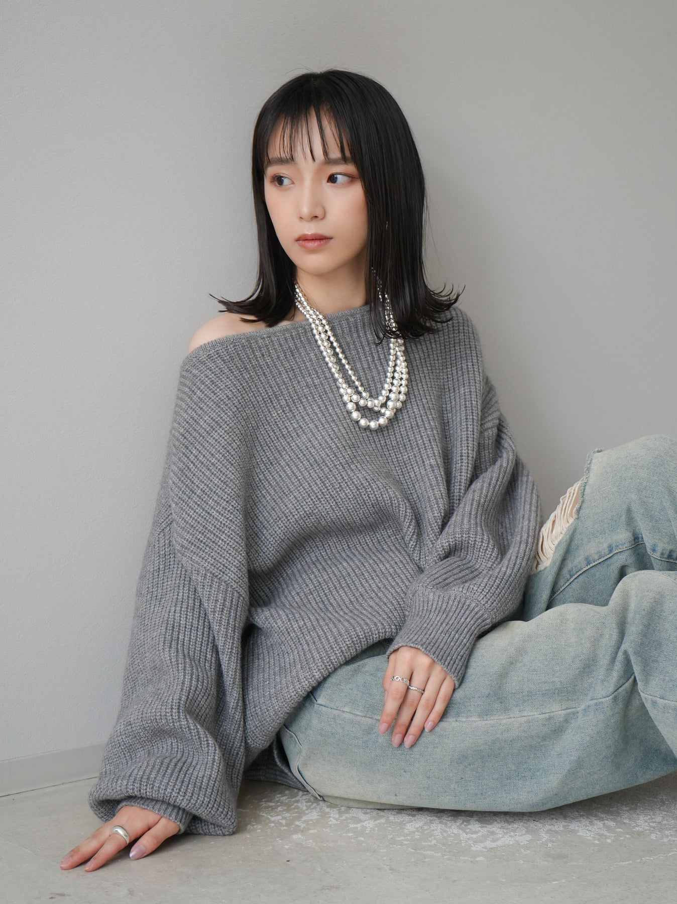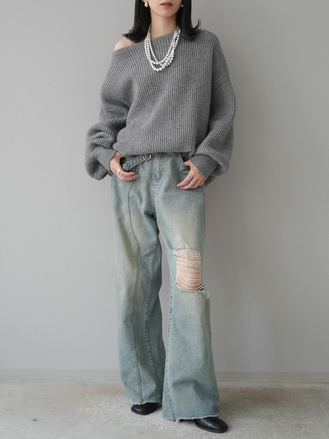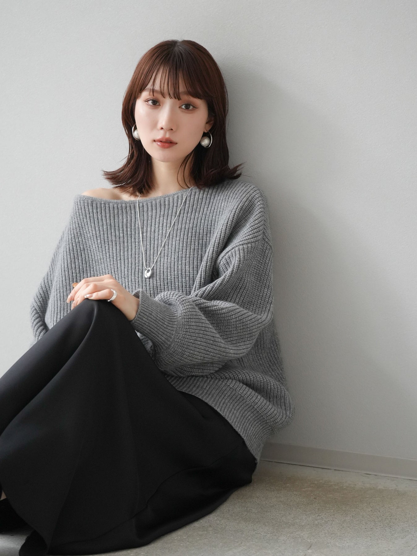 [予約]アルパカタッチオフショルオーバーニットプルオーバー/杢グレー