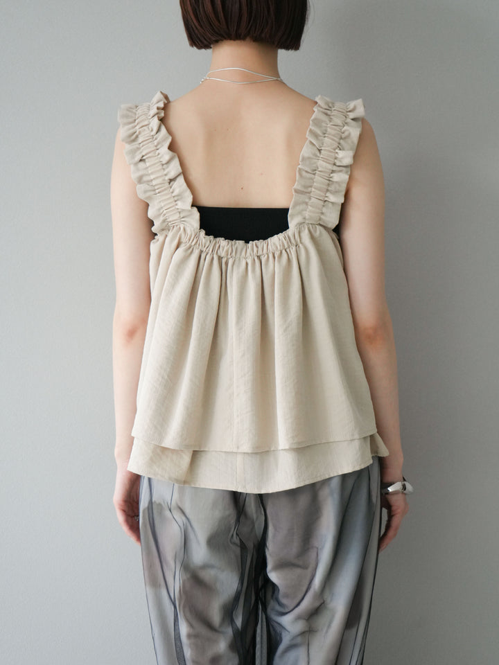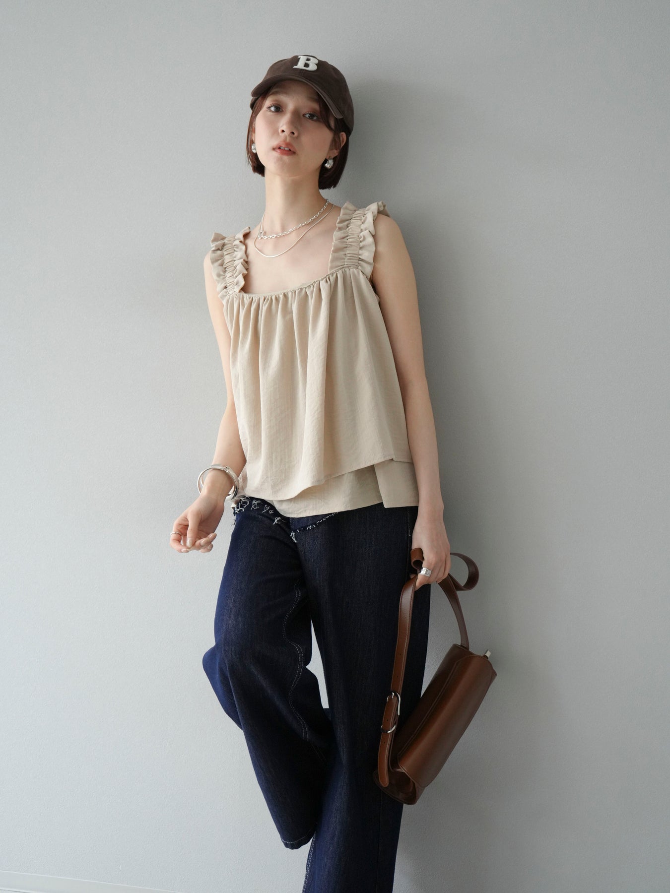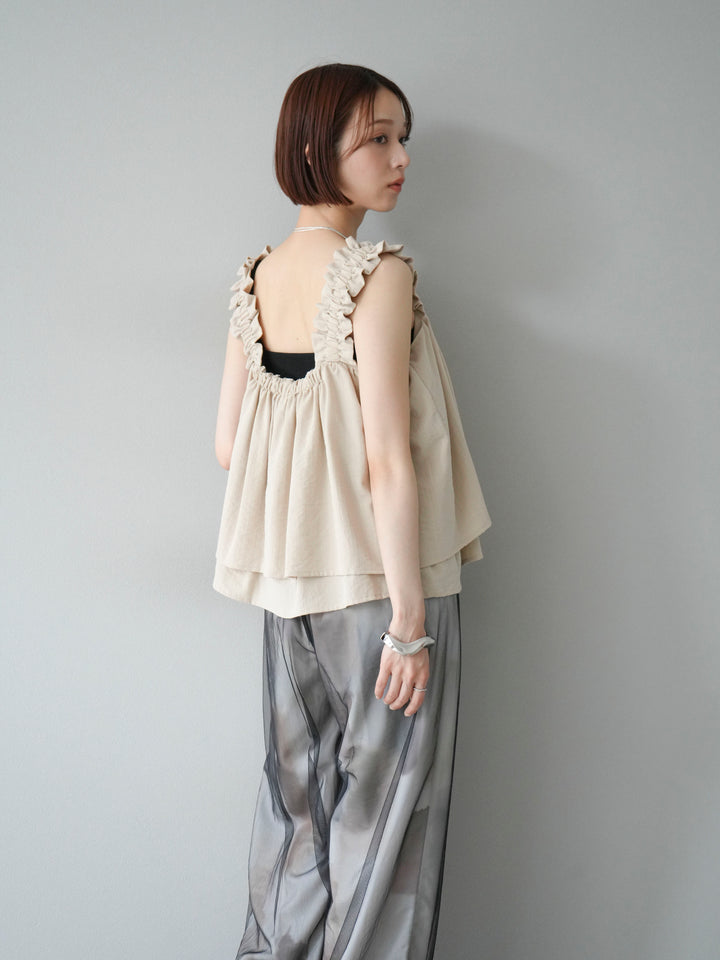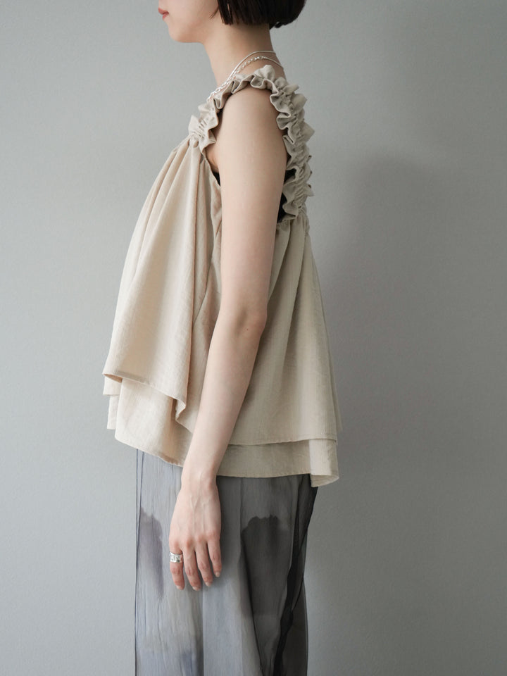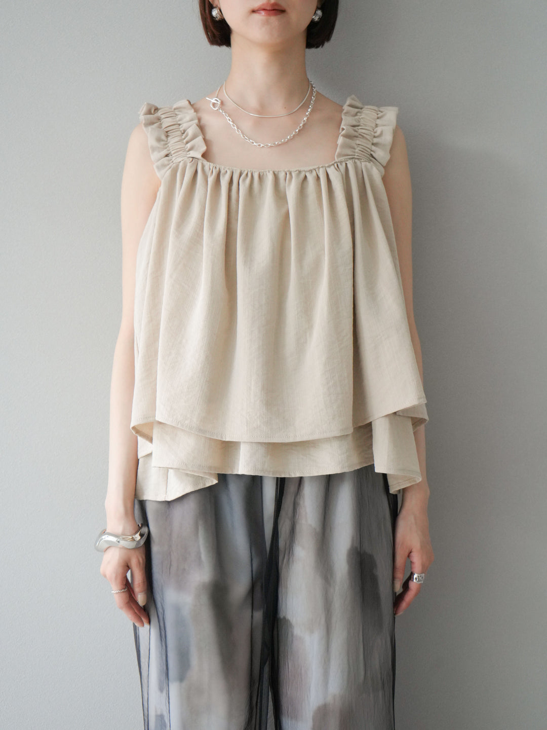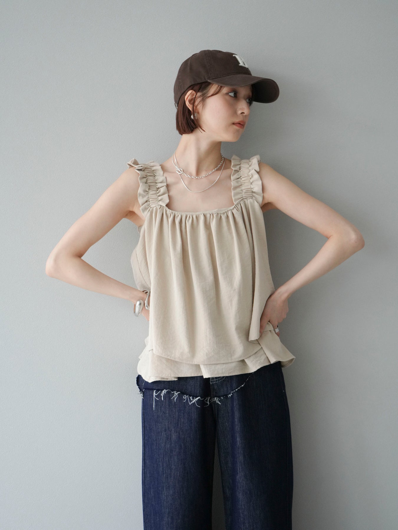 [予約]ギャザーショルダーフレアタンクトップ/アイボリー
