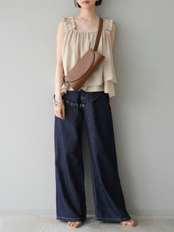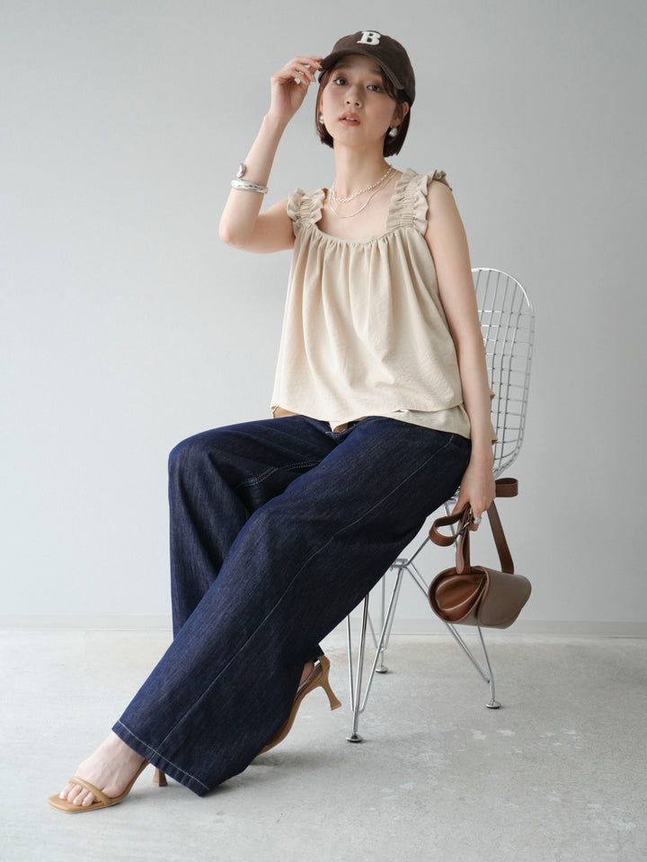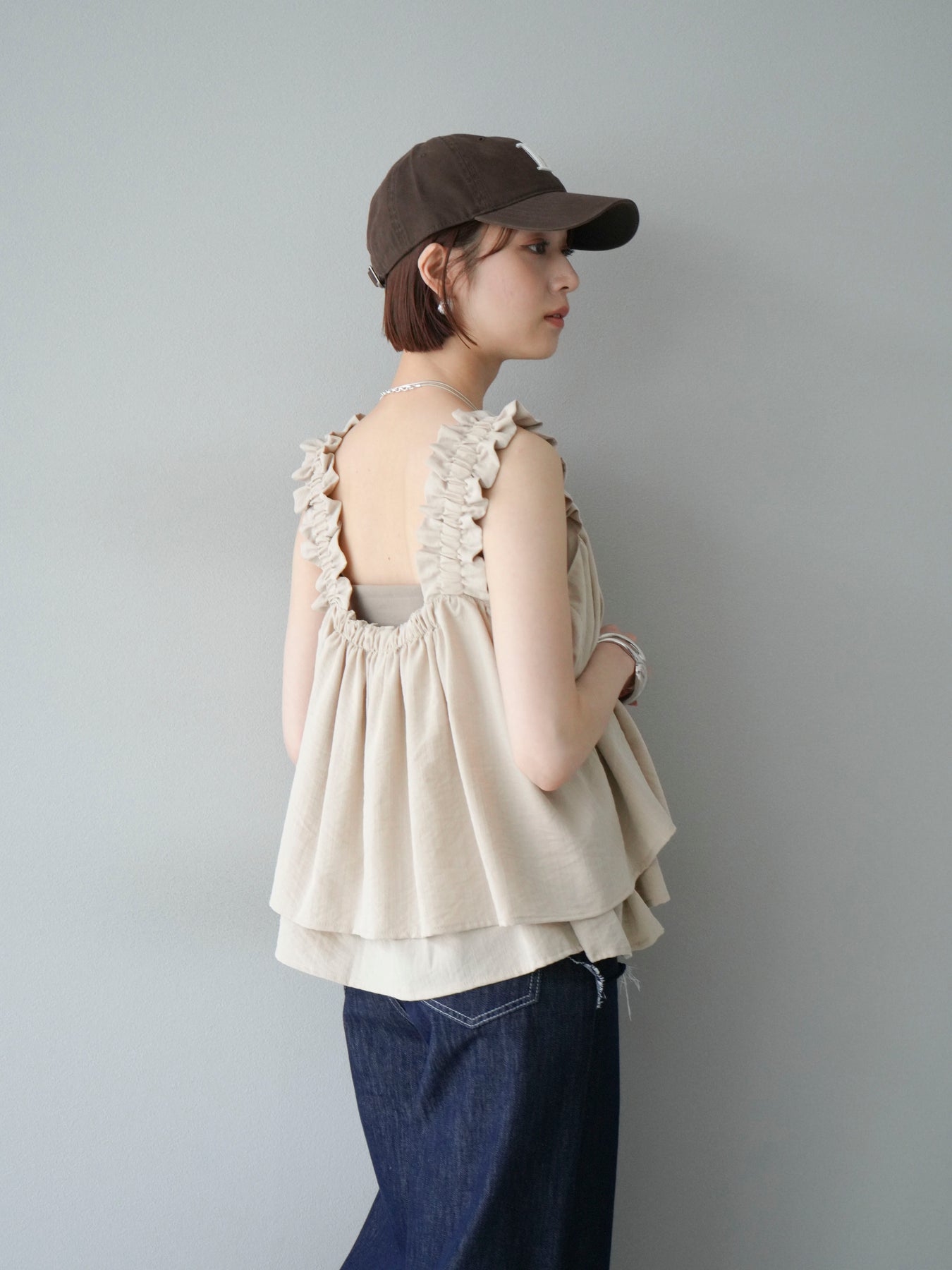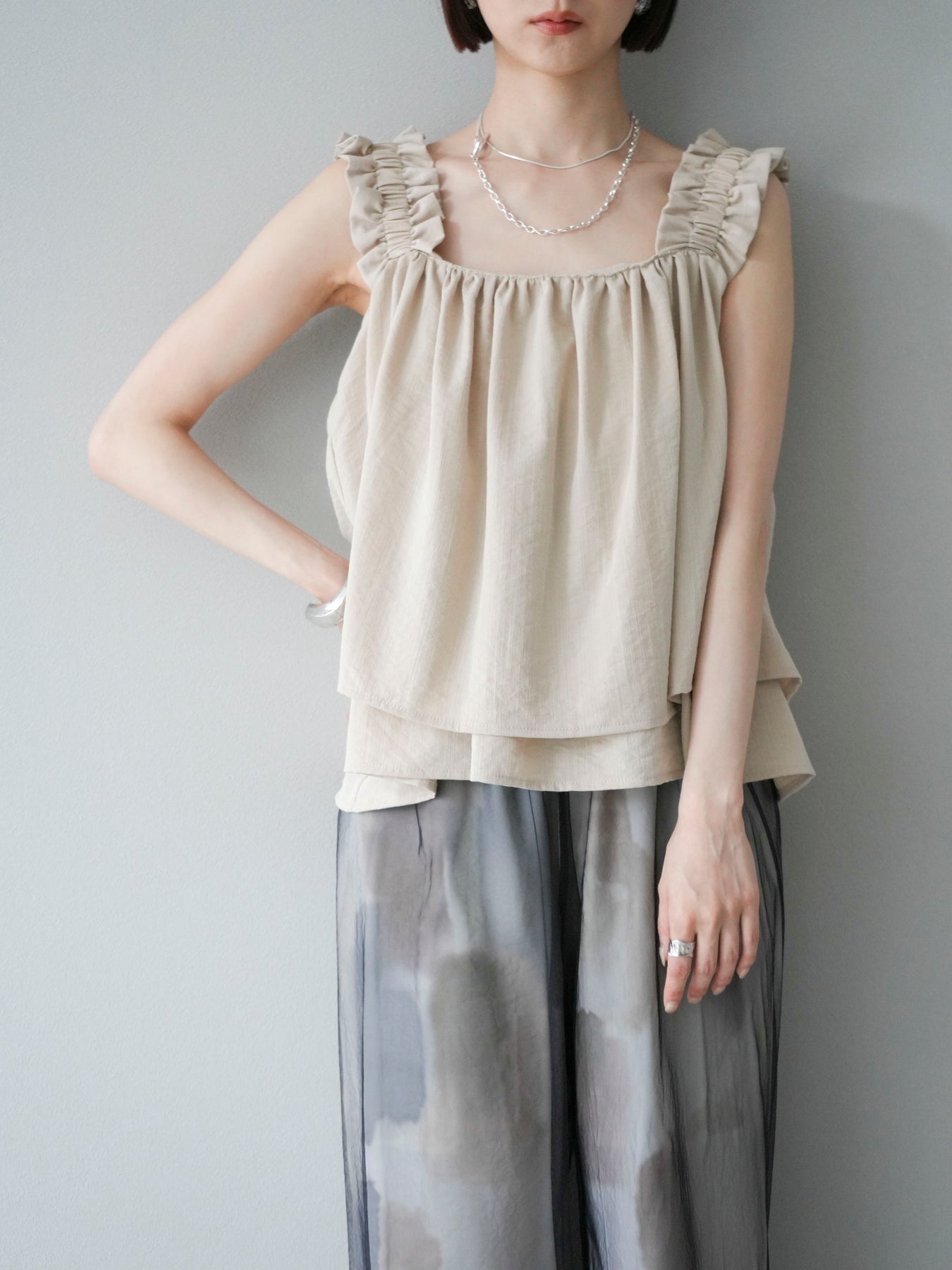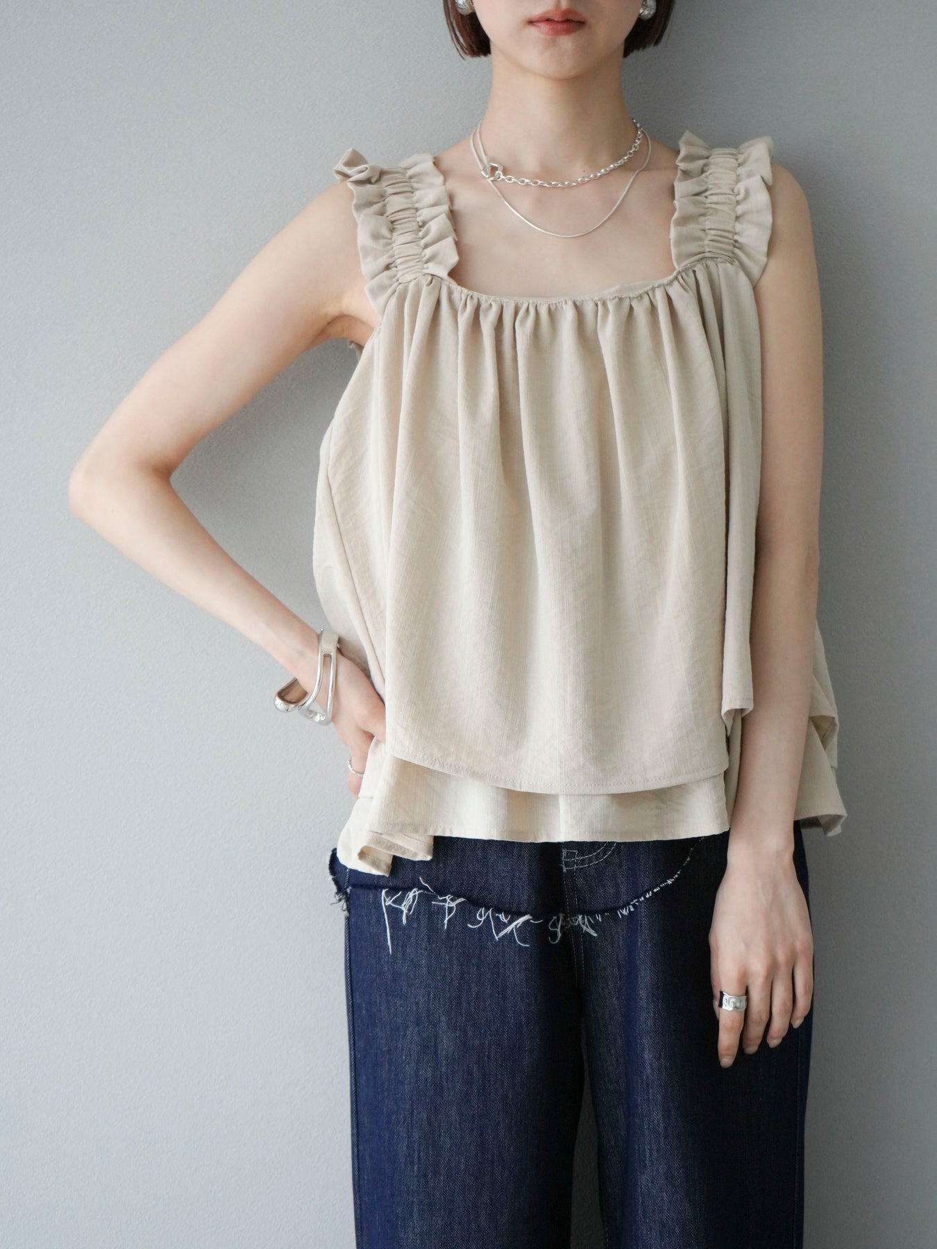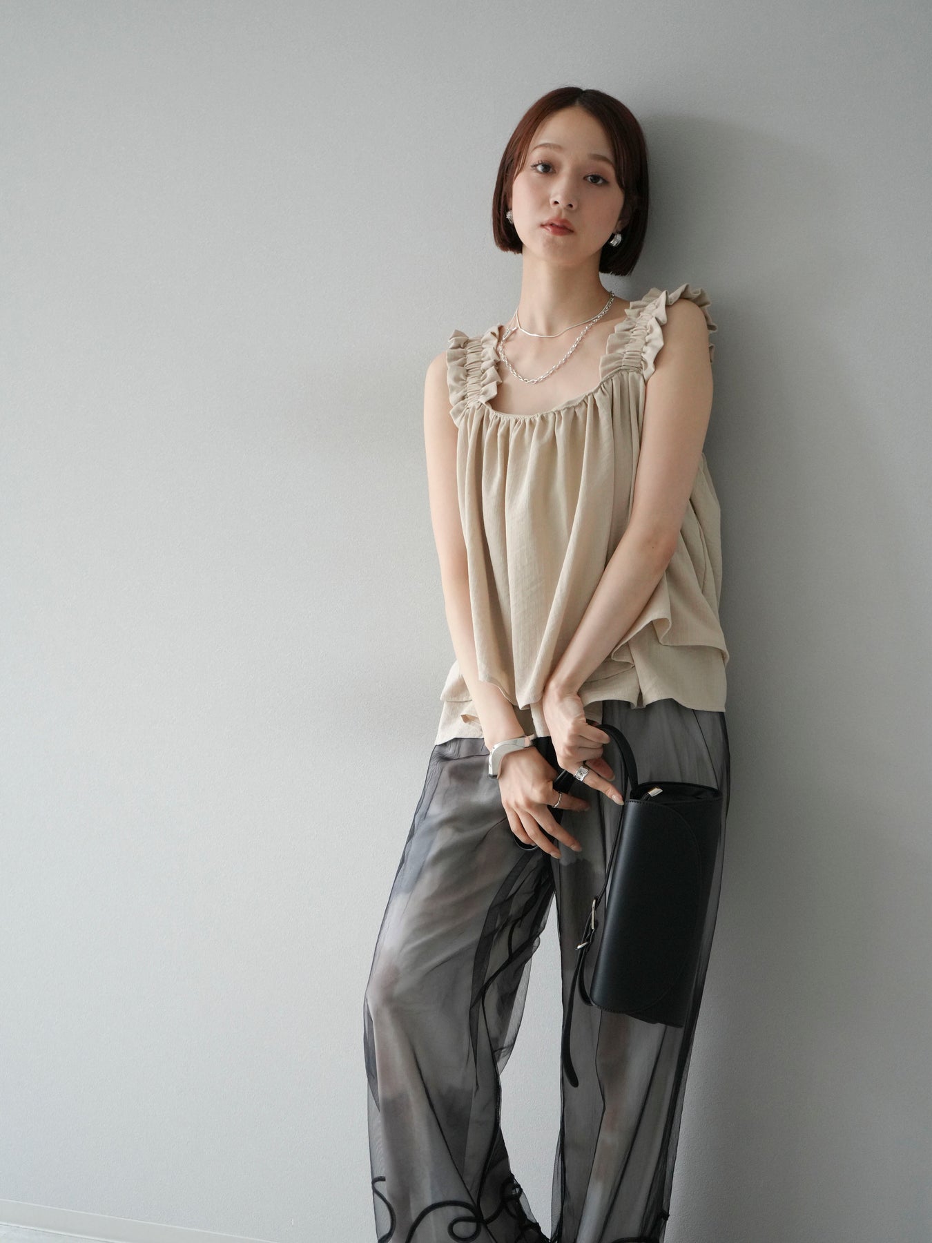 [予約]ギャザーショルダーフレアタンクトップ/アイボリー