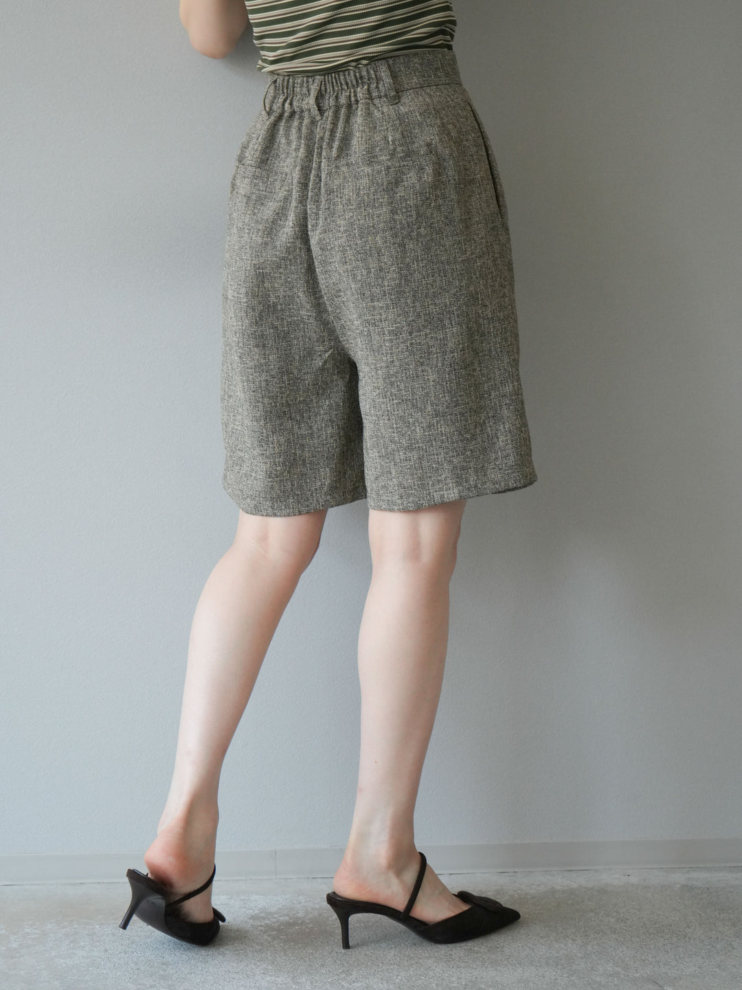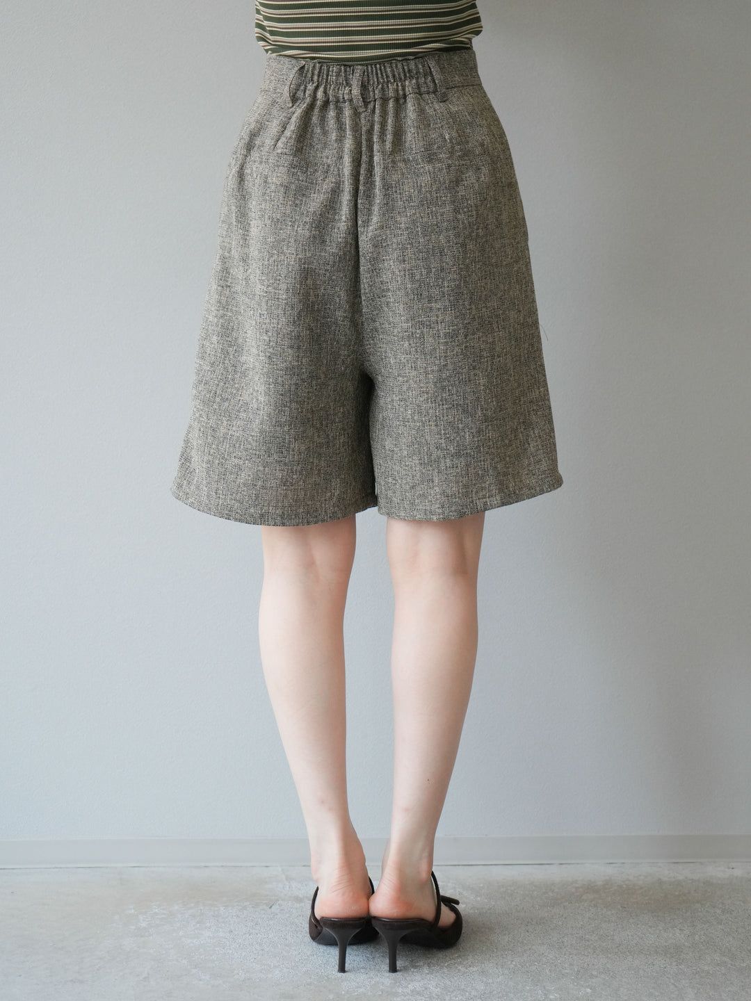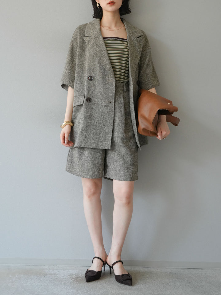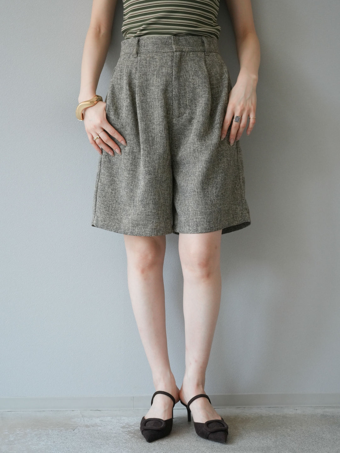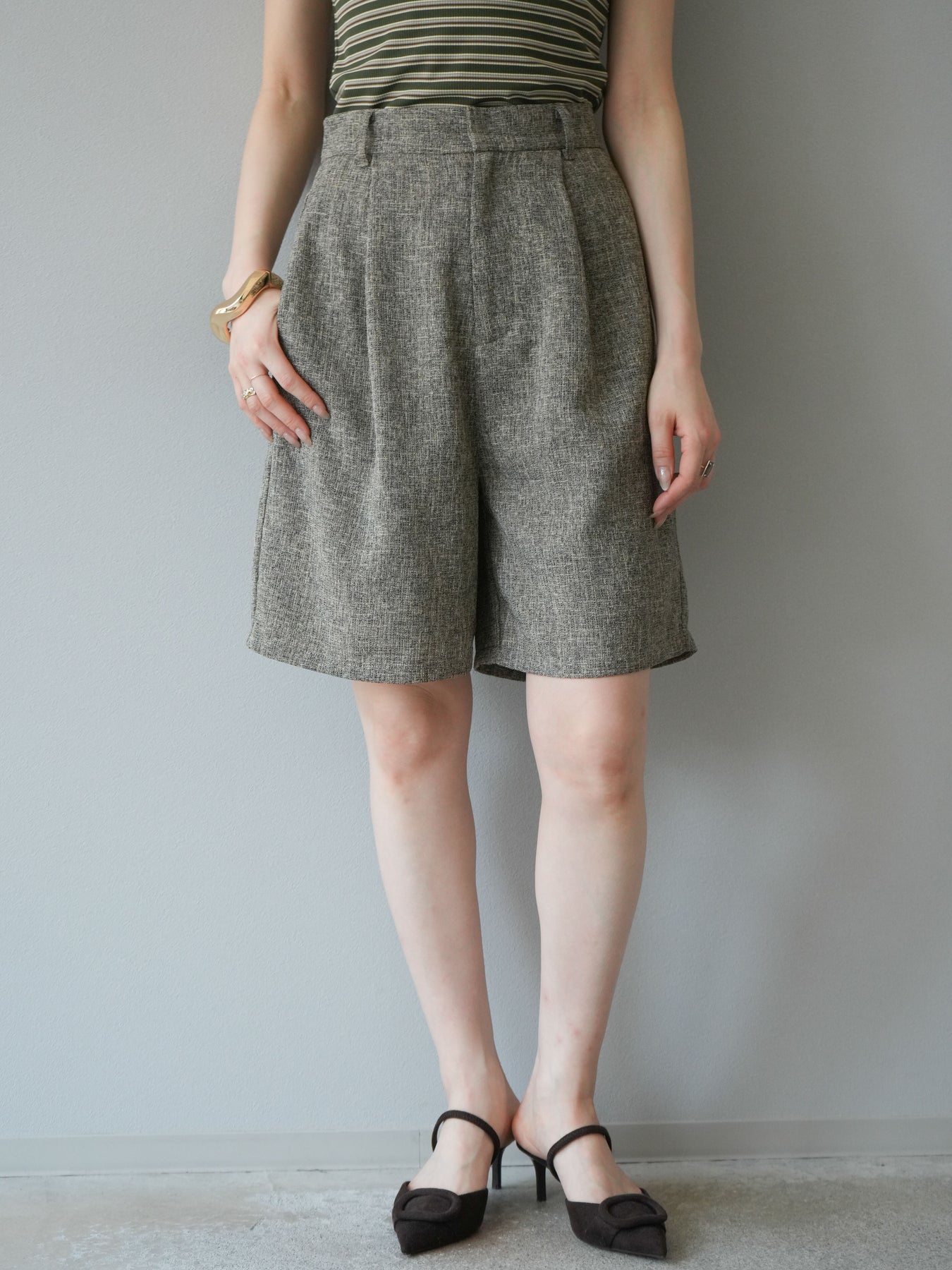 軽やかなサマーツイード素材を使用した、季節感たっぷりのハーフパンツ。程よくゆとりのあるシルエットと、上品なツイードの質感が、ラフすぎず大人っぽい印象を演出します。セットアップコーデはもちろん、単品でもきれいめからカジュアルまで幅広く着回せる万能アイテムです。 ※ボトムス、キャミソール(インナー)以外の商品は一律でインナーは付属していません
