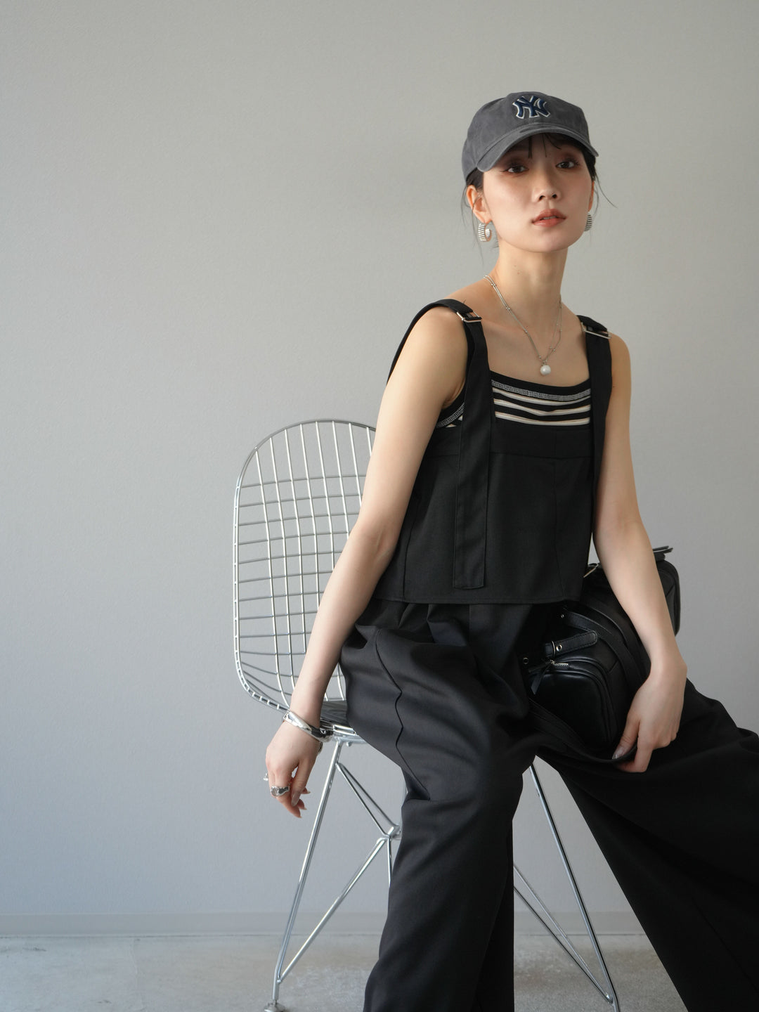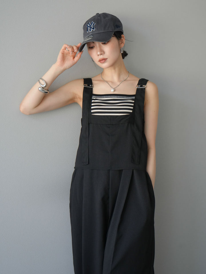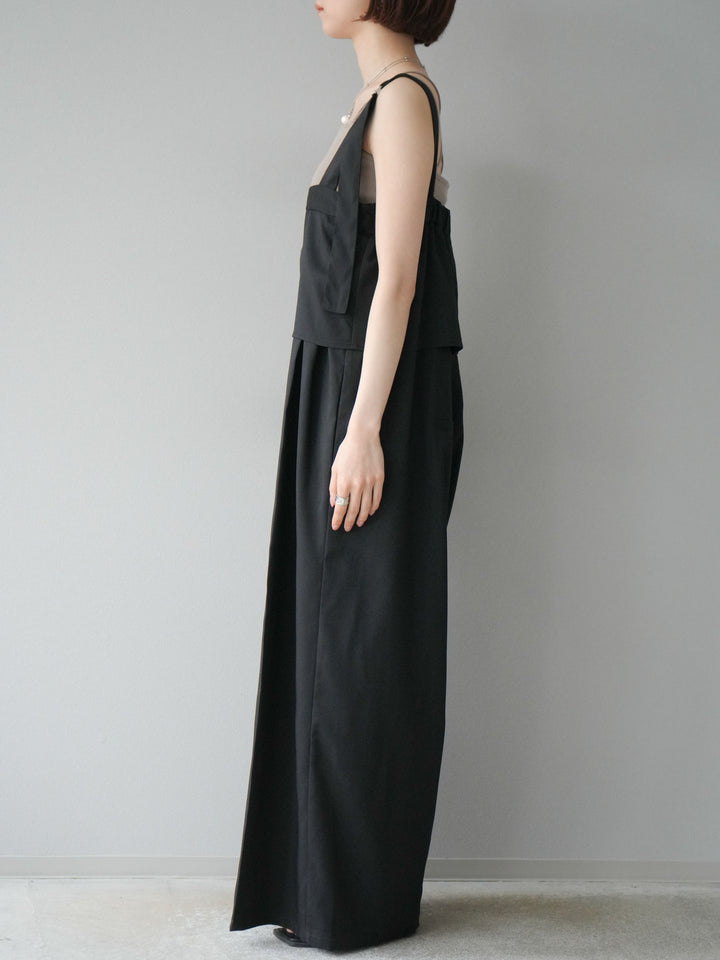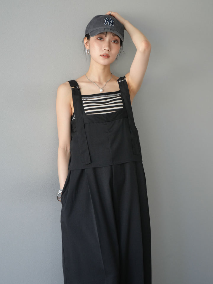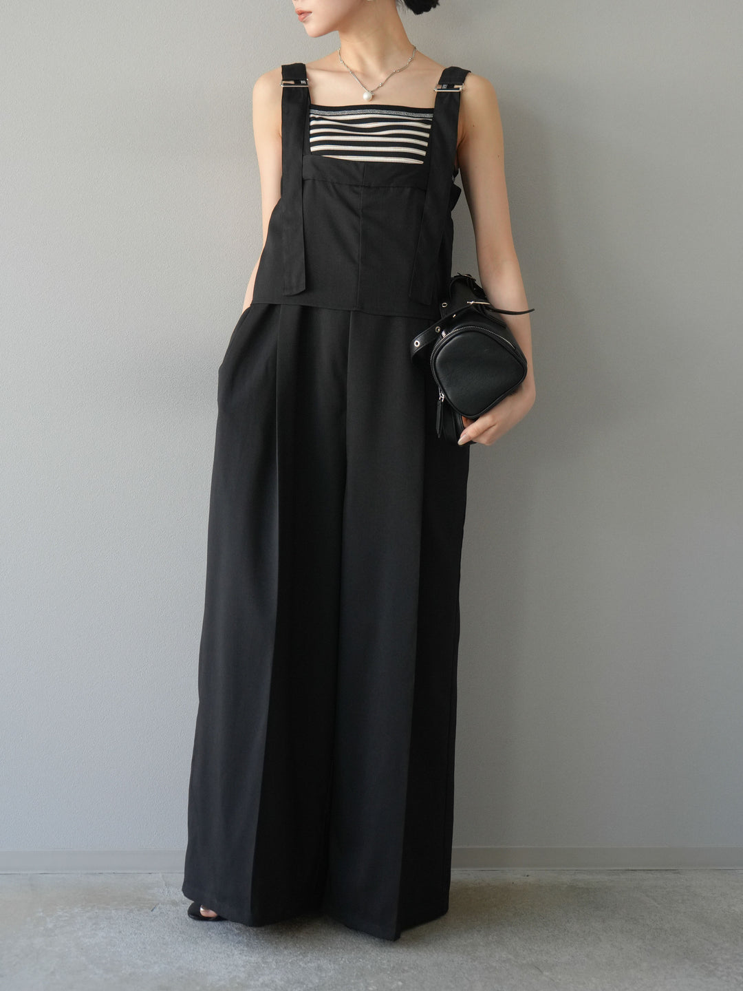[予約]リネンタッチレイヤードデザインサロペット/ブラック