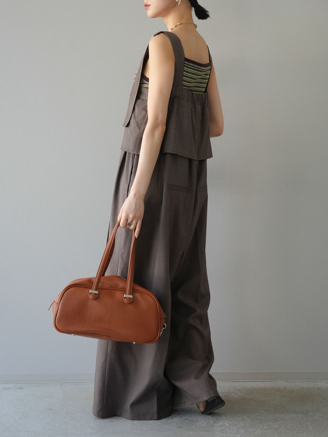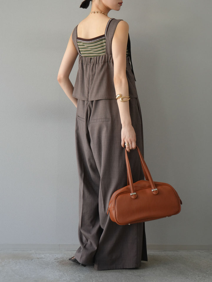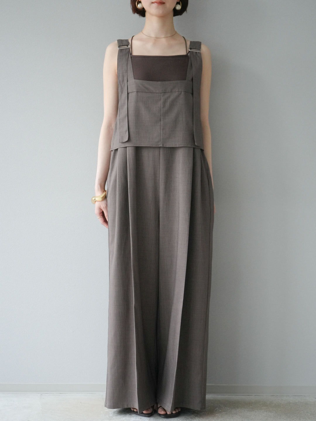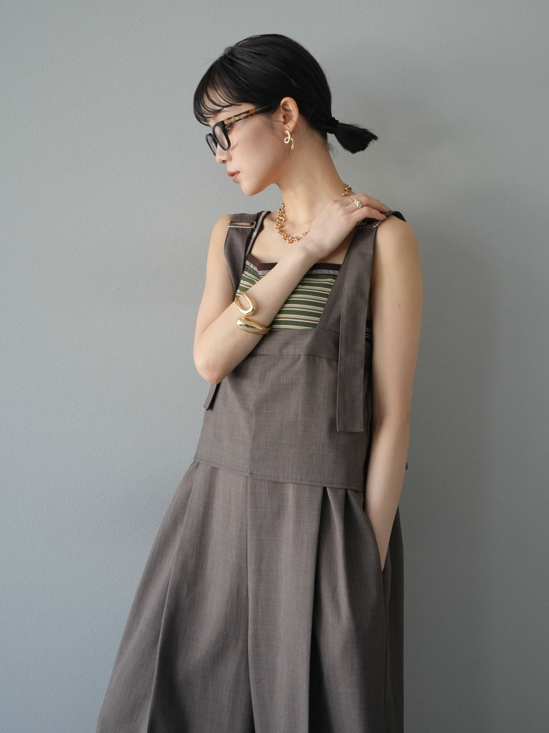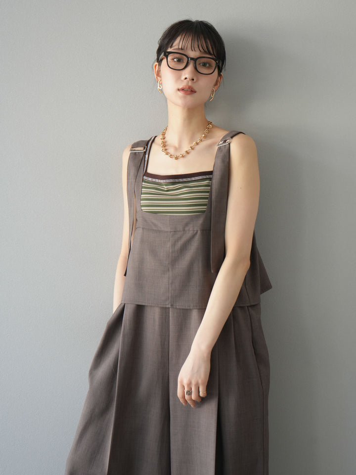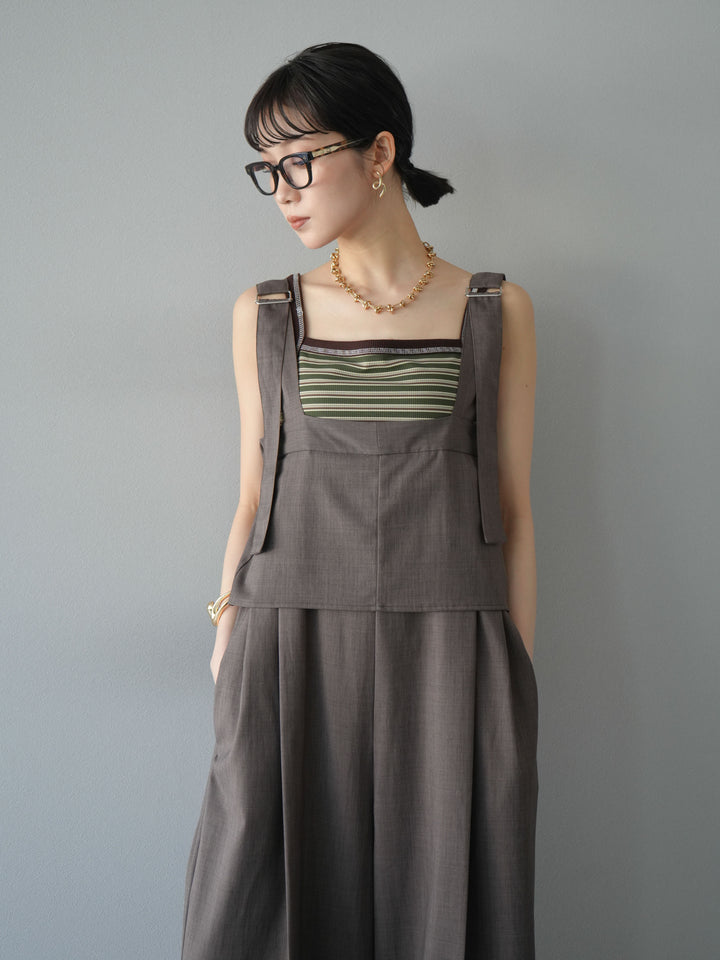 [予約]リネンタッチレイヤードデザインサロペット/ブラウン