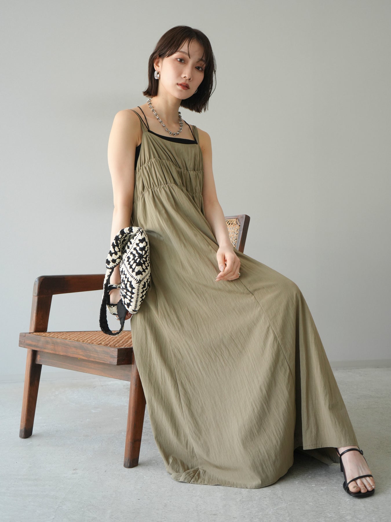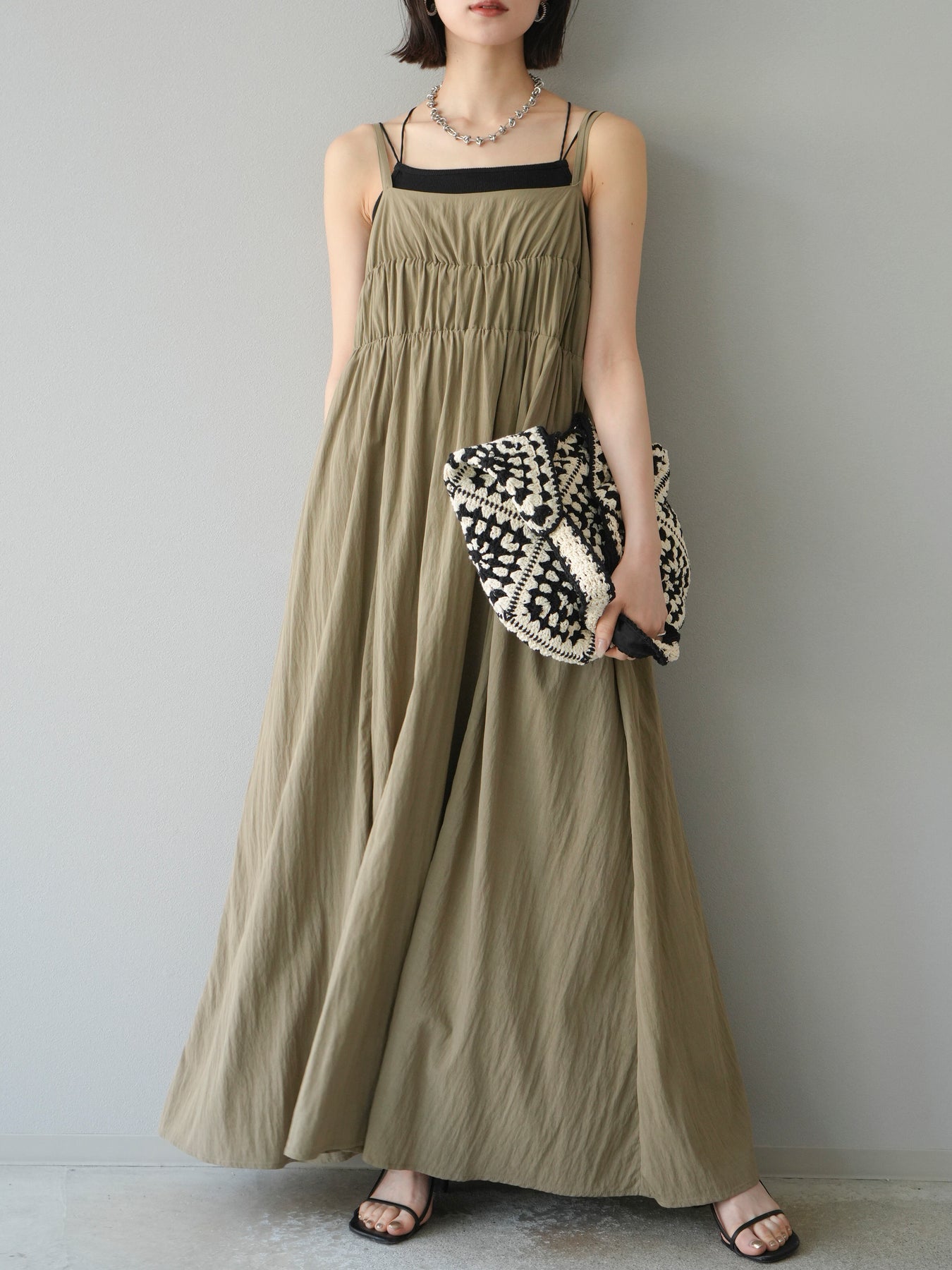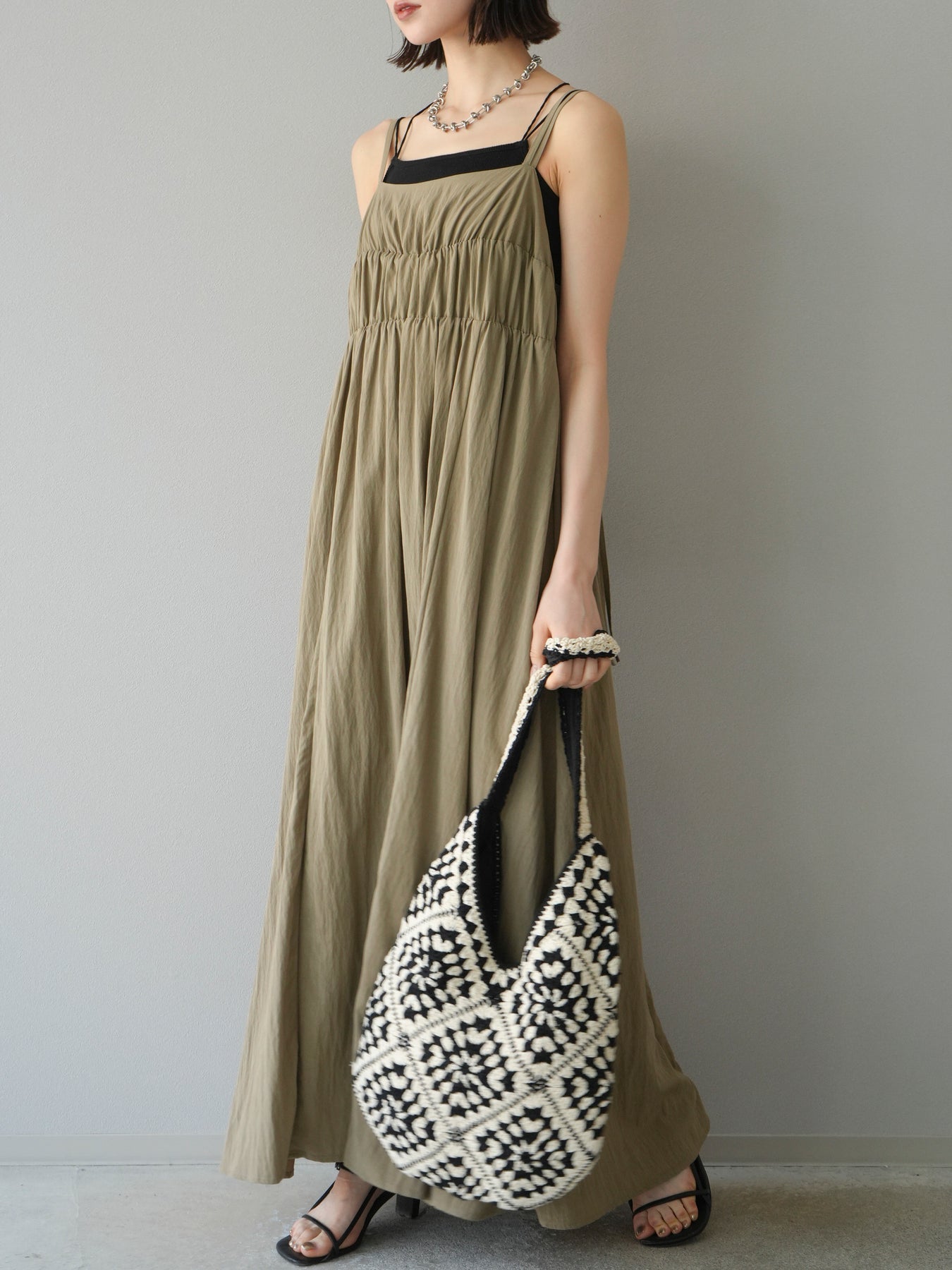 [予約]レーヨンシャーリングキャミワンピース/ベージュ