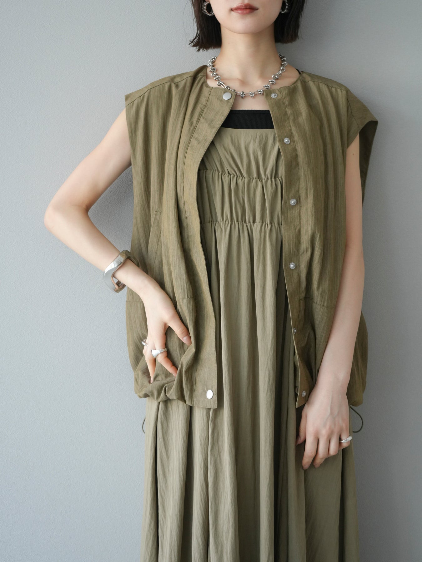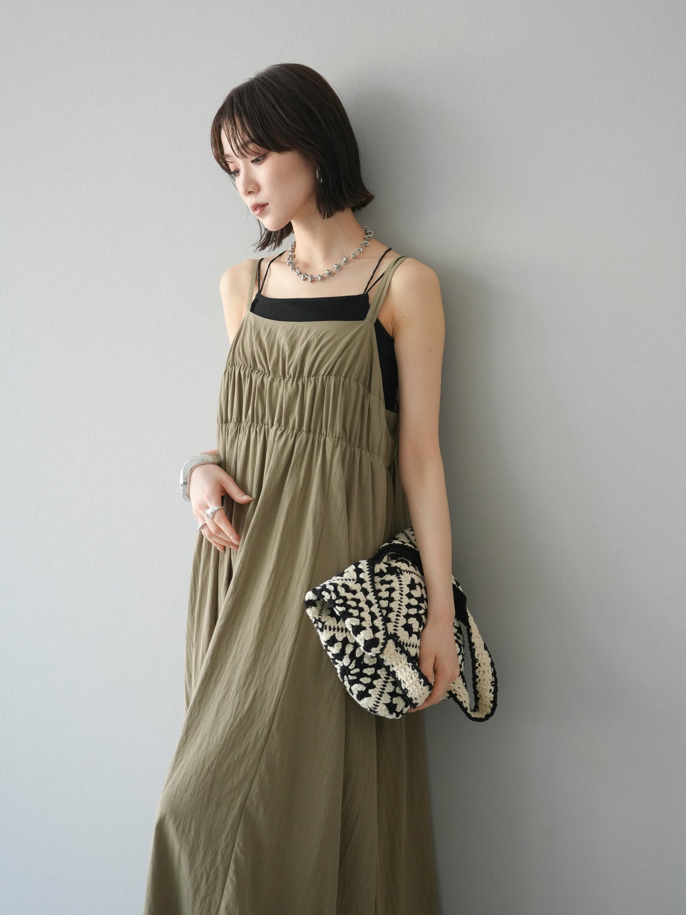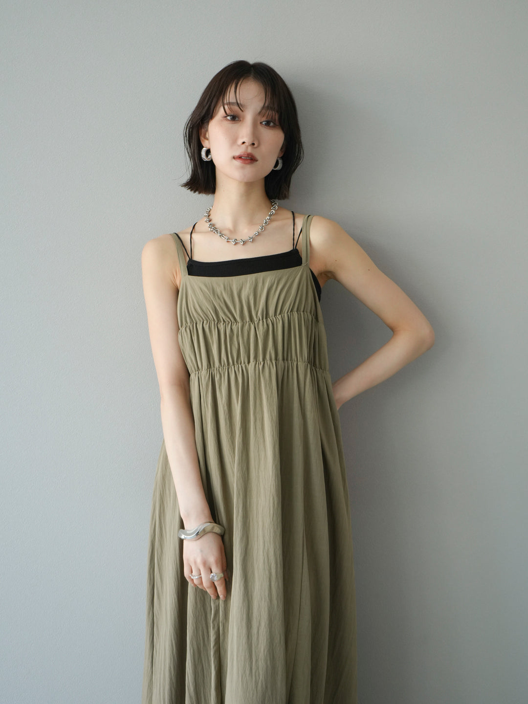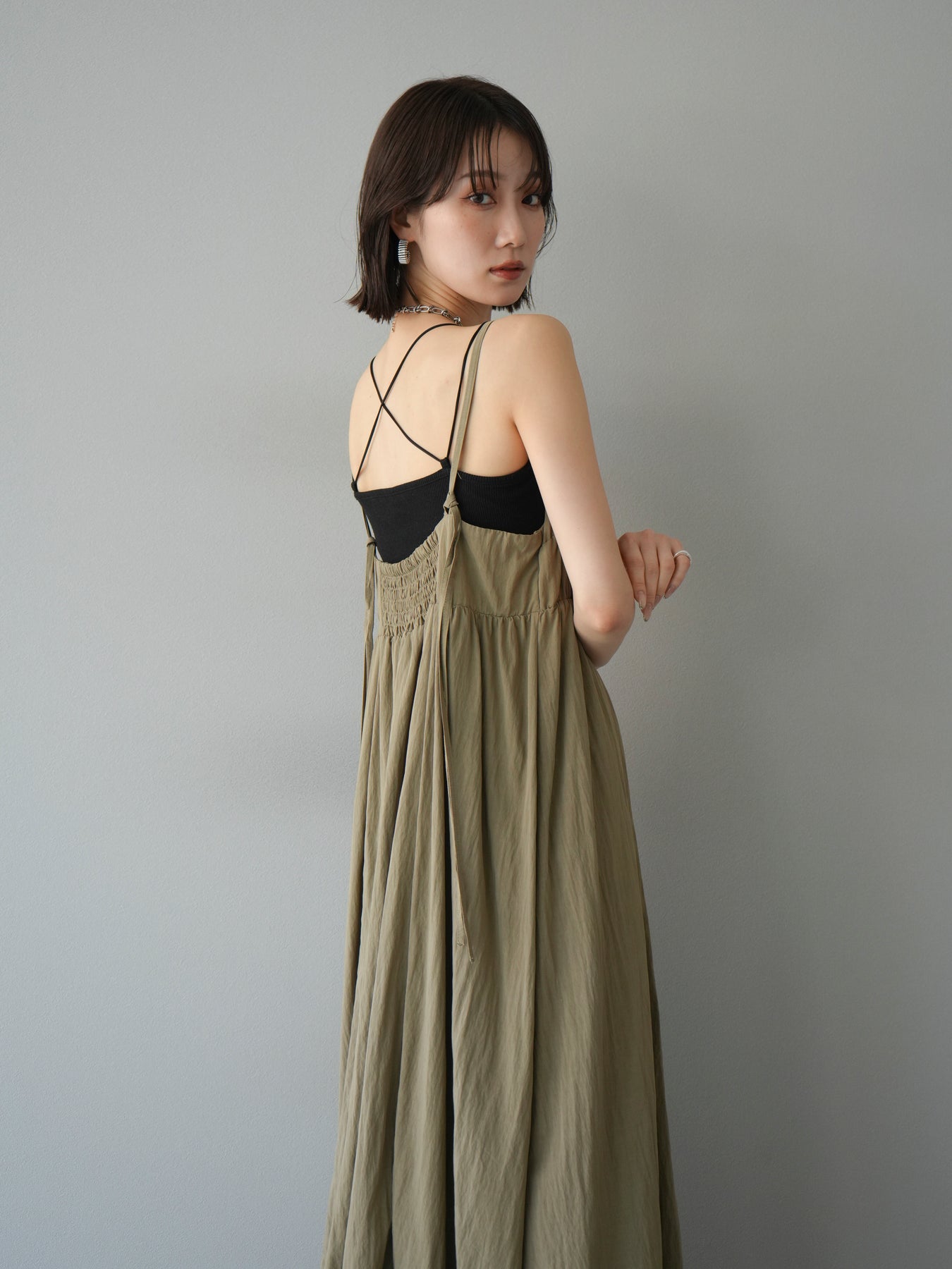 [予約]レーヨンシャーリングキャミワンピースに関連する商品を探す↓
