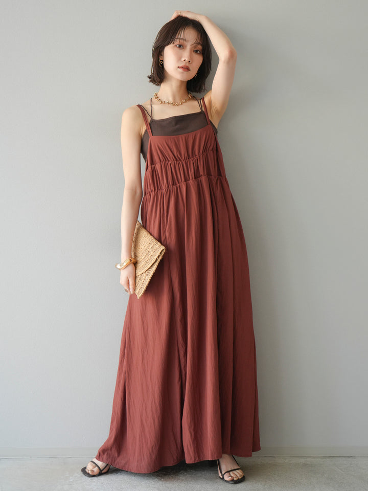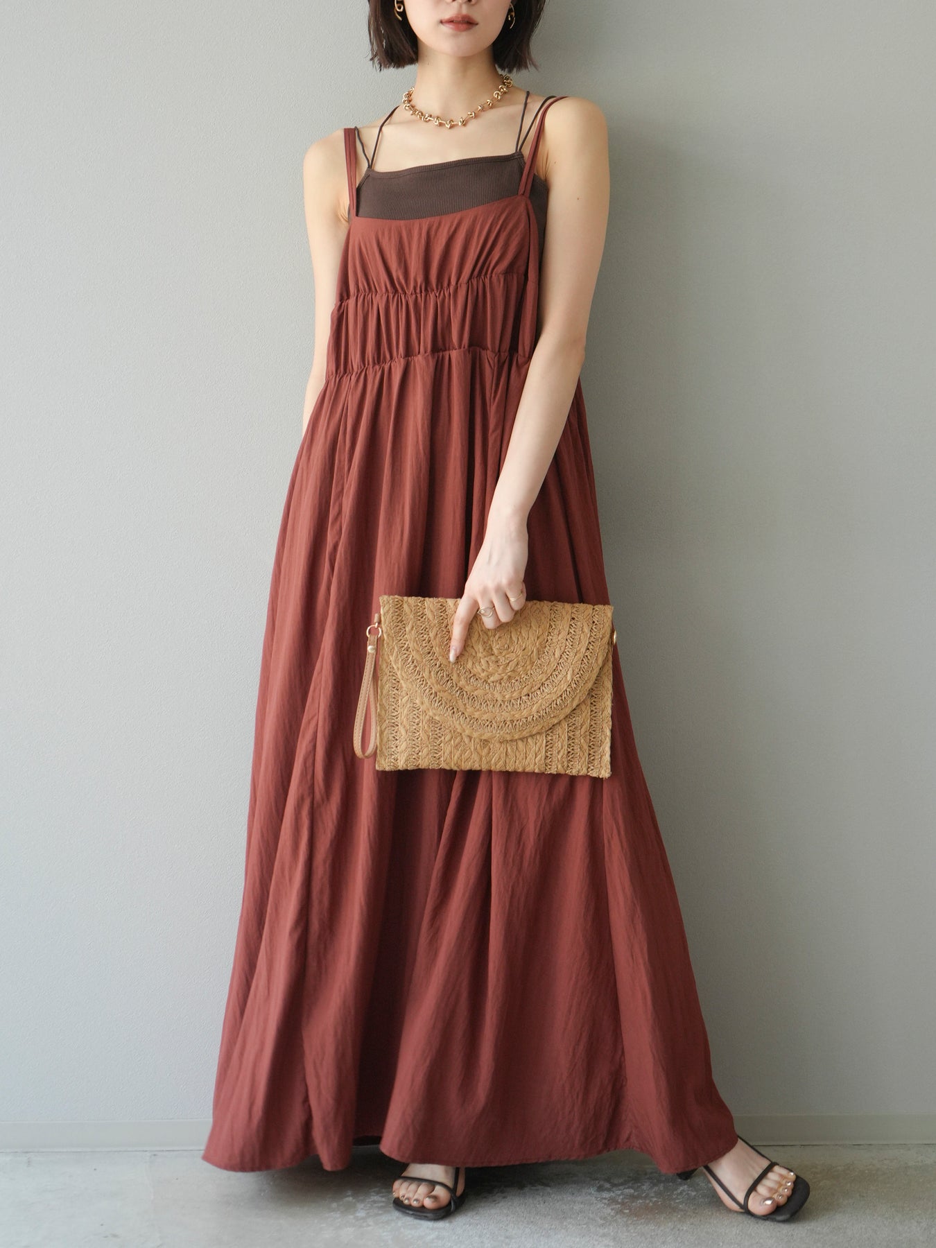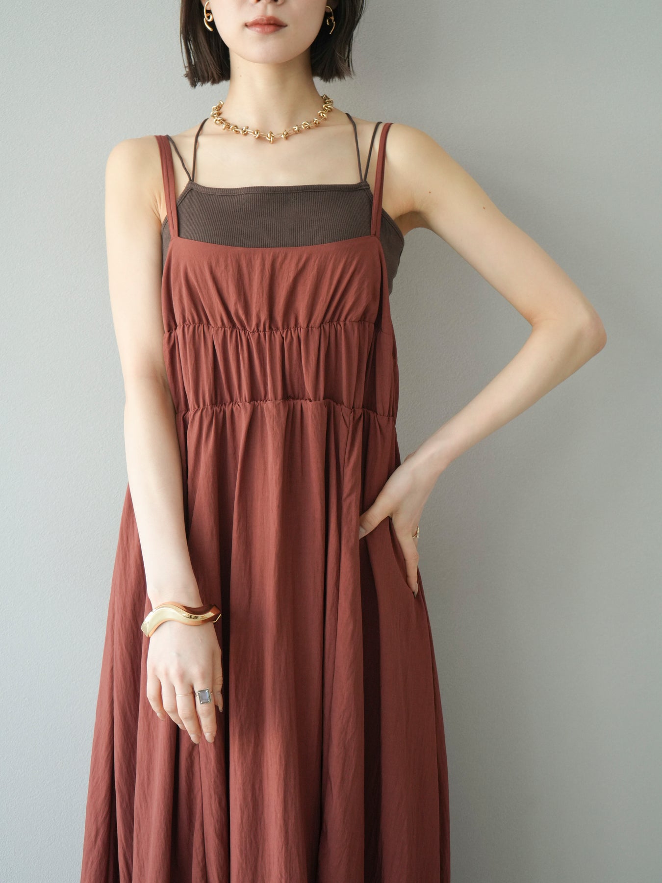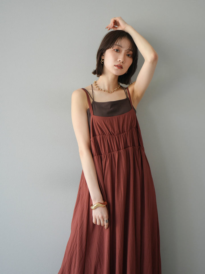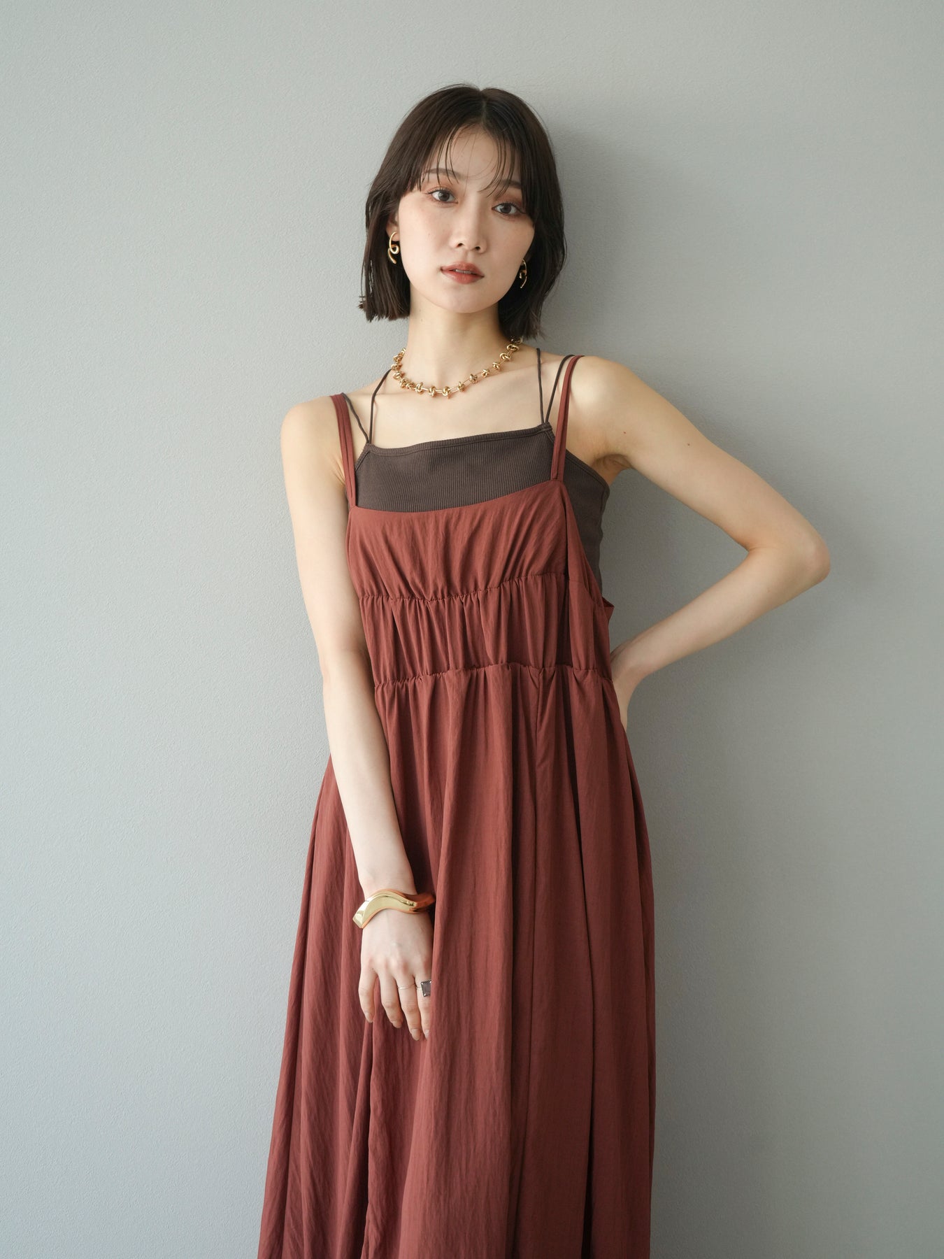 [予約]レーヨンシャーリングキャミワンピース/ブラウン