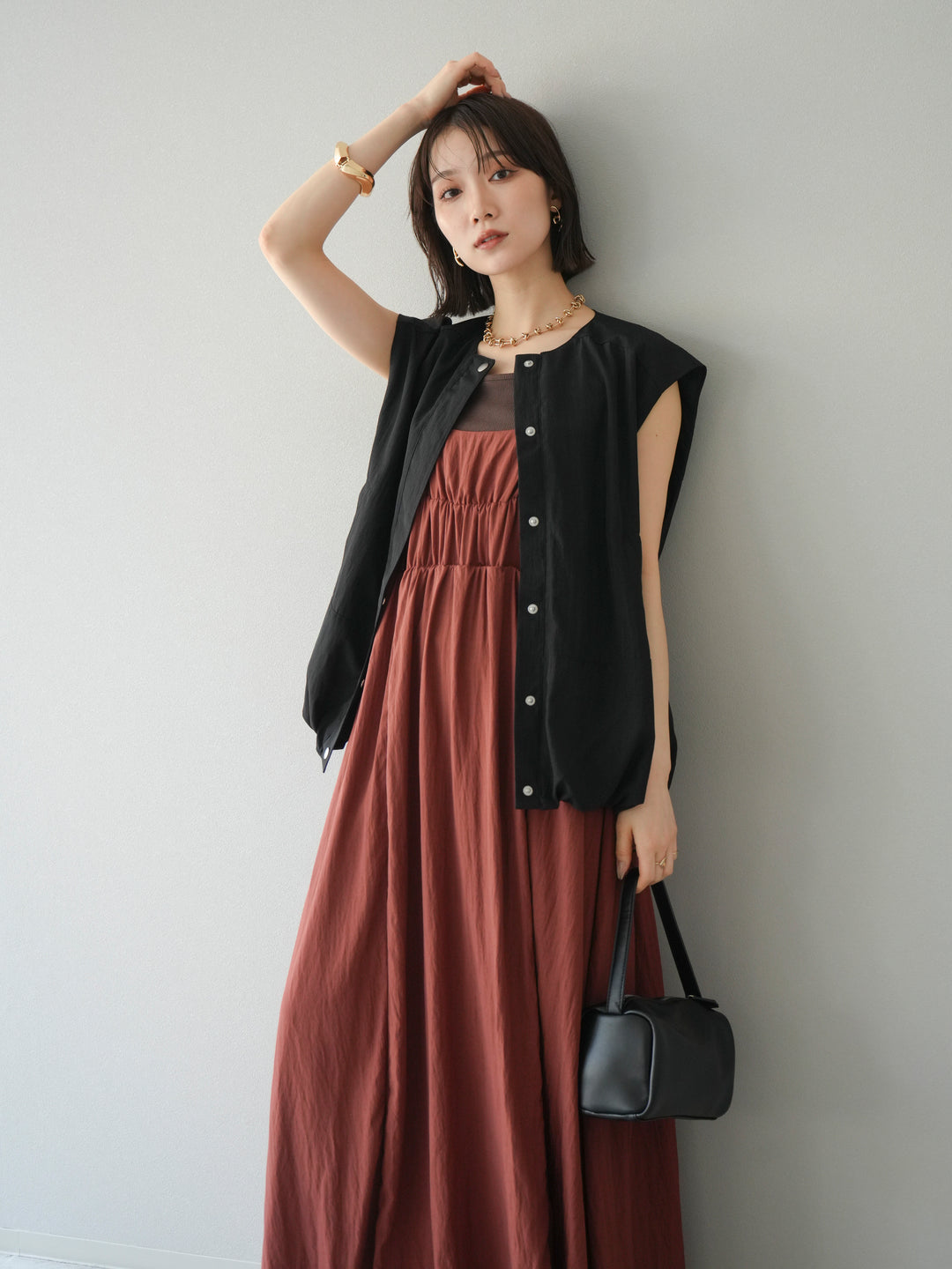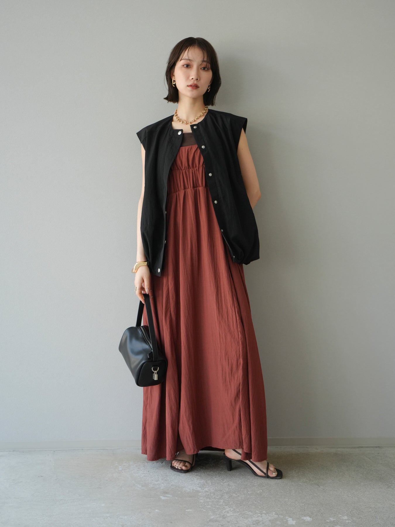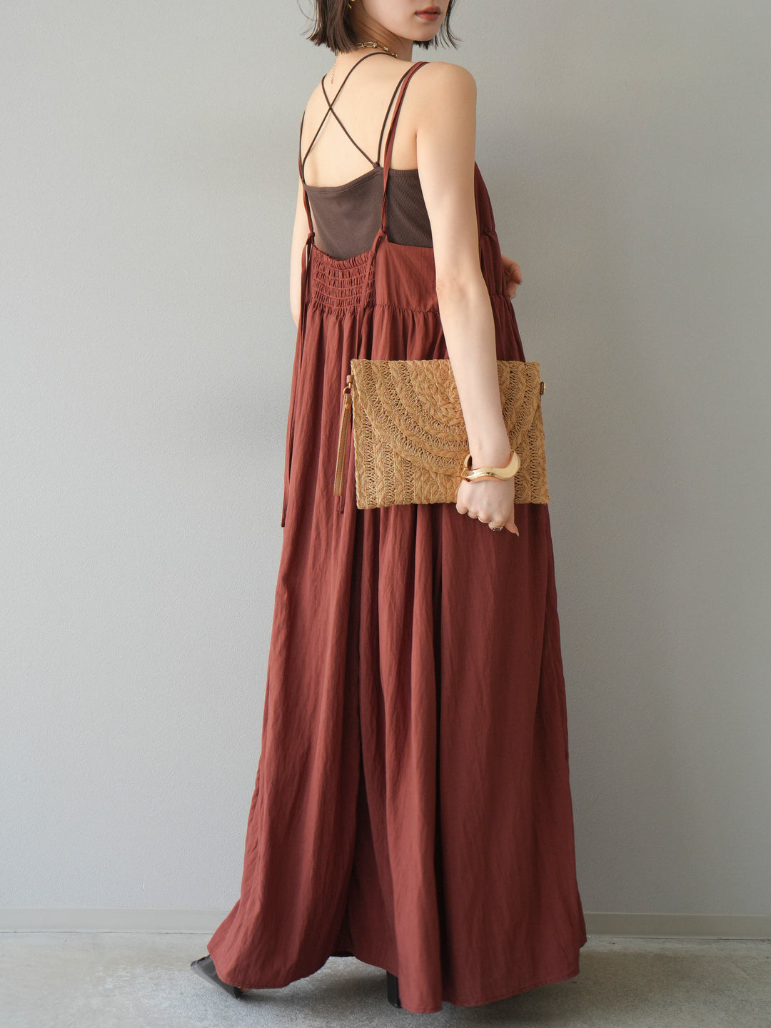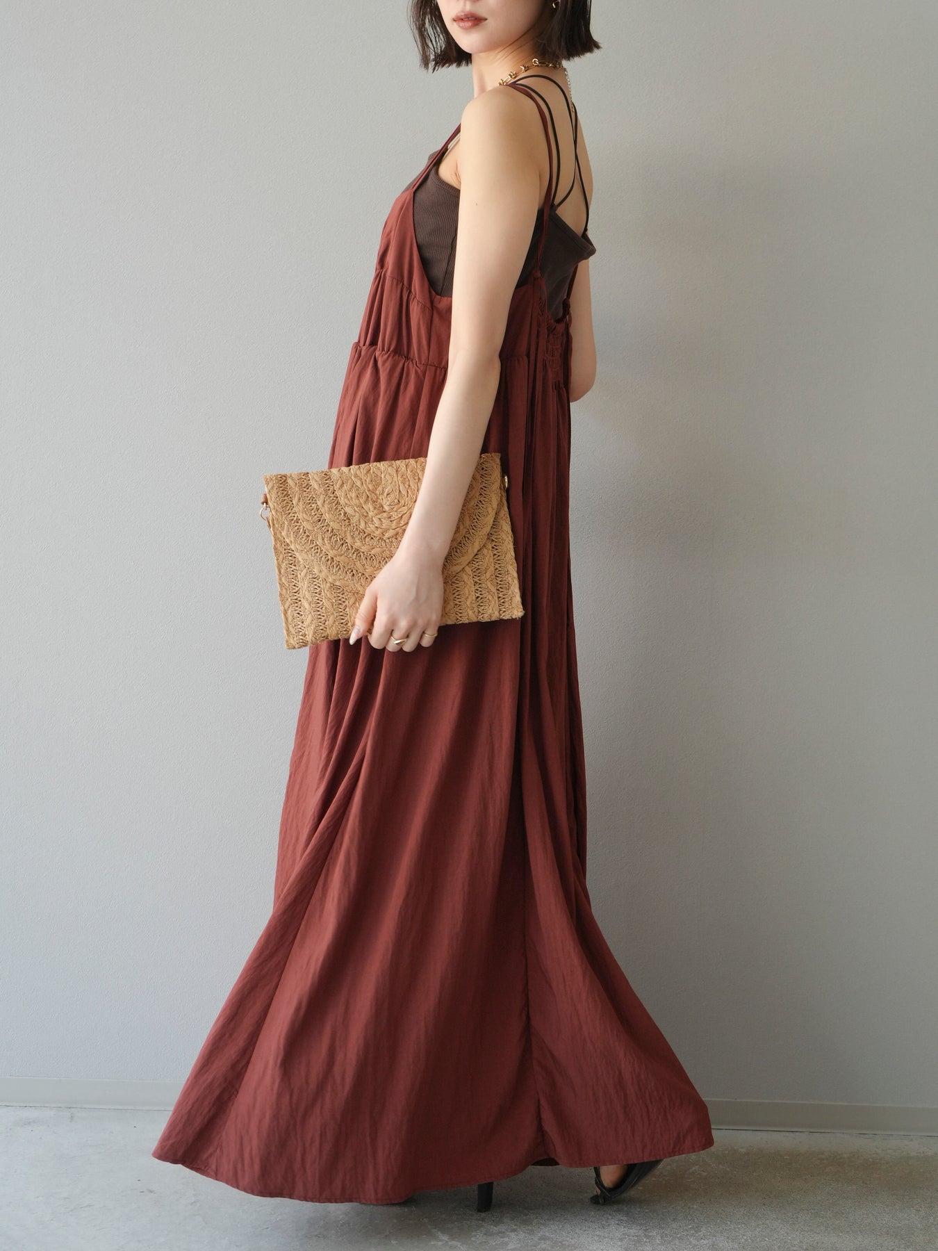 [予約]レーヨンシャーリングキャミワンピース/ブラウン