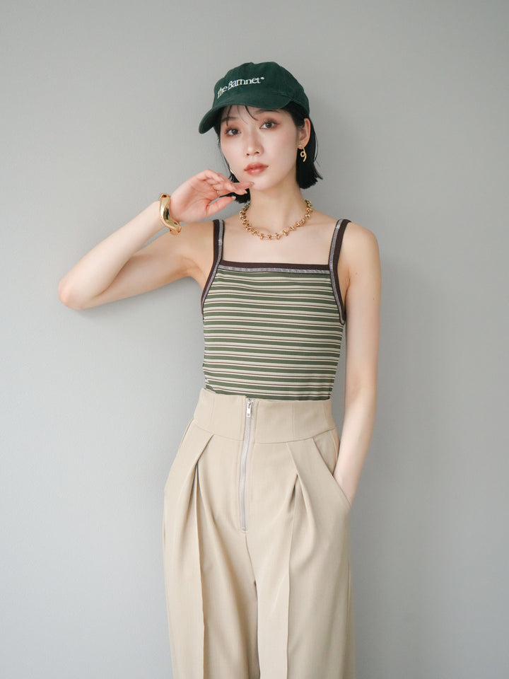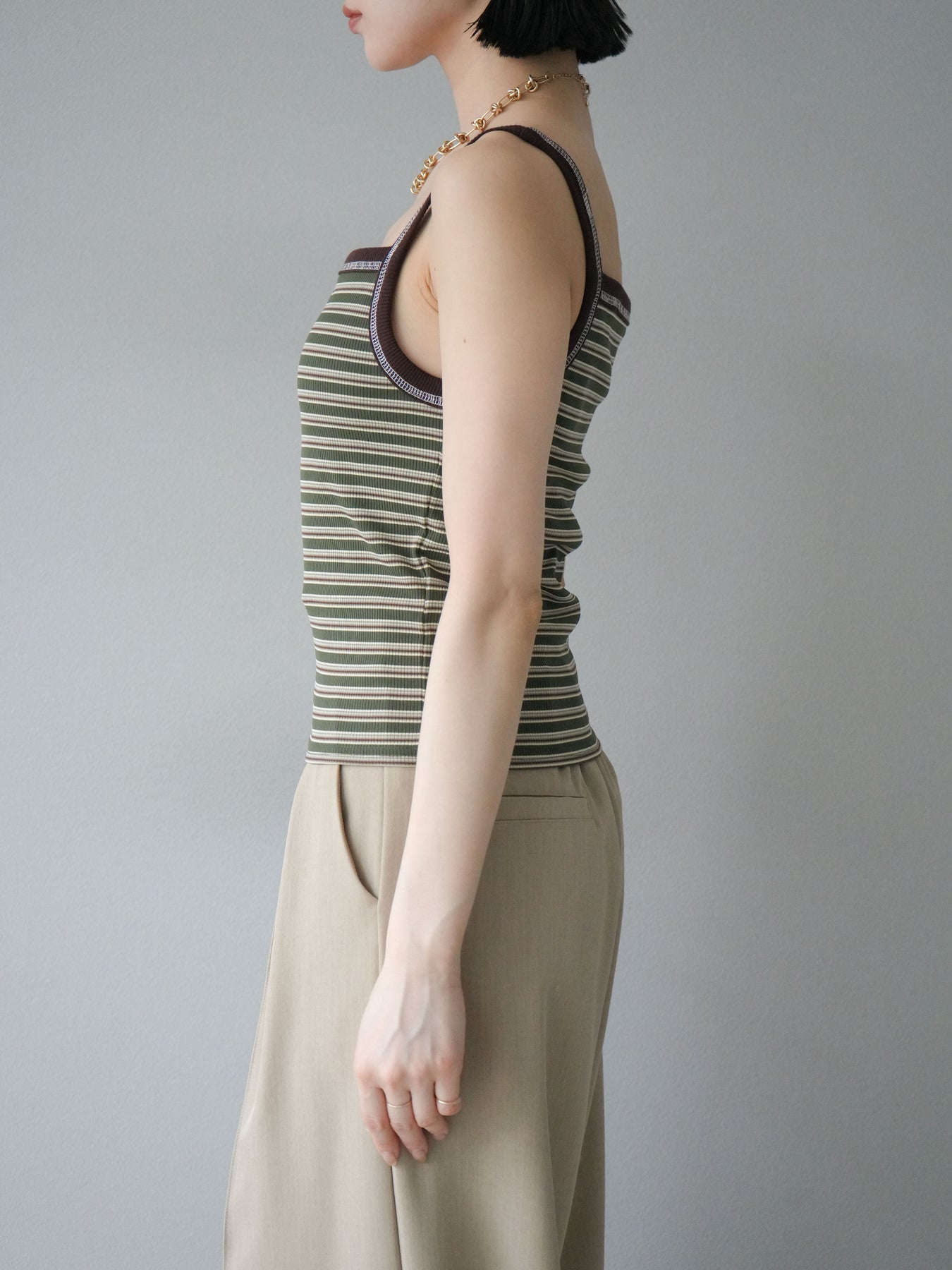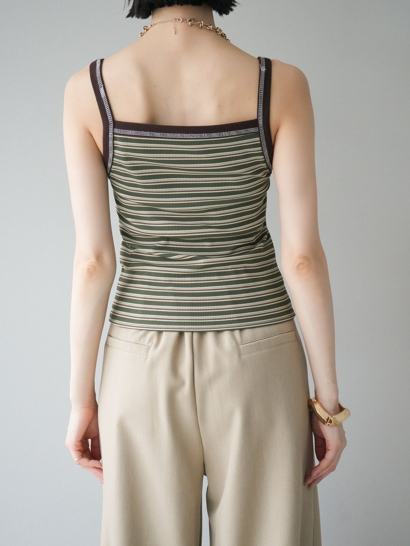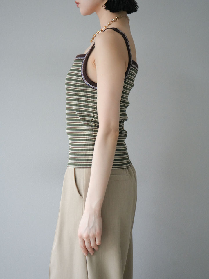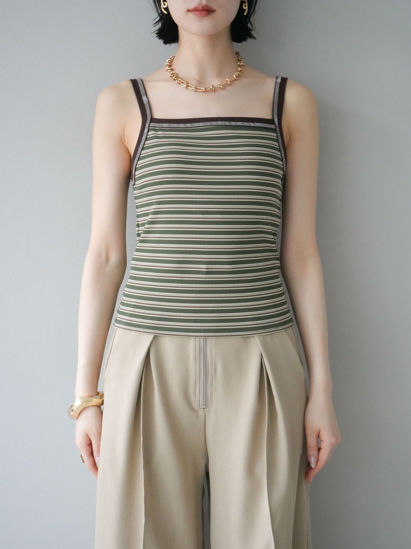 [予約]マルチボーダーカップ付リブキャミソール/カーキ