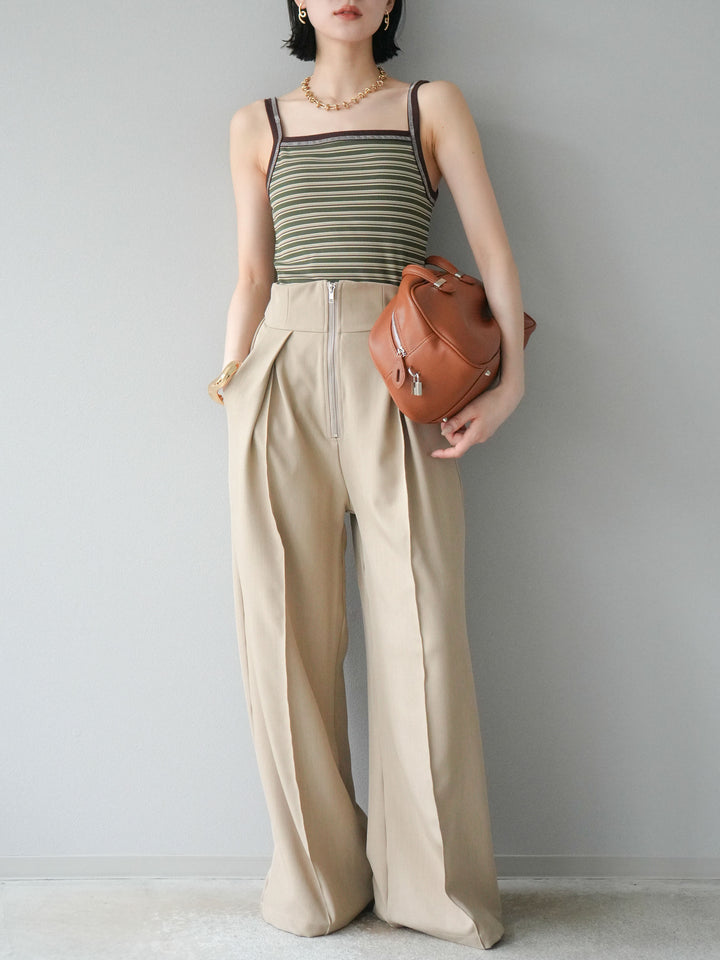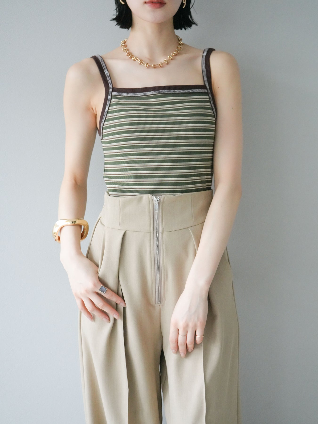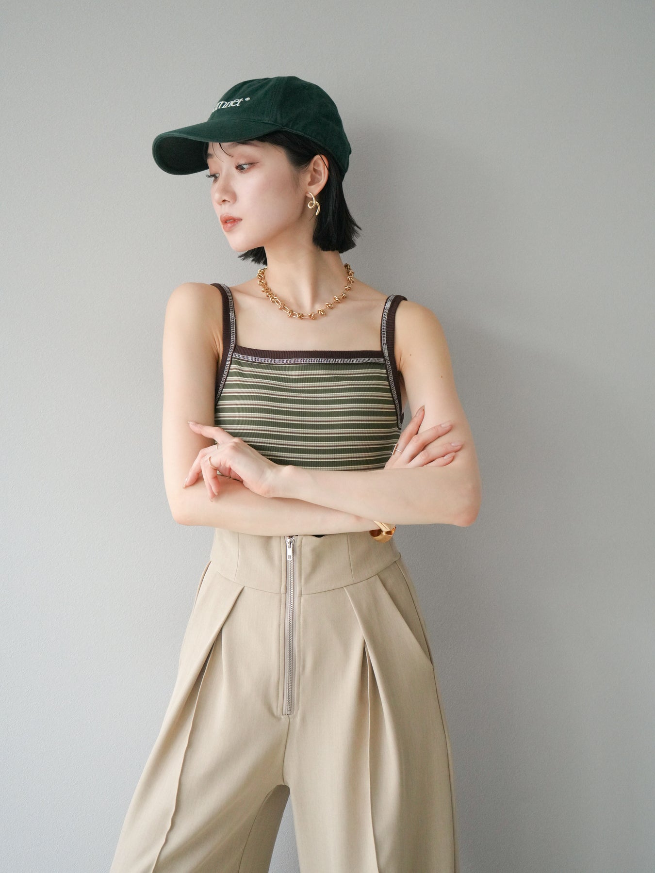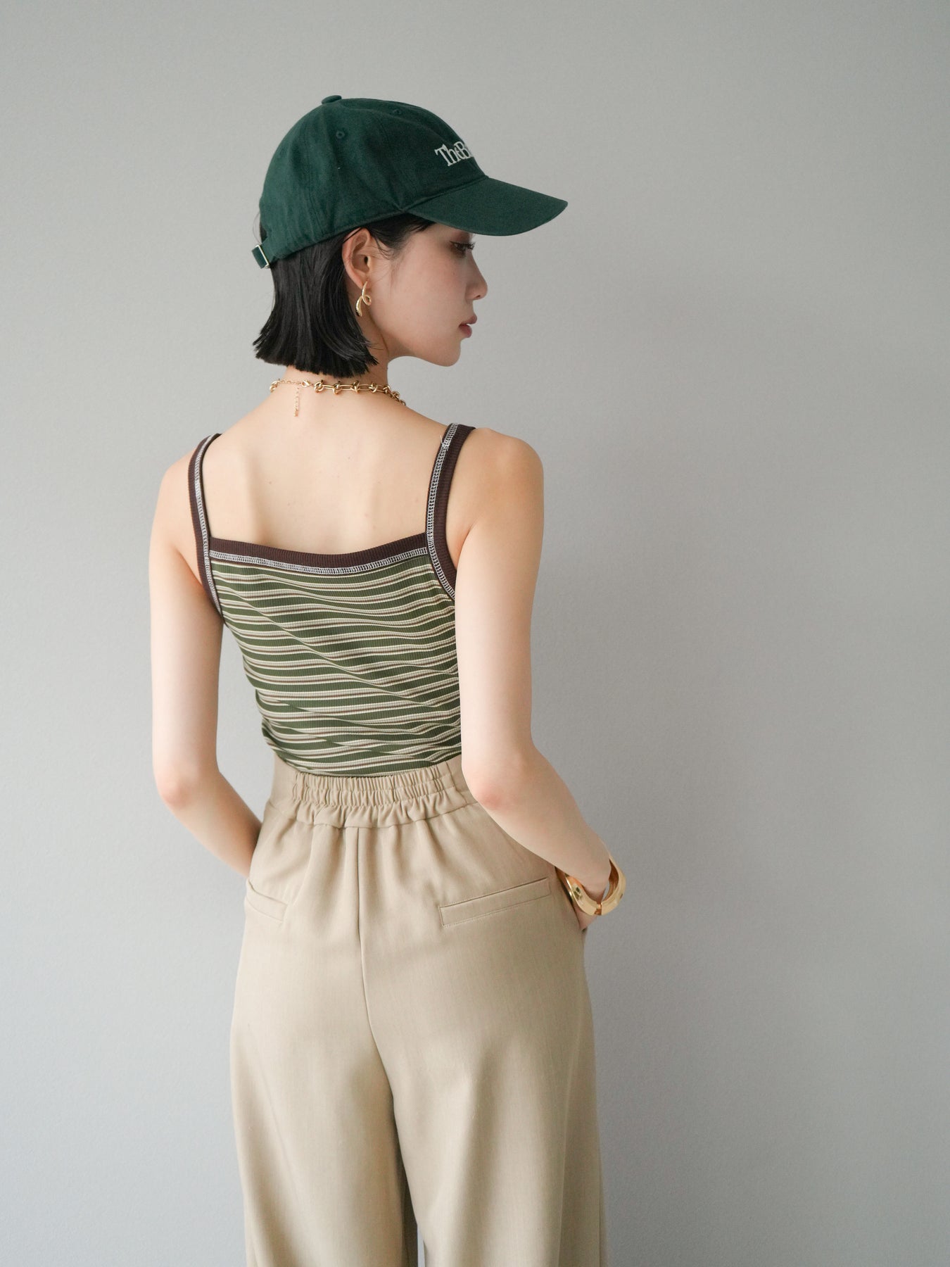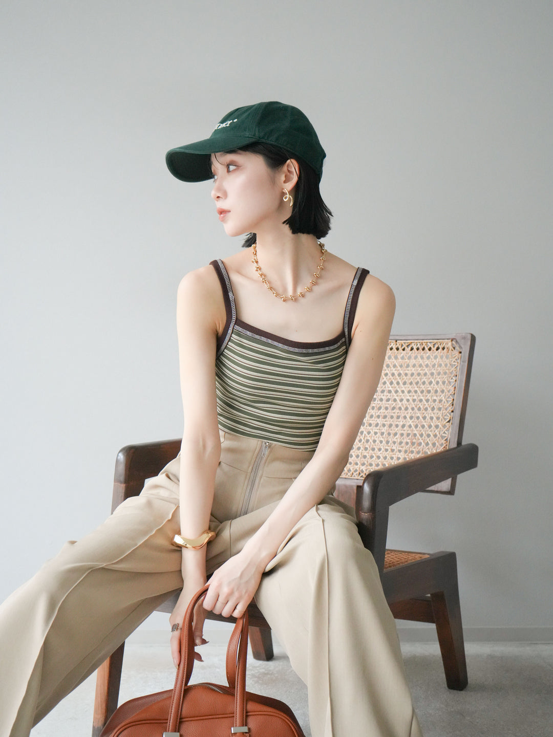 [予約]マルチボーダーカップ付リブキャミソール/カーキ