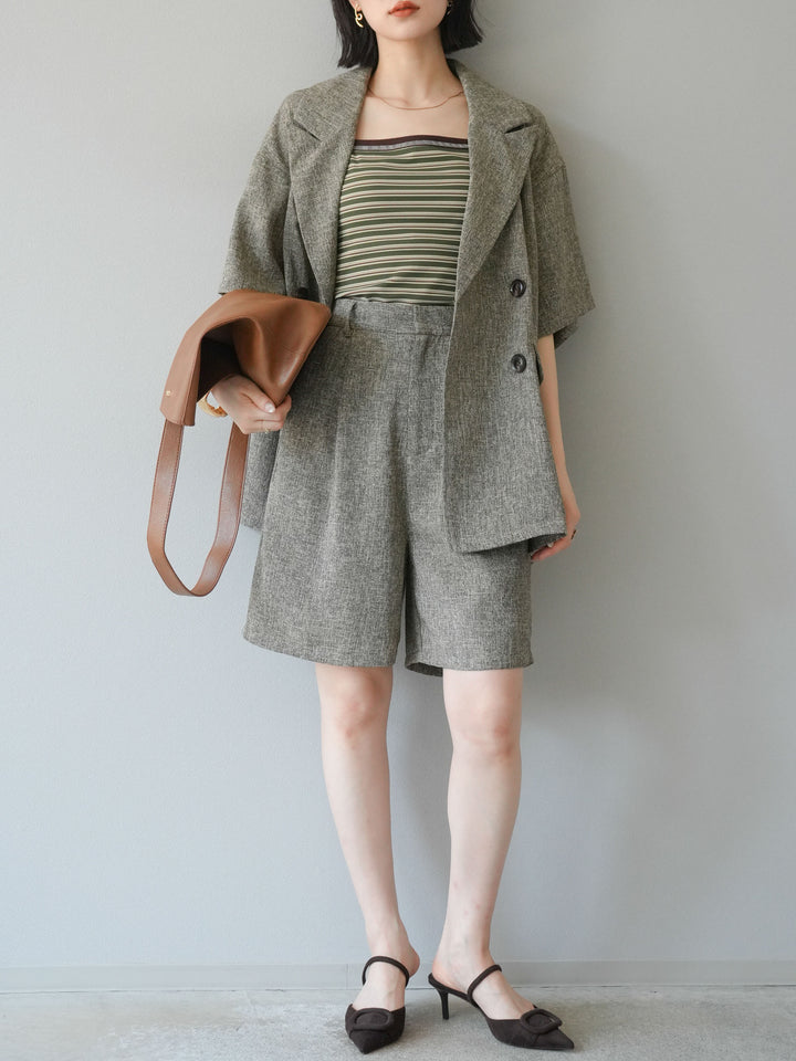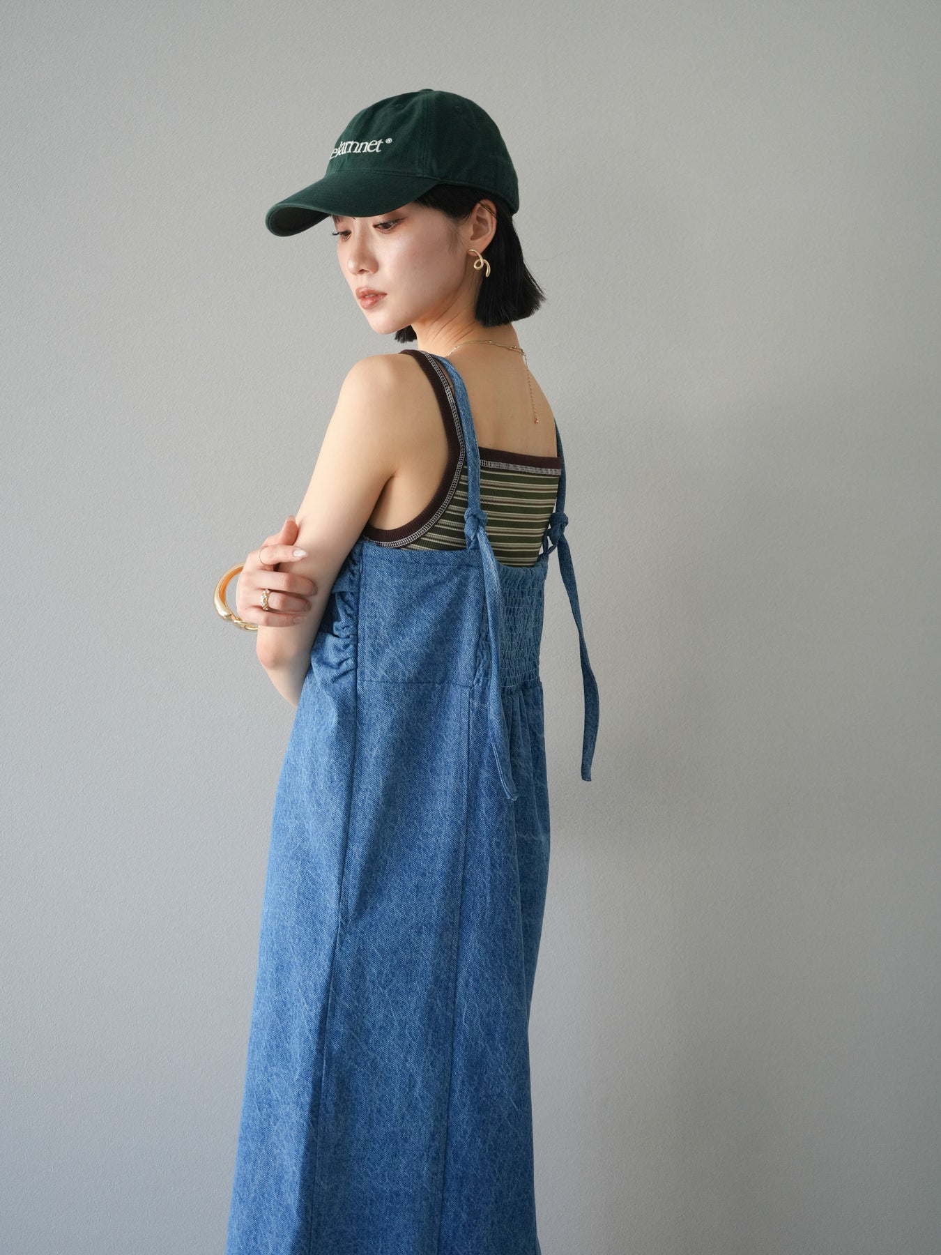 カジュアルでヘルシーな印象のマルチボーダー柄キャミソール。リブ素材が心地よくフィットし、伸縮性も抜群。内蔵カップ付きで1枚でも安心して着用でき、レイヤードスタイルにも活躍します。華奢なストラップが女性らしさを引き立て、デイリーからアウトドア、リゾートシーンまで幅広く使えるアイテムです。 ※ボトムス、キャミソール(インナー)以外の商品は一律でインナーは付属していません